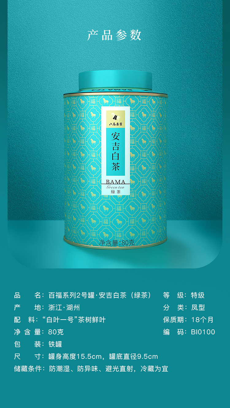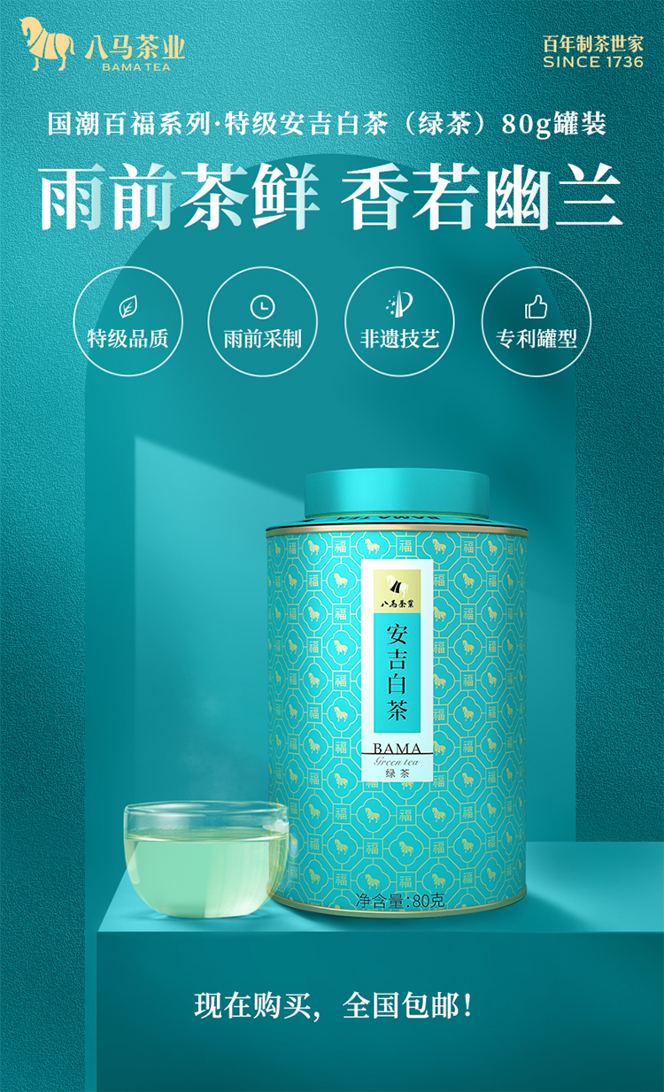 【2026年春茶】八马茶业丨 百福系列绿茶安吉白茶80g