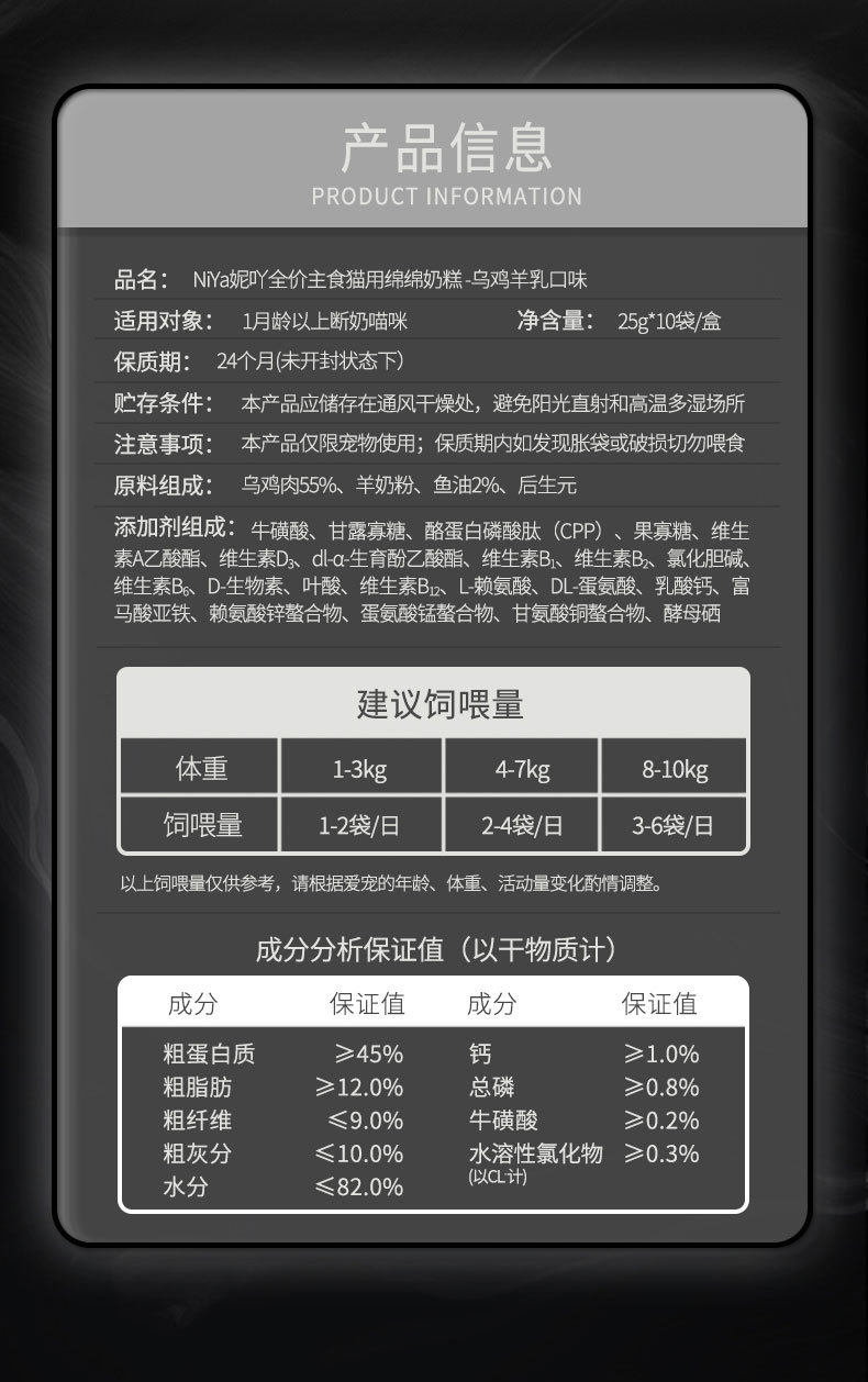 NiYa妮吖全价绵绵乌鸡羊奶奶糕主食成猫猫咪幼猫通用主食奶糕