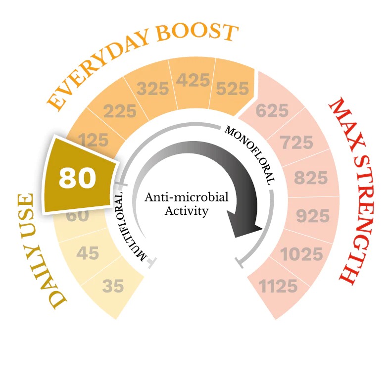 MGO数值在550以上就具有高效和多重抗菌功能,使用单花种蜂蜜,蜂蜜纯净度高,每公斤中含抗菌活性含量也高,适合帮助缓解更重的一些肠胃病症。