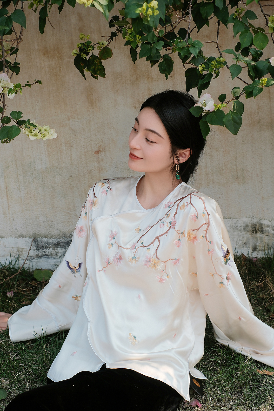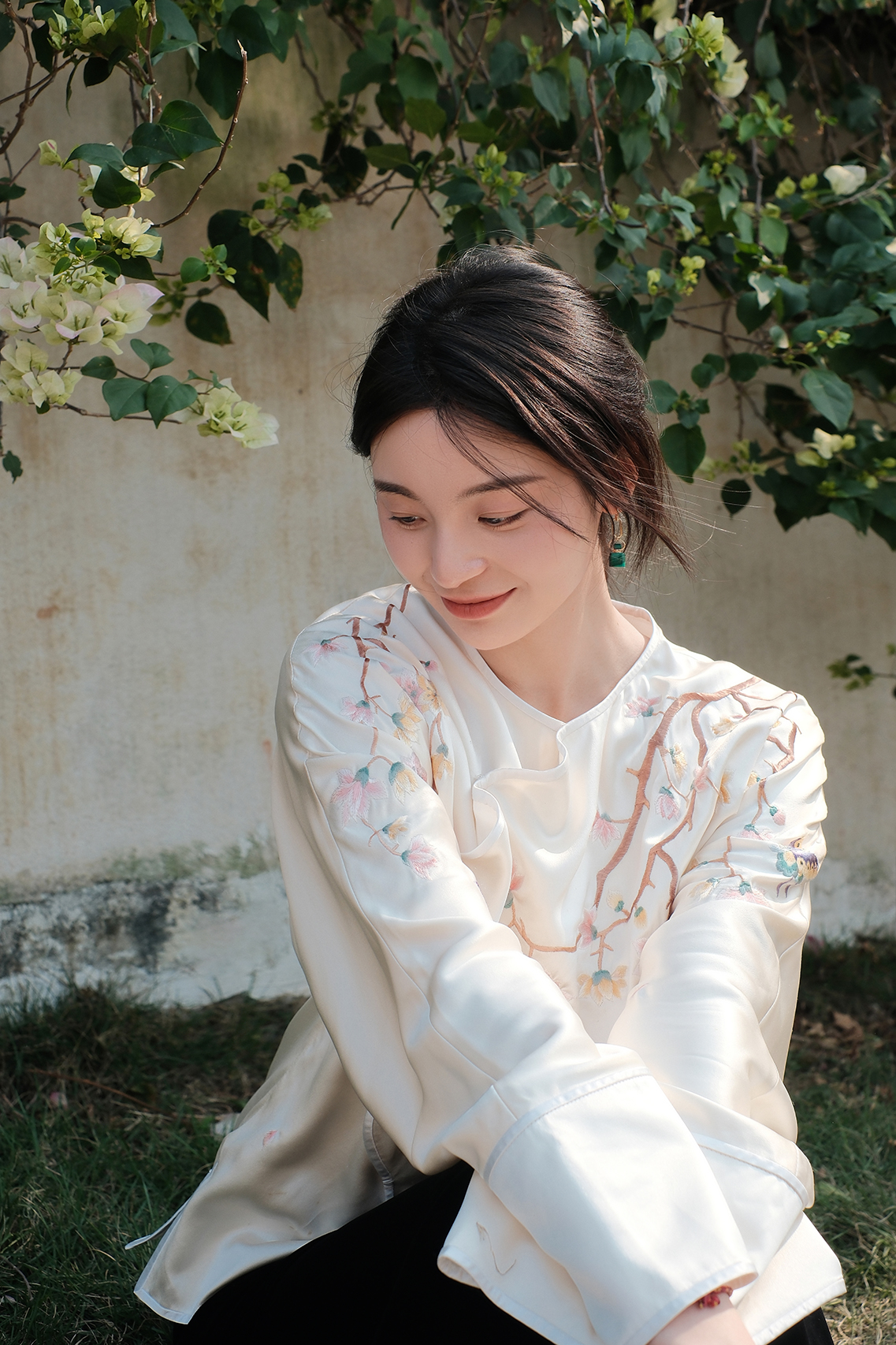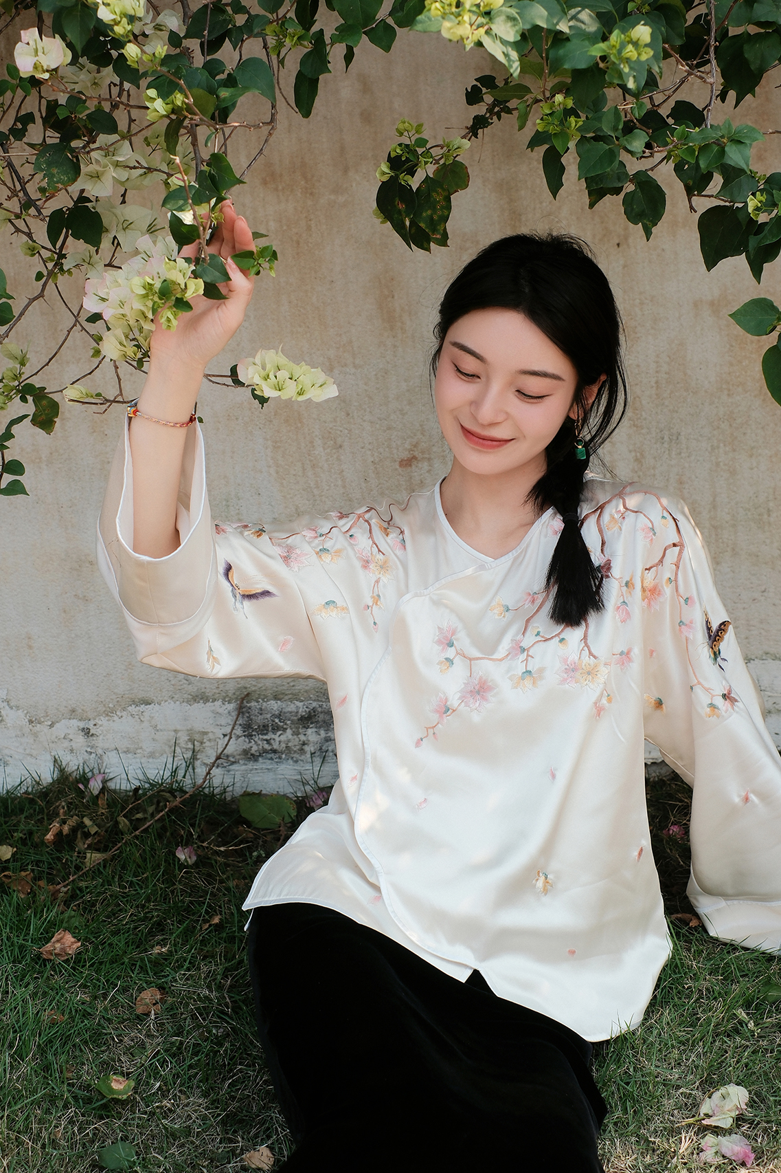 盛唐牡丹 | 缠枝喜鹊纹系带上衣