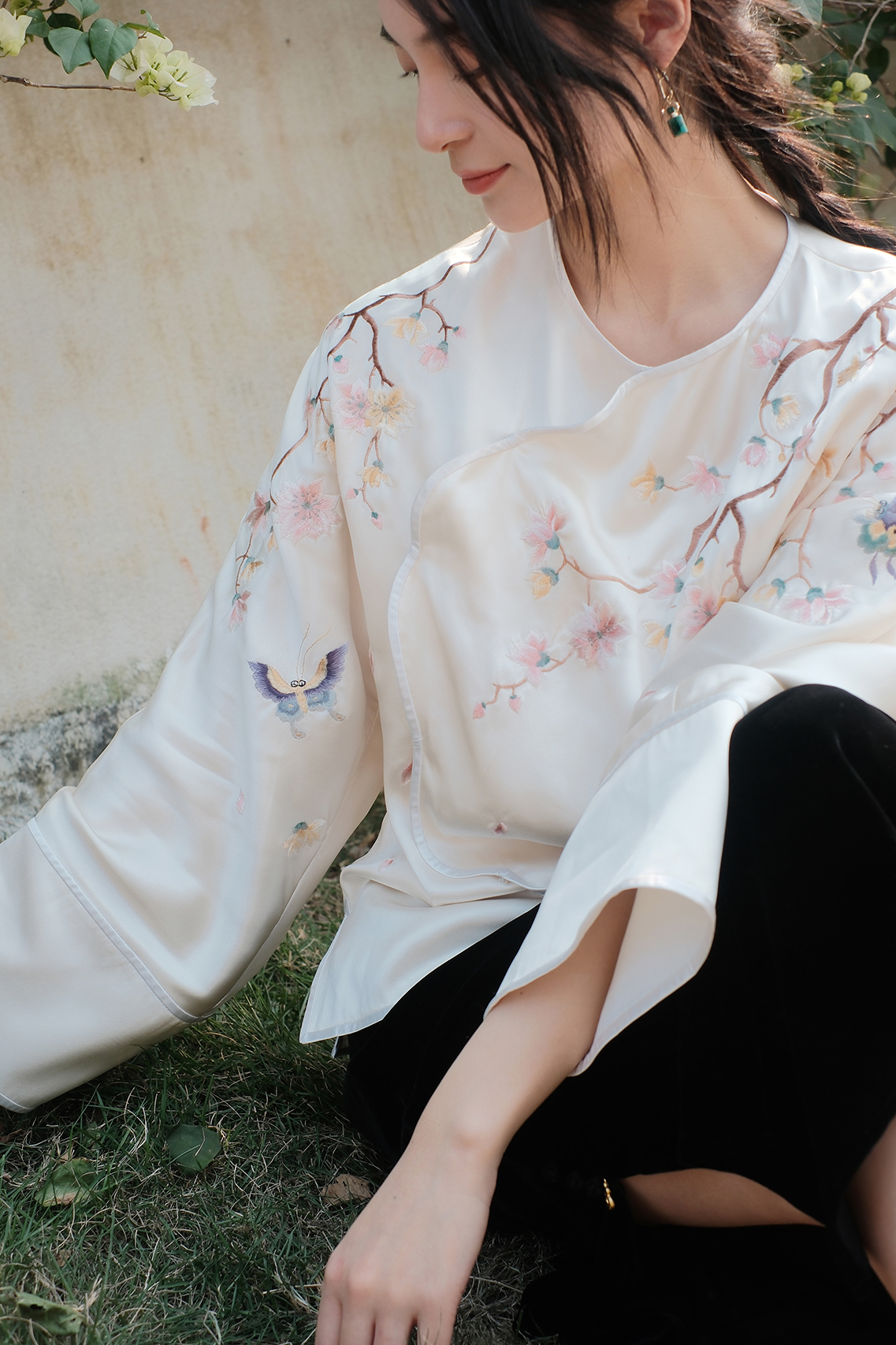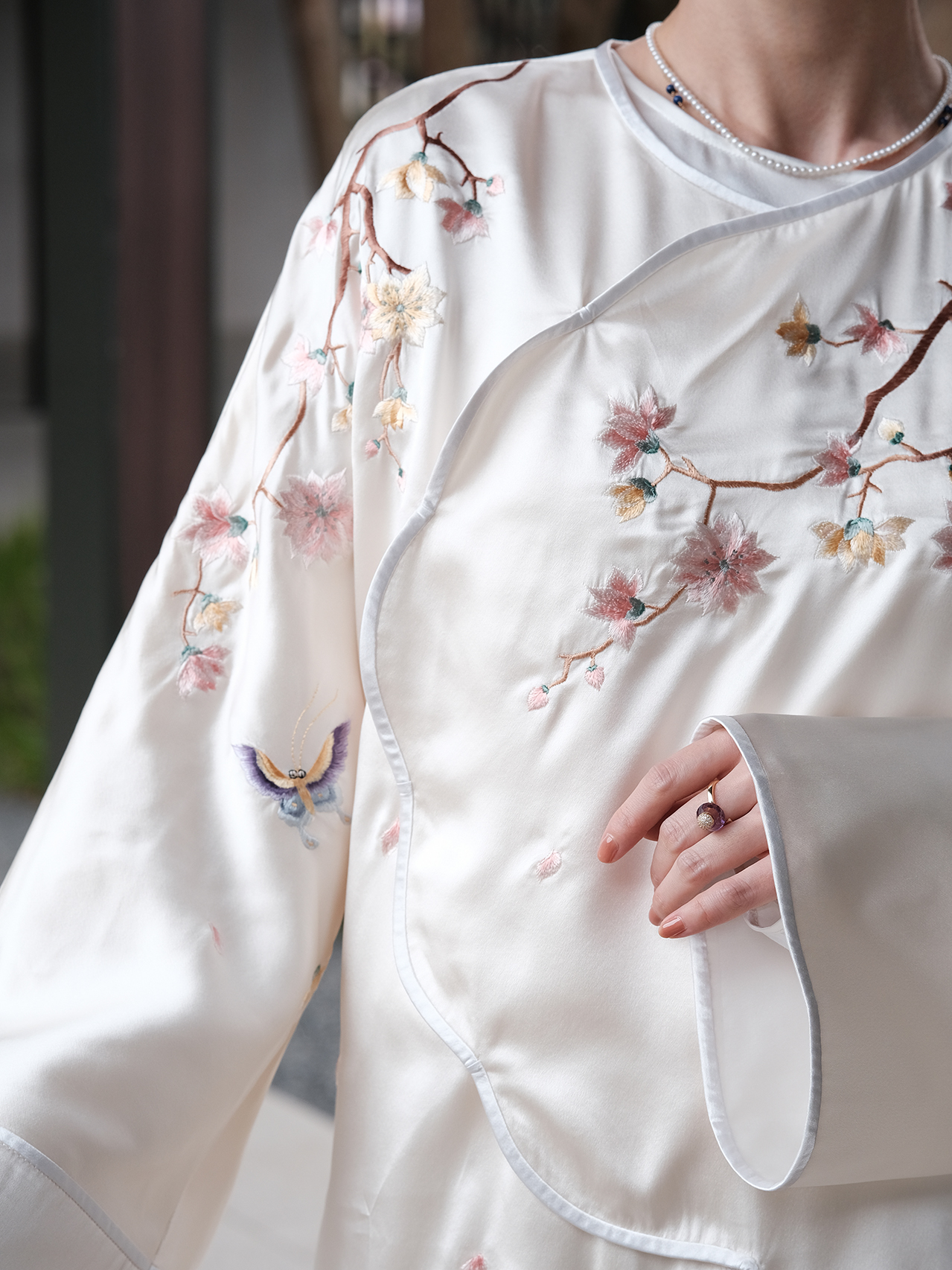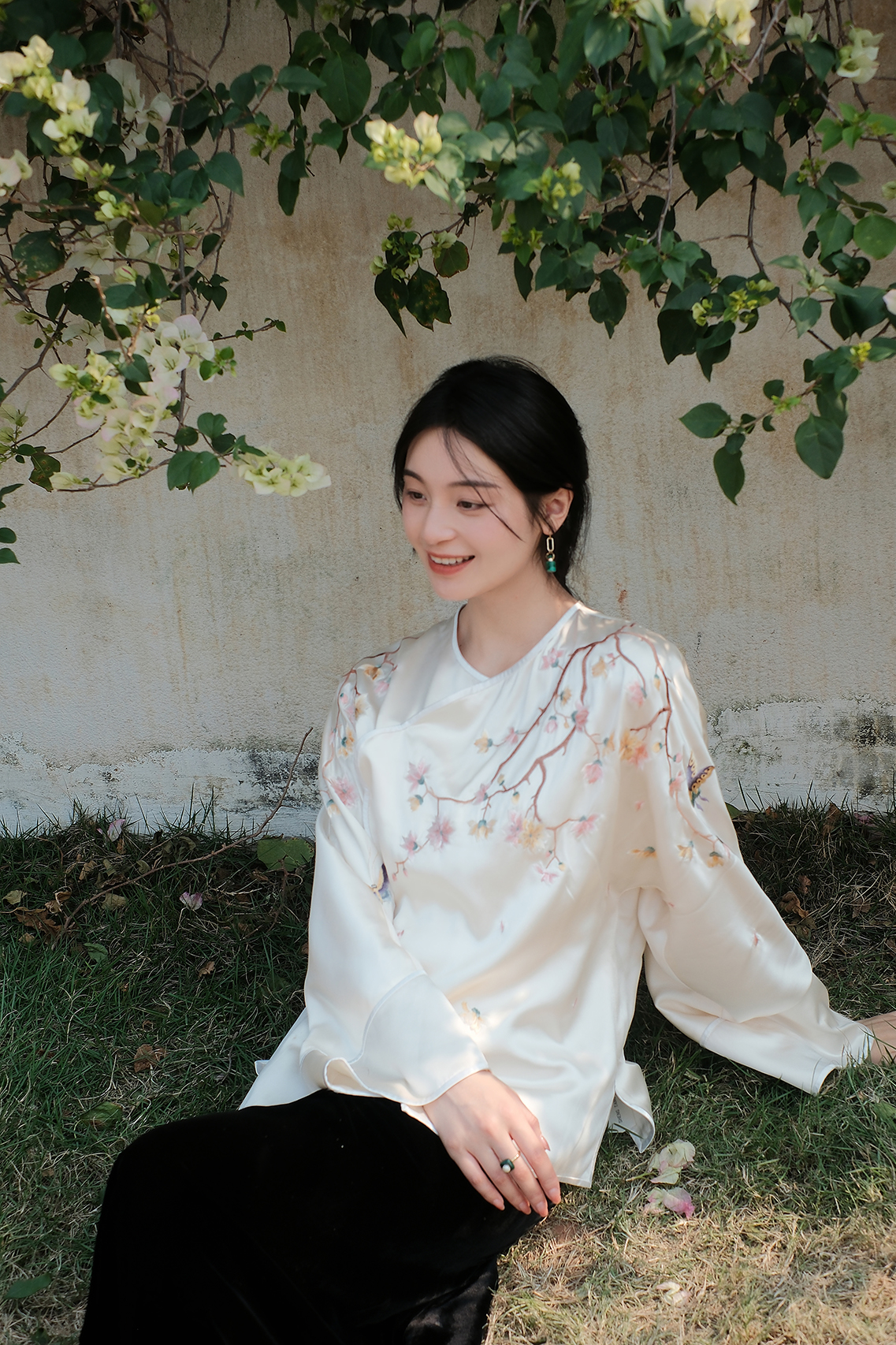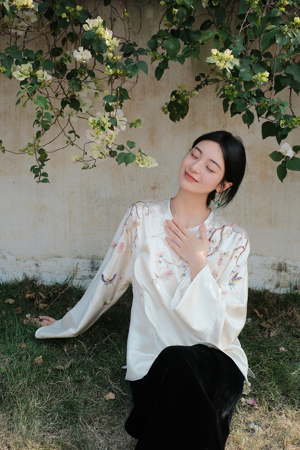 盛唐牡丹 | 缠枝喜鹊纹系带上衣