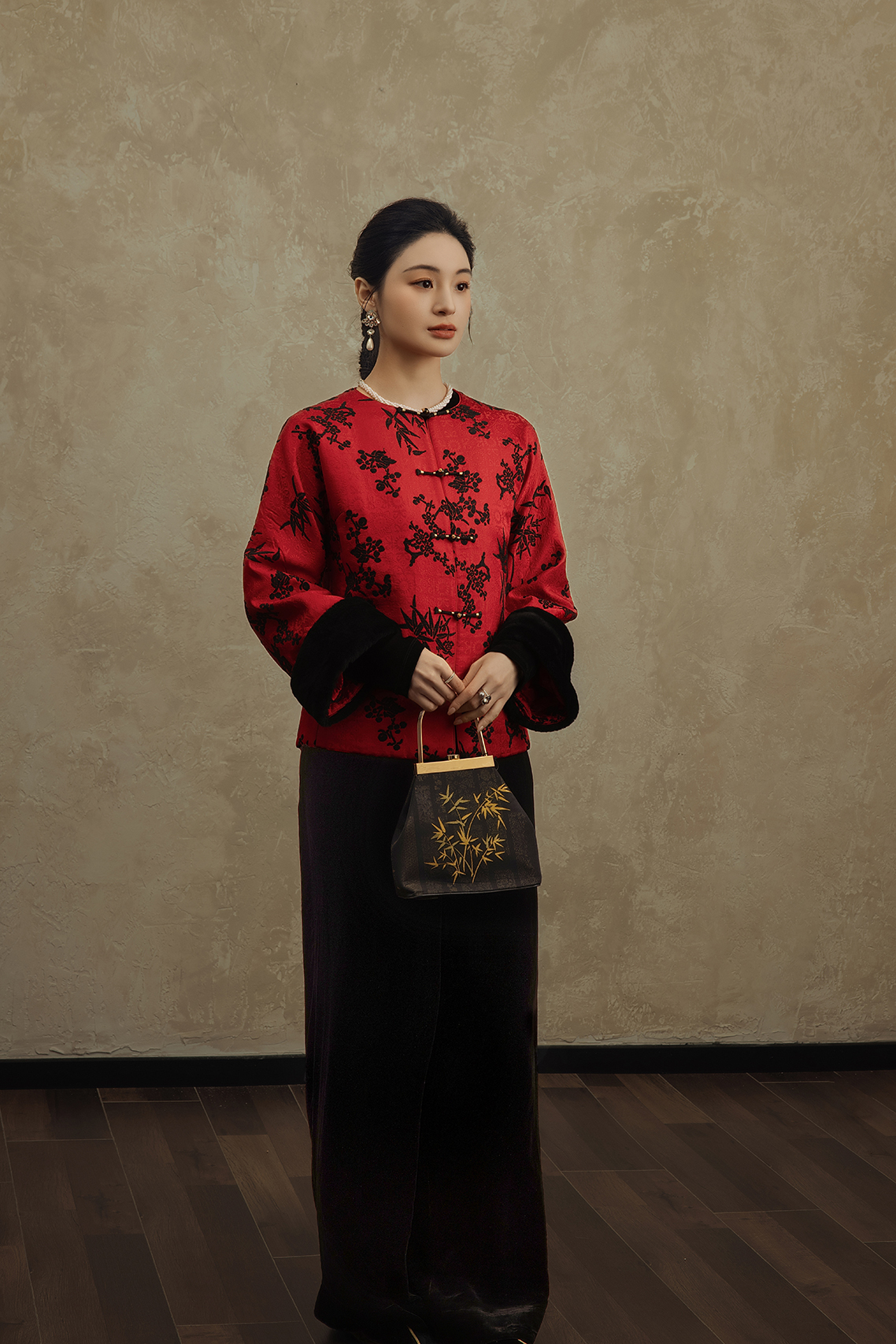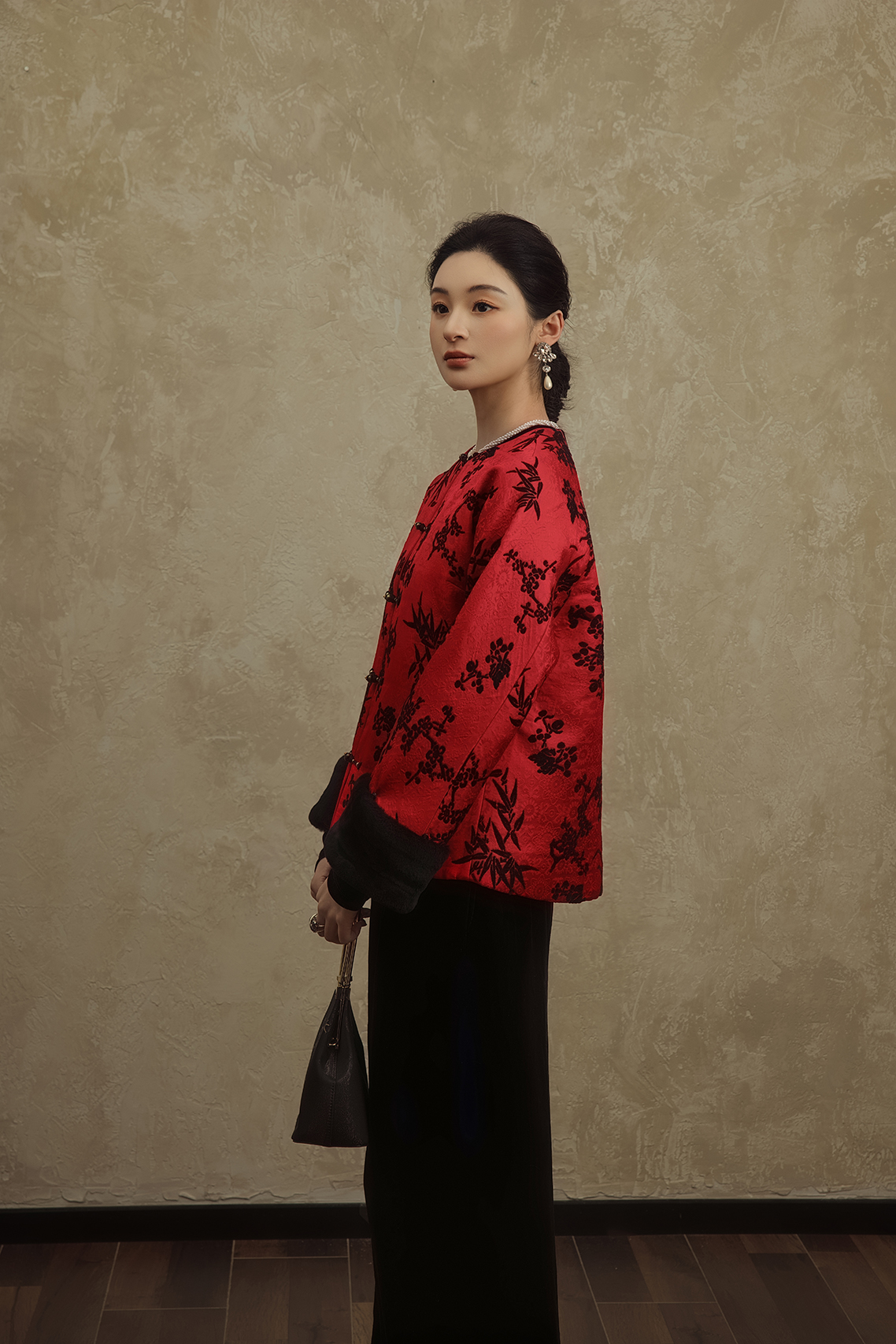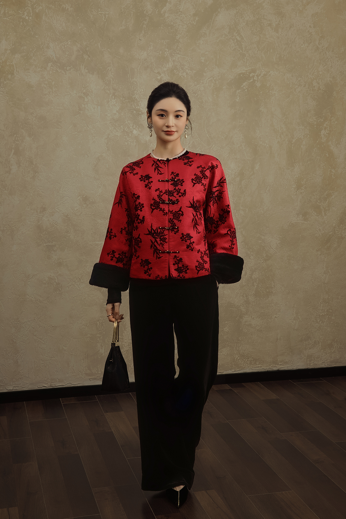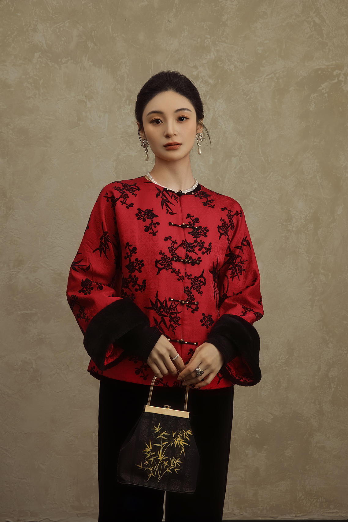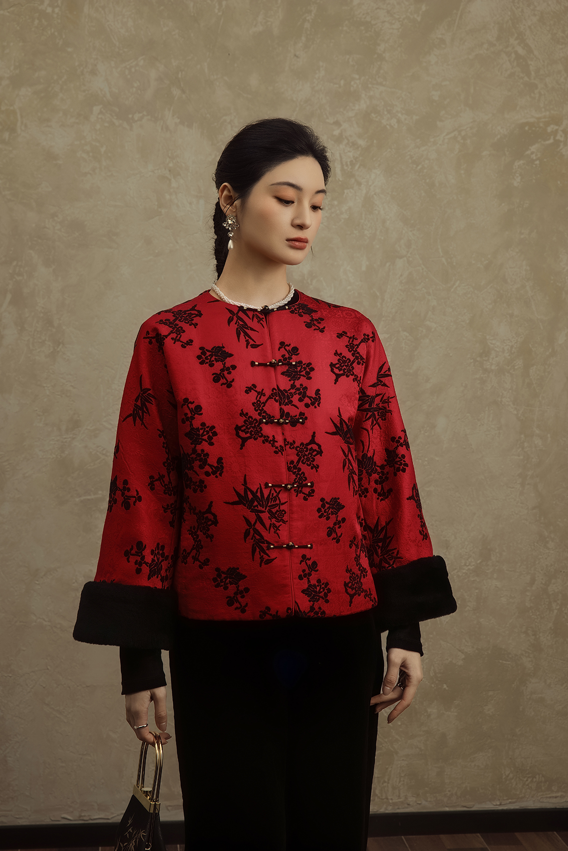 盛唐婧 | 轻奢时尚新中式提花绒羊毛袖口对襟外套
