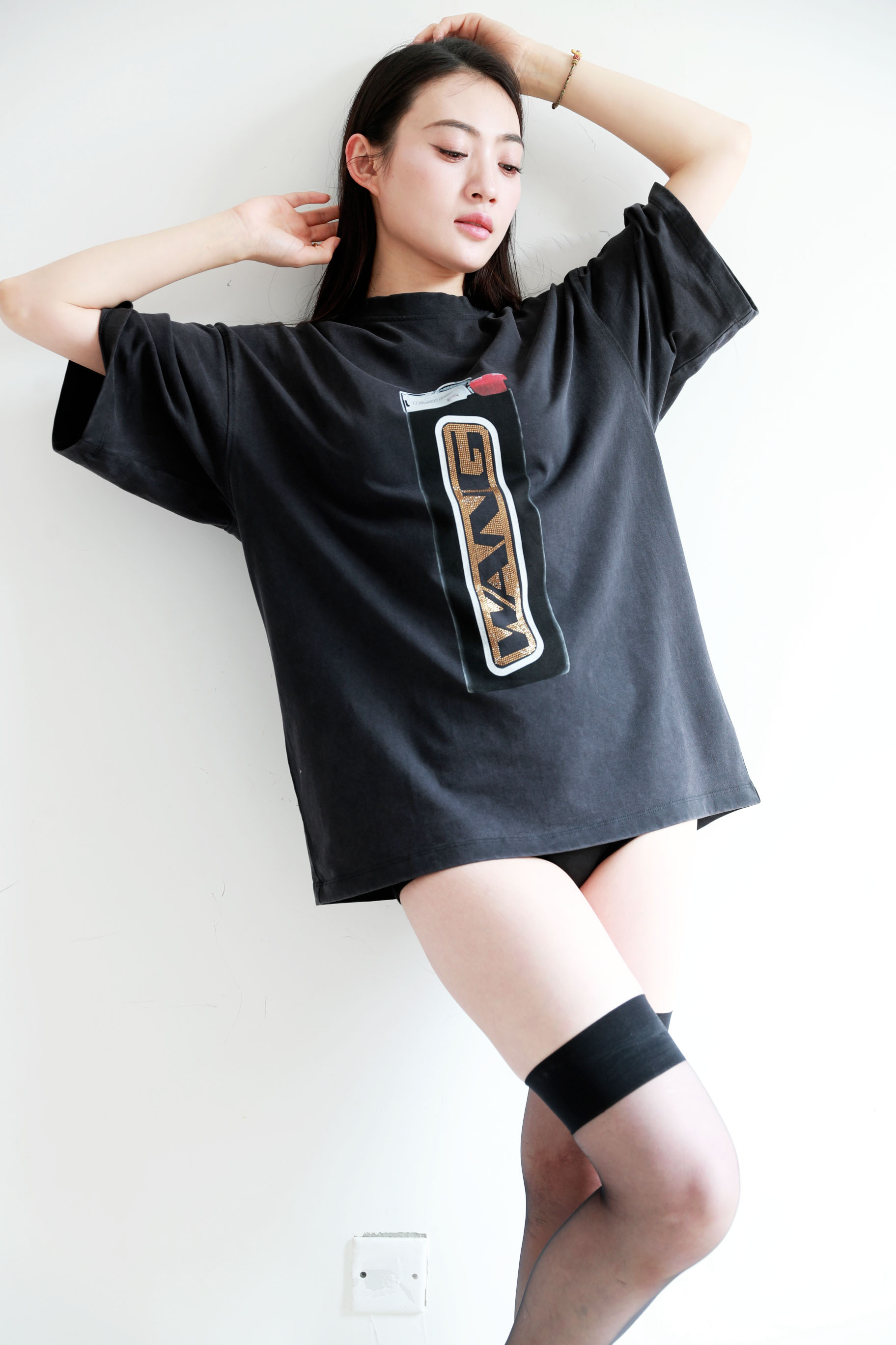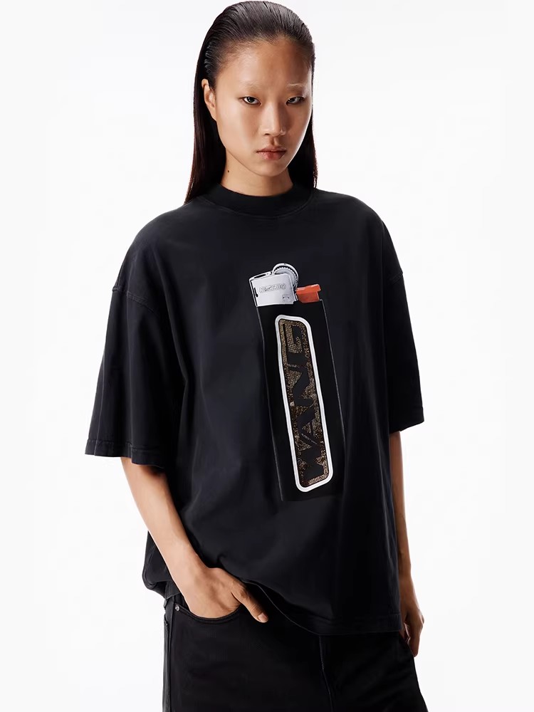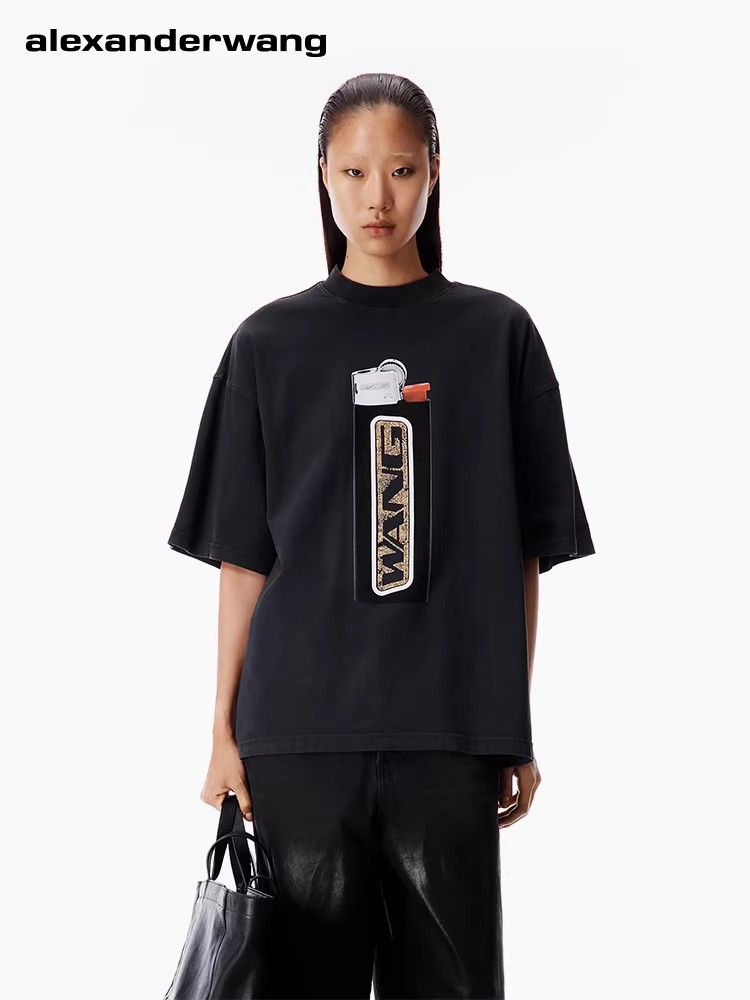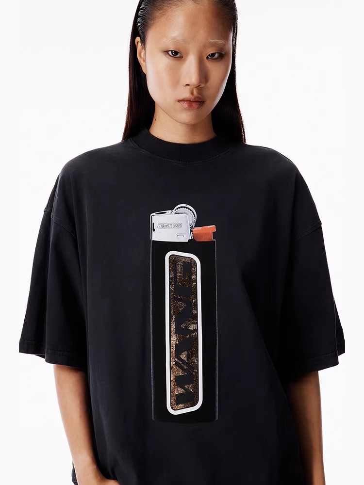 闪钻闪钻,烫金高锭大主tee。摩登氛围感圆领情侣短袖t恤E032188