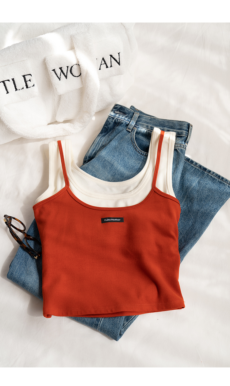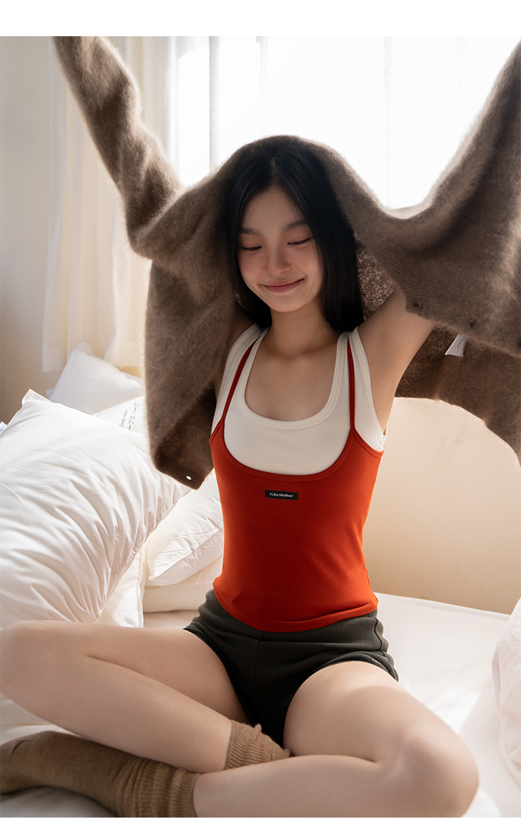 靴下物新款撞色假两件保暖吊带背心女修身百搭弹力可外穿打底上衣