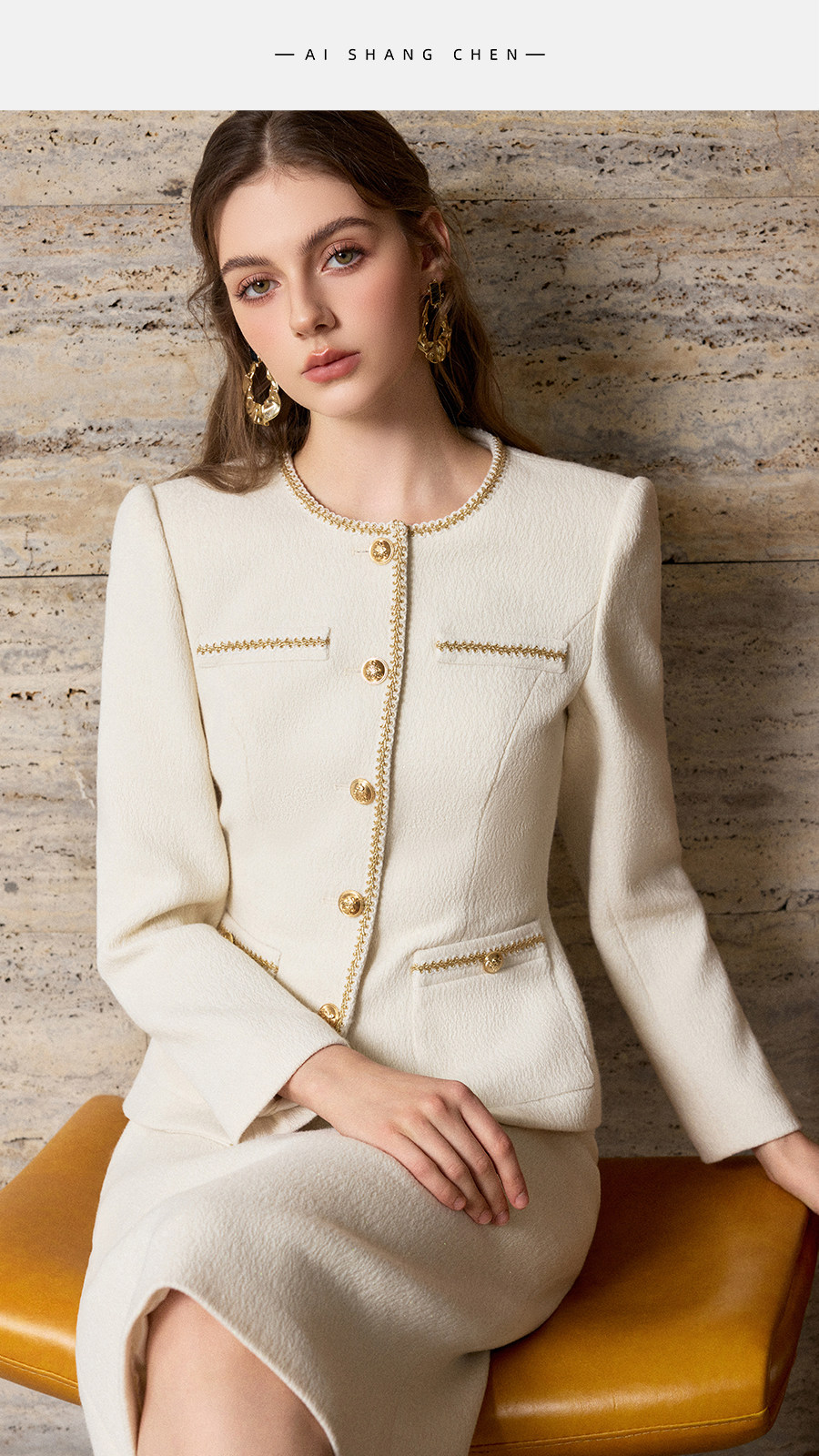 艾尚臣小香风职业套装女气质千金冬装高端精致两件套短外套半裙厚