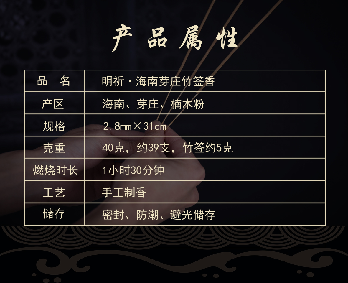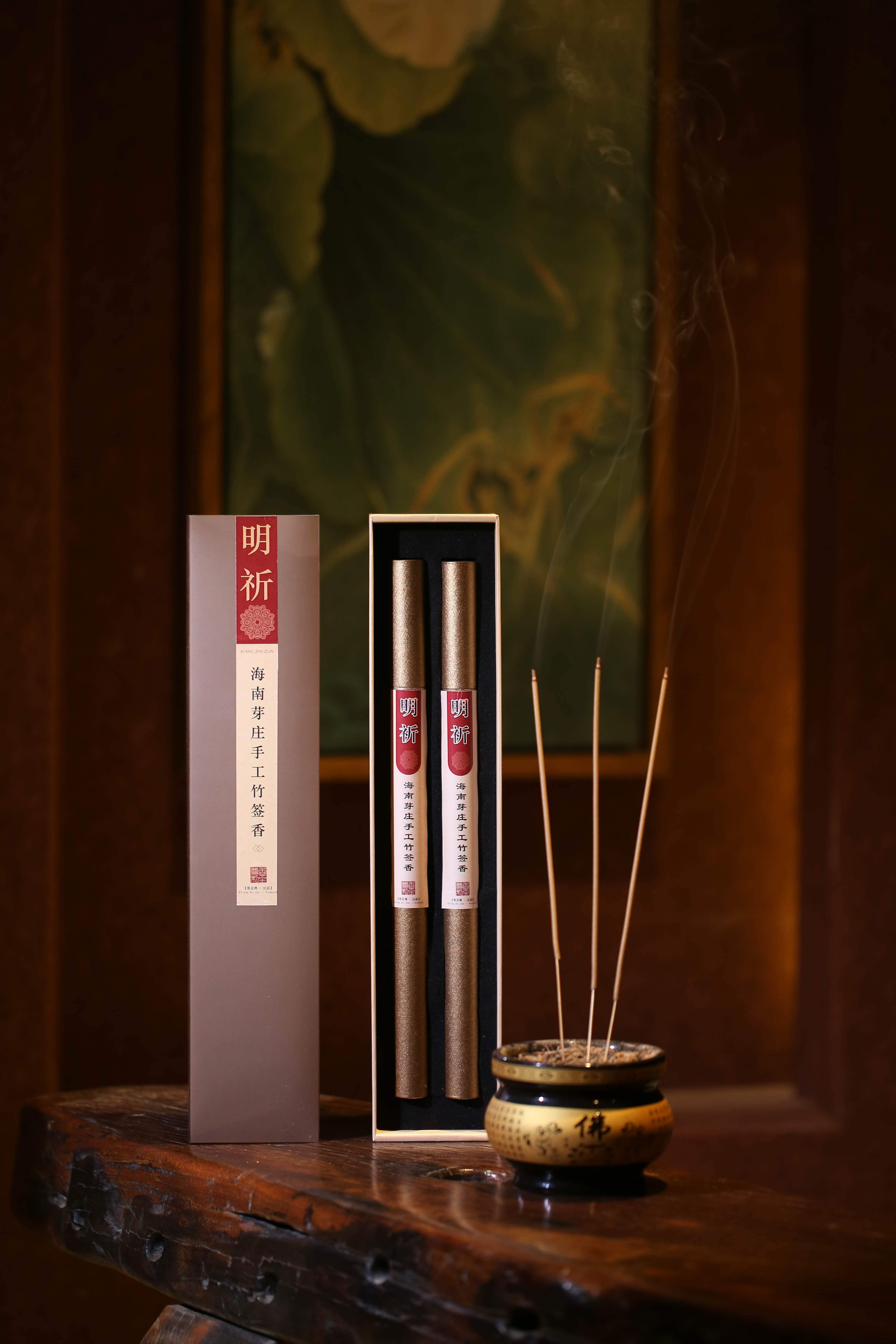 正心诚意,明祈见圣。我们推出的这款香,甄选经典产区海南与芽庄沉香壳料为主材,突破传统竹签香制作工艺,全程手工制作,一根根手工搓制而成。