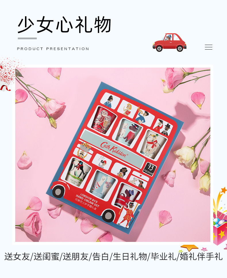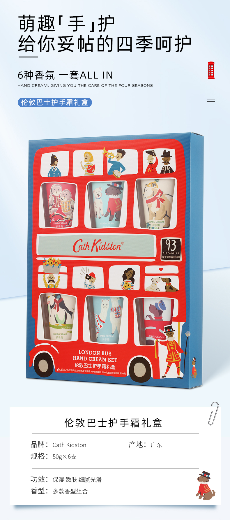 | 【品名】英国Cath Kidston 伦敦巴士护手霜礼盒 香氛萦绕 【规格】 50g*6支,(葡萄柚香)(牡丹香)(茉莉香)(玫瑰花香)(苹果香)(三叶草香) 【产地】国内 【保质期】3年 【发货包装】独立包装盒 【发货地】广东 【发货快递】申通、圆通、邮政 【不发货区域】新疆,西藏,港澳台 【发货时效】48-72小时,周末节假日顺延 |