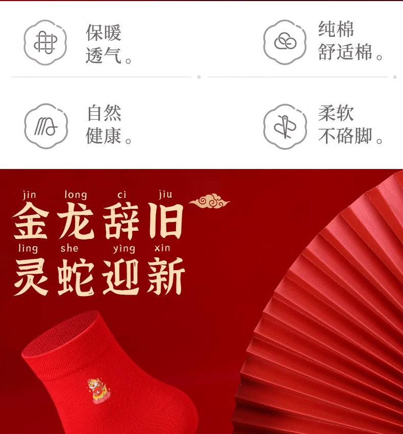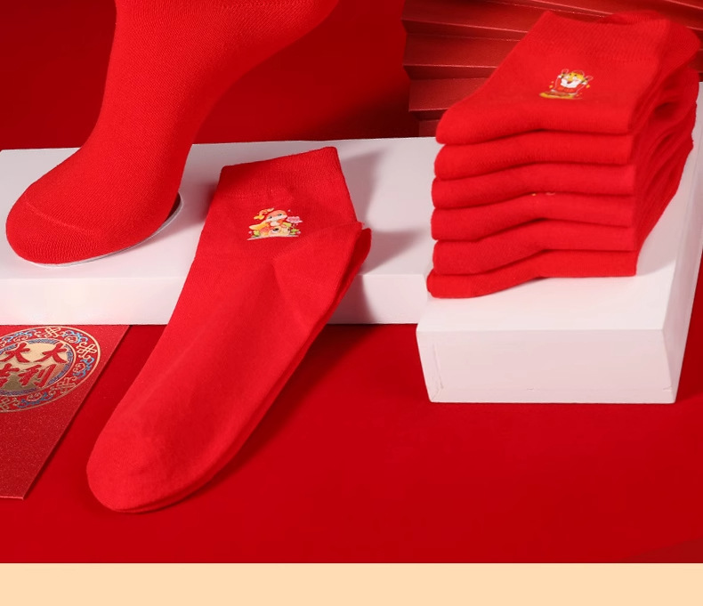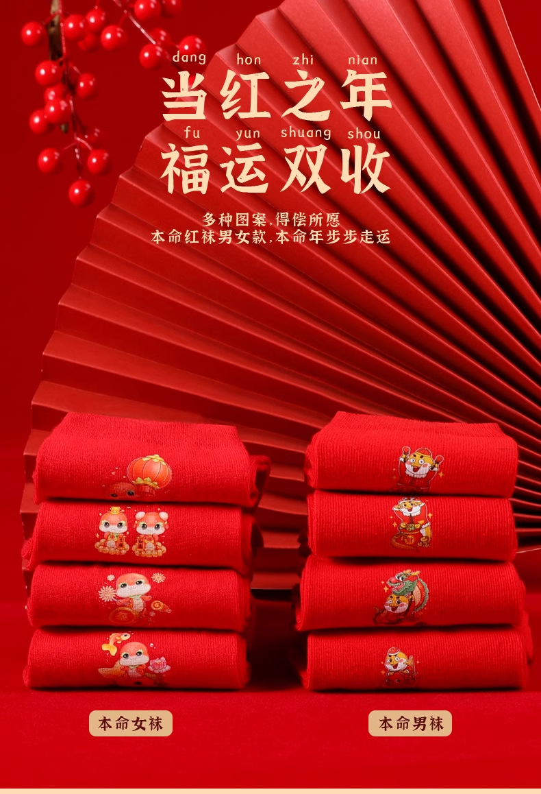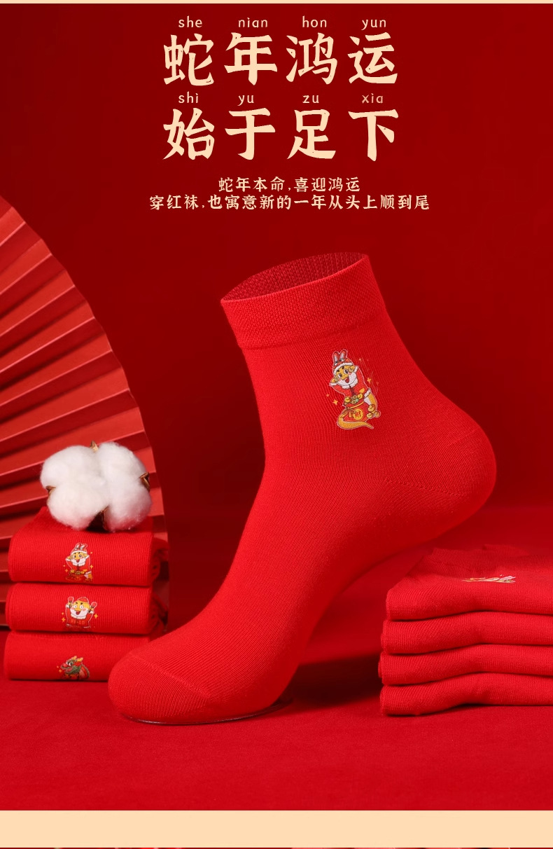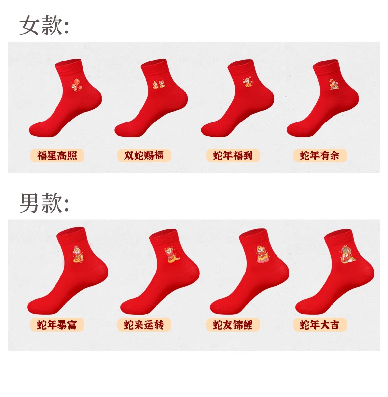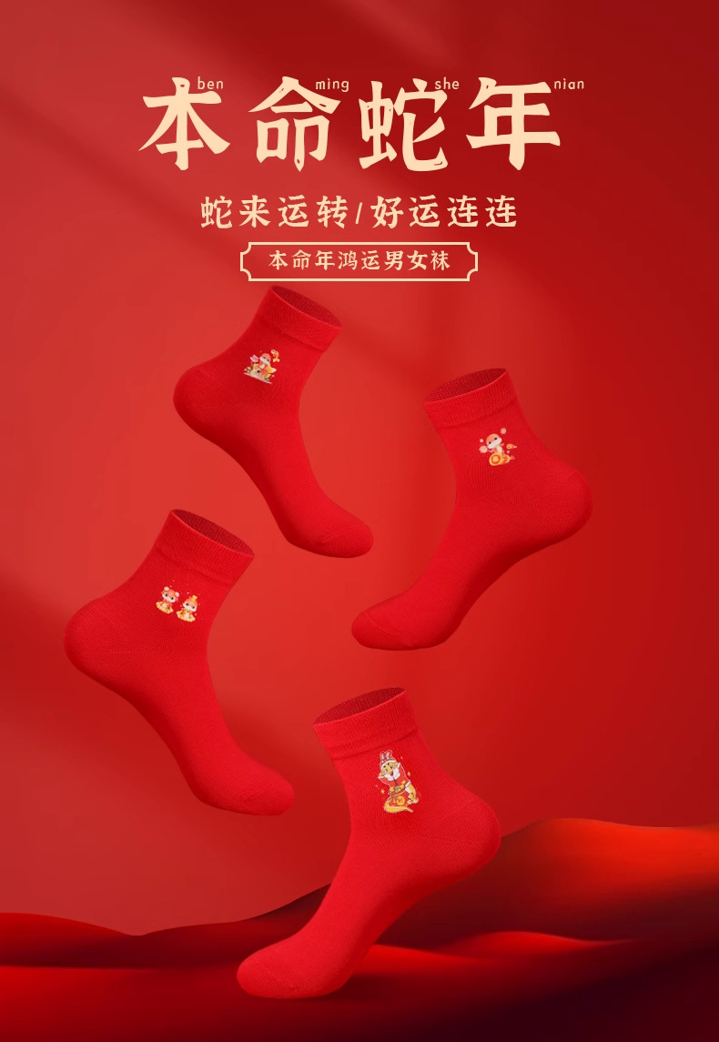 浪莎本命年红袜子男属蛇年纯棉秋冬季中筒袜结婚情侣红色女士棉袜