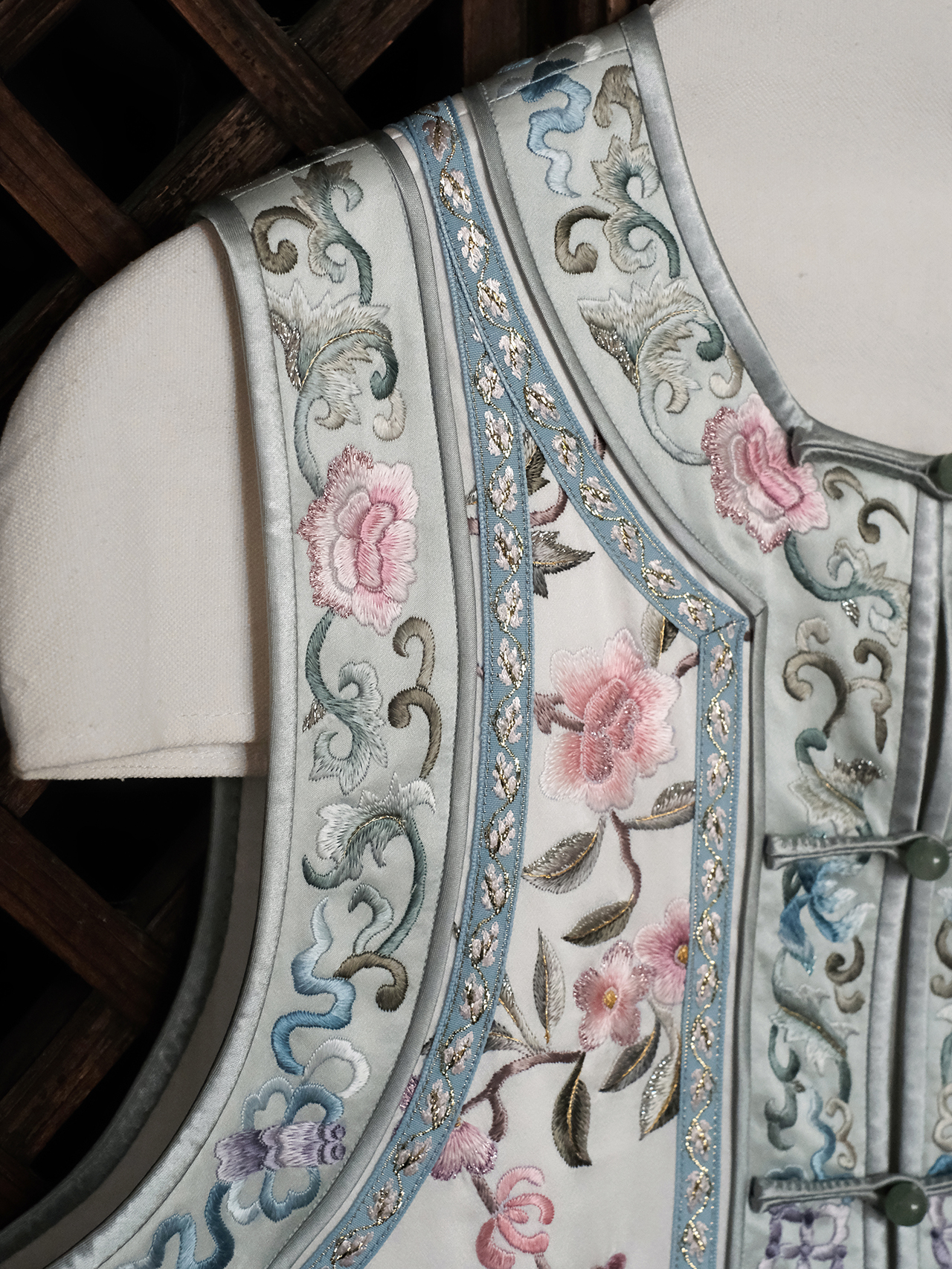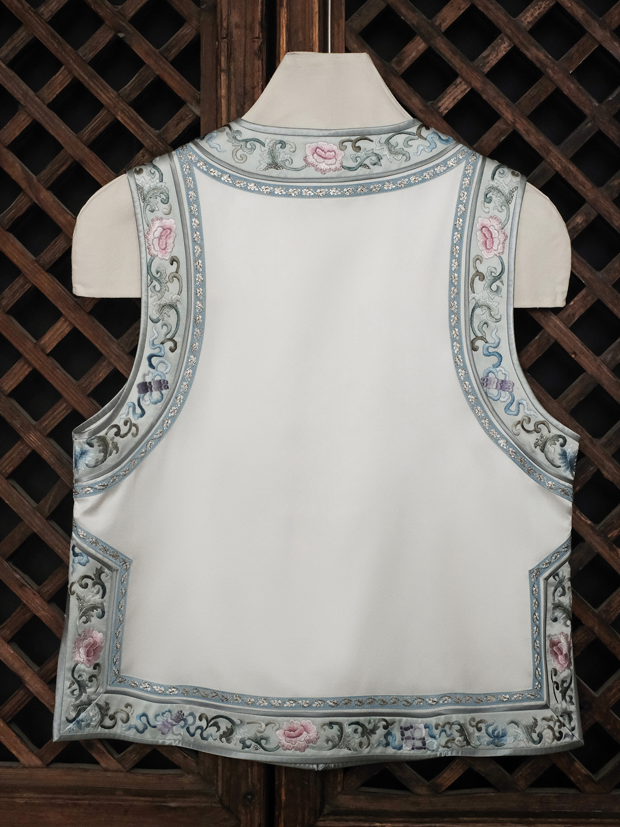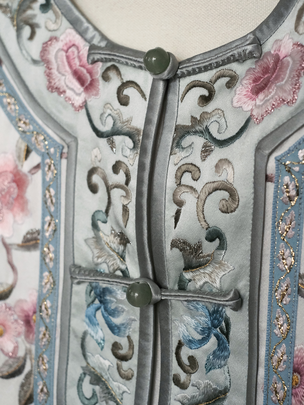 盛唐牡丹大师系列| 重缎手绣牡丹马甲-淡蓝