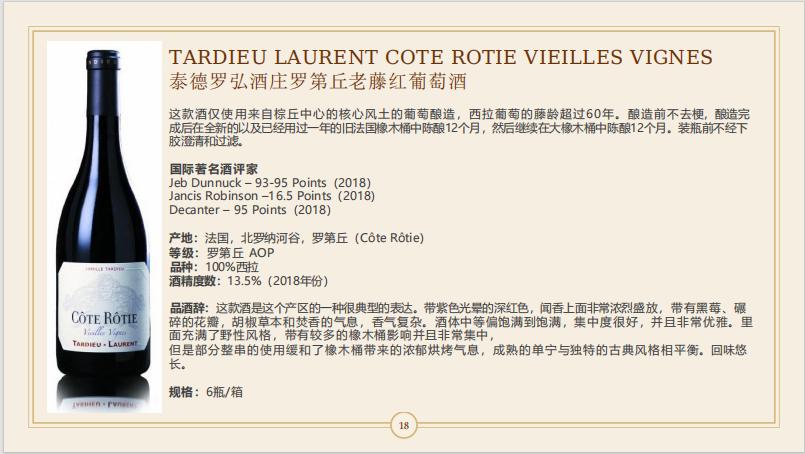 【隆河标杆老藤星级干红】Tardieu Laurent Cote Rotie Vieilles Vignes 2020 750Ml 泰德罗弘酒庄罗第丘老藤红葡萄酒