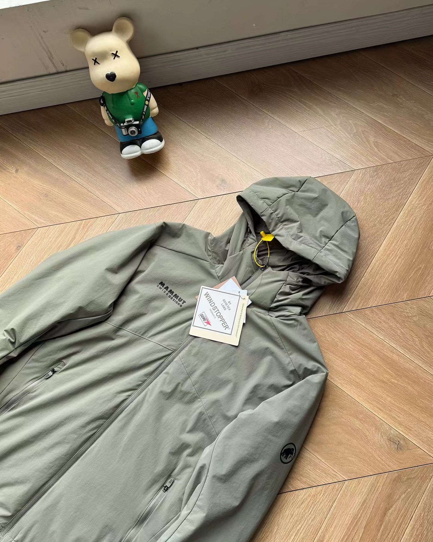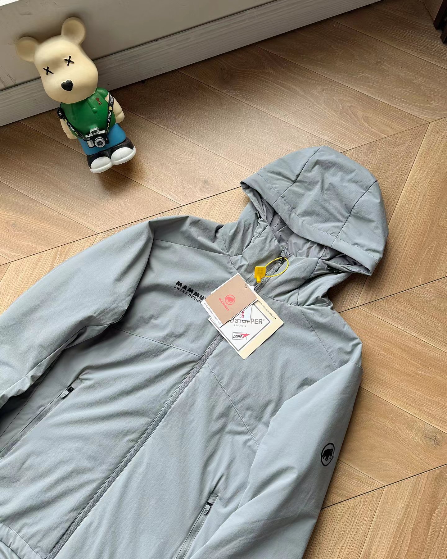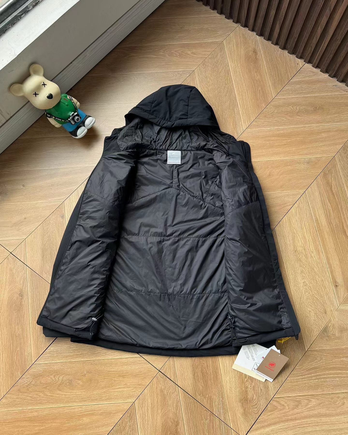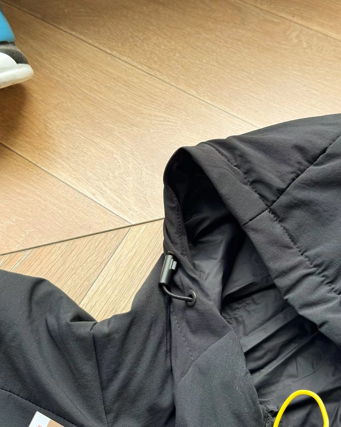细节:面料巨好巨柔软 弹性螺纹拼接袖口下摆调节扣可调节宽松度帽子上调节扣可调节松紧防风B备