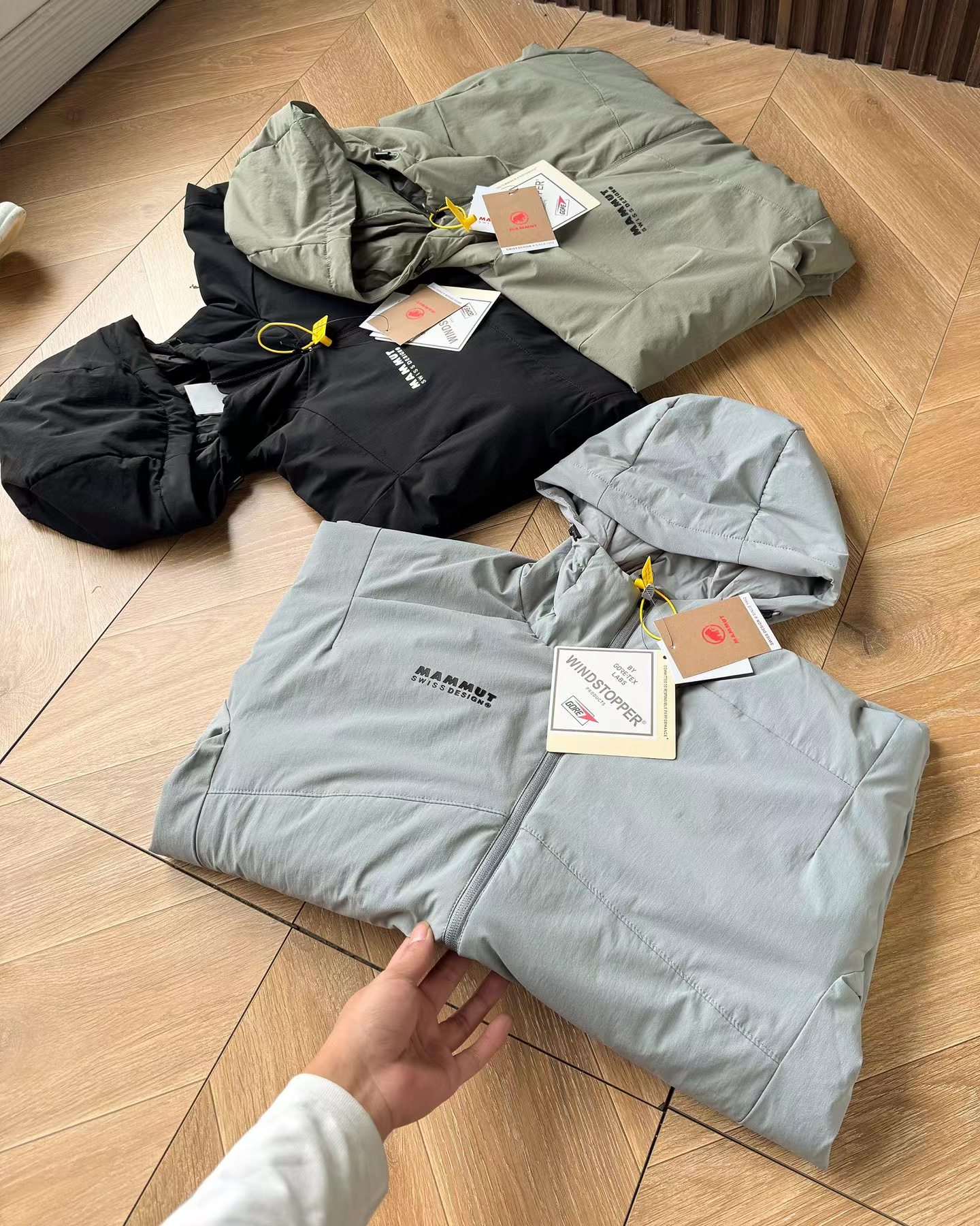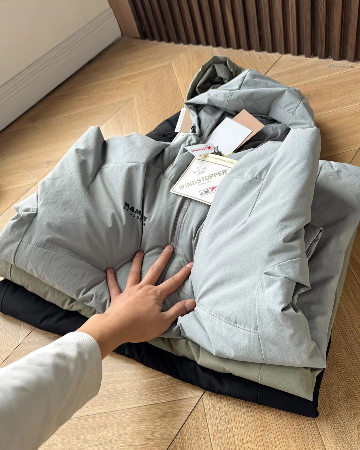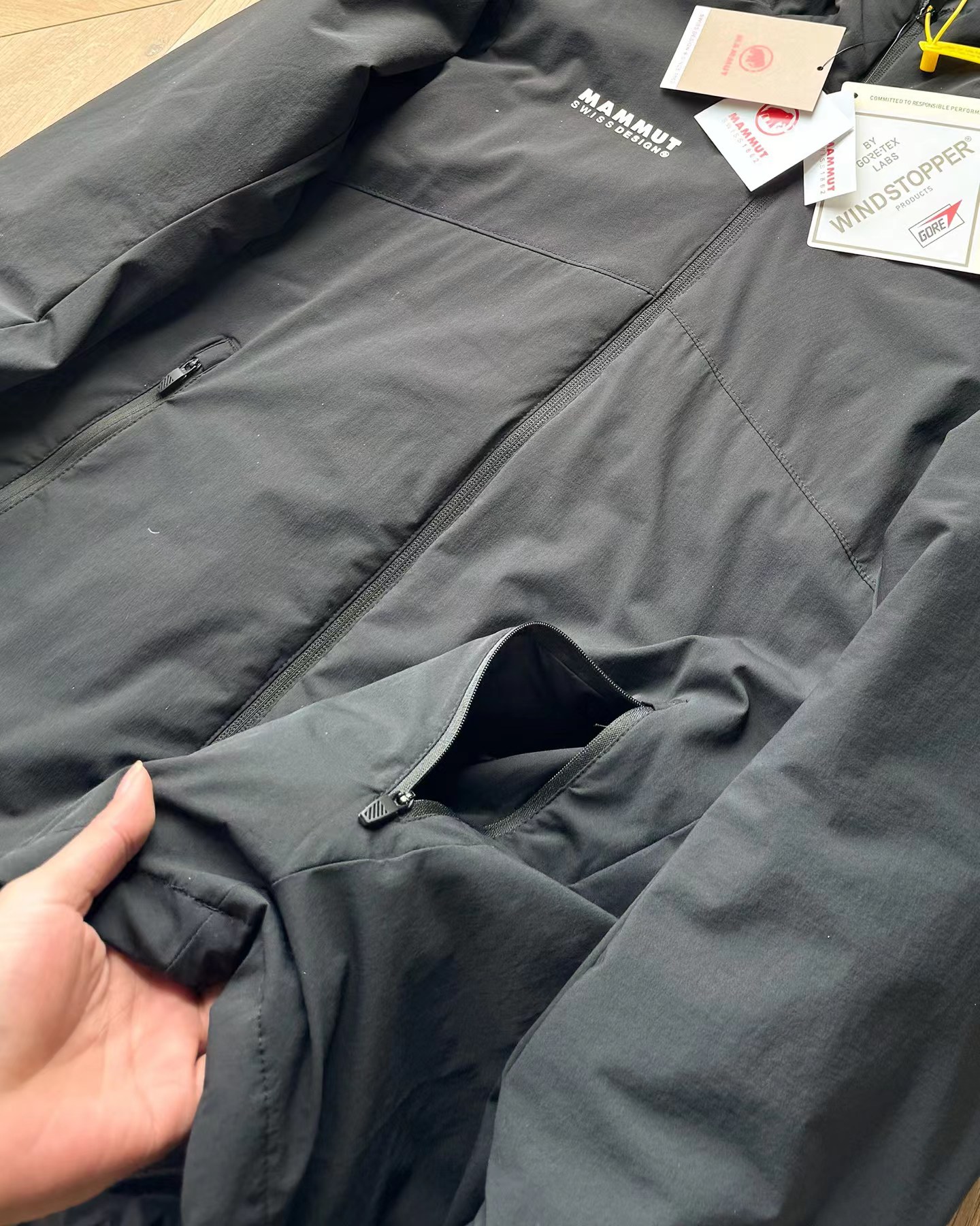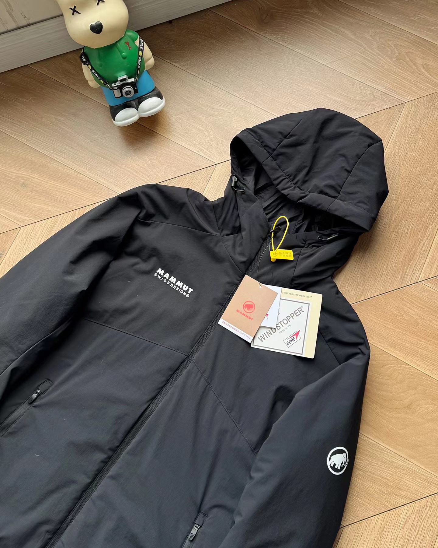 细节:面料巨好巨柔软 弹性螺纹拼接袖口下摆调节扣可调节宽松度帽子上调节扣可调节松紧防风B备