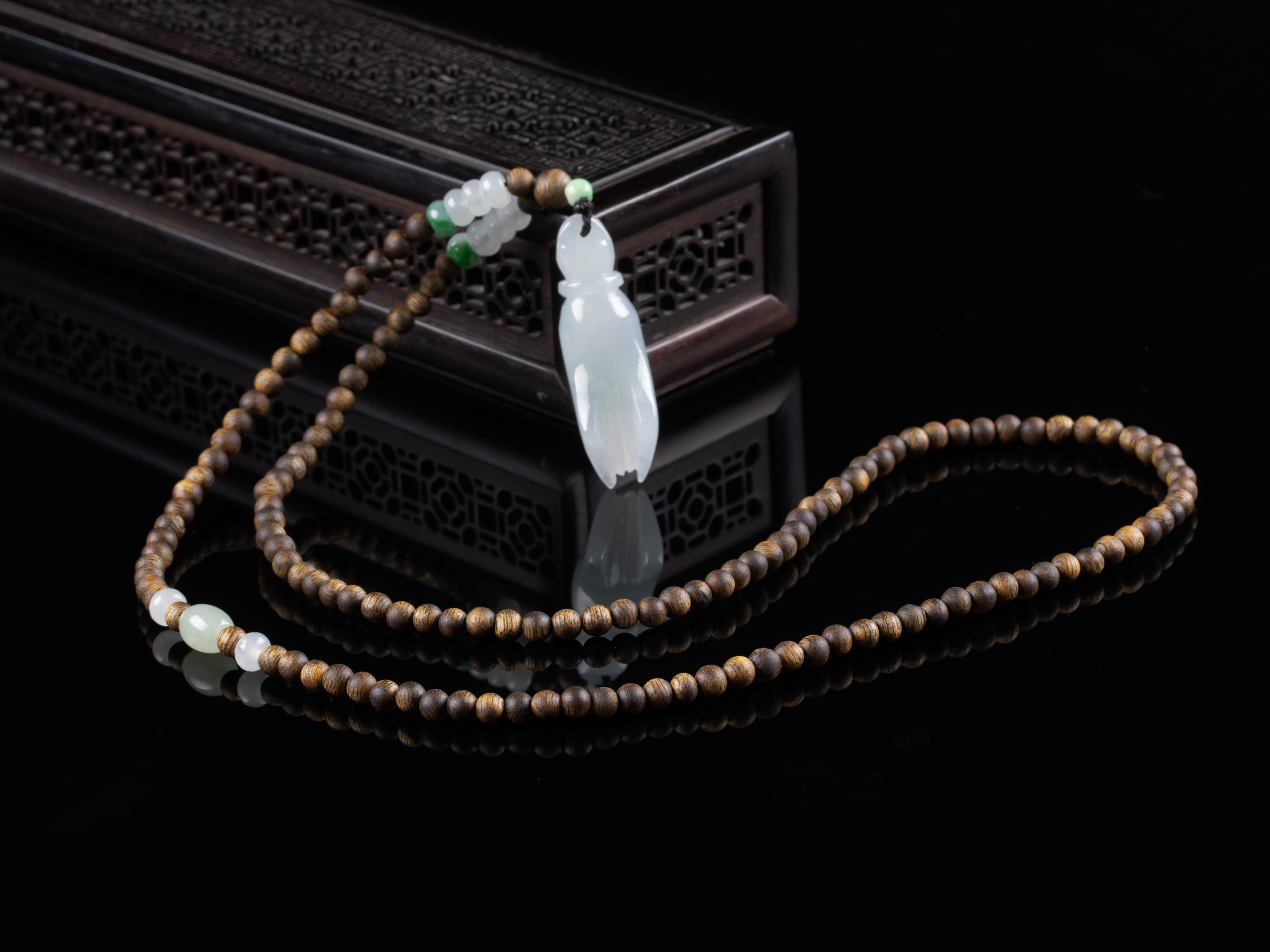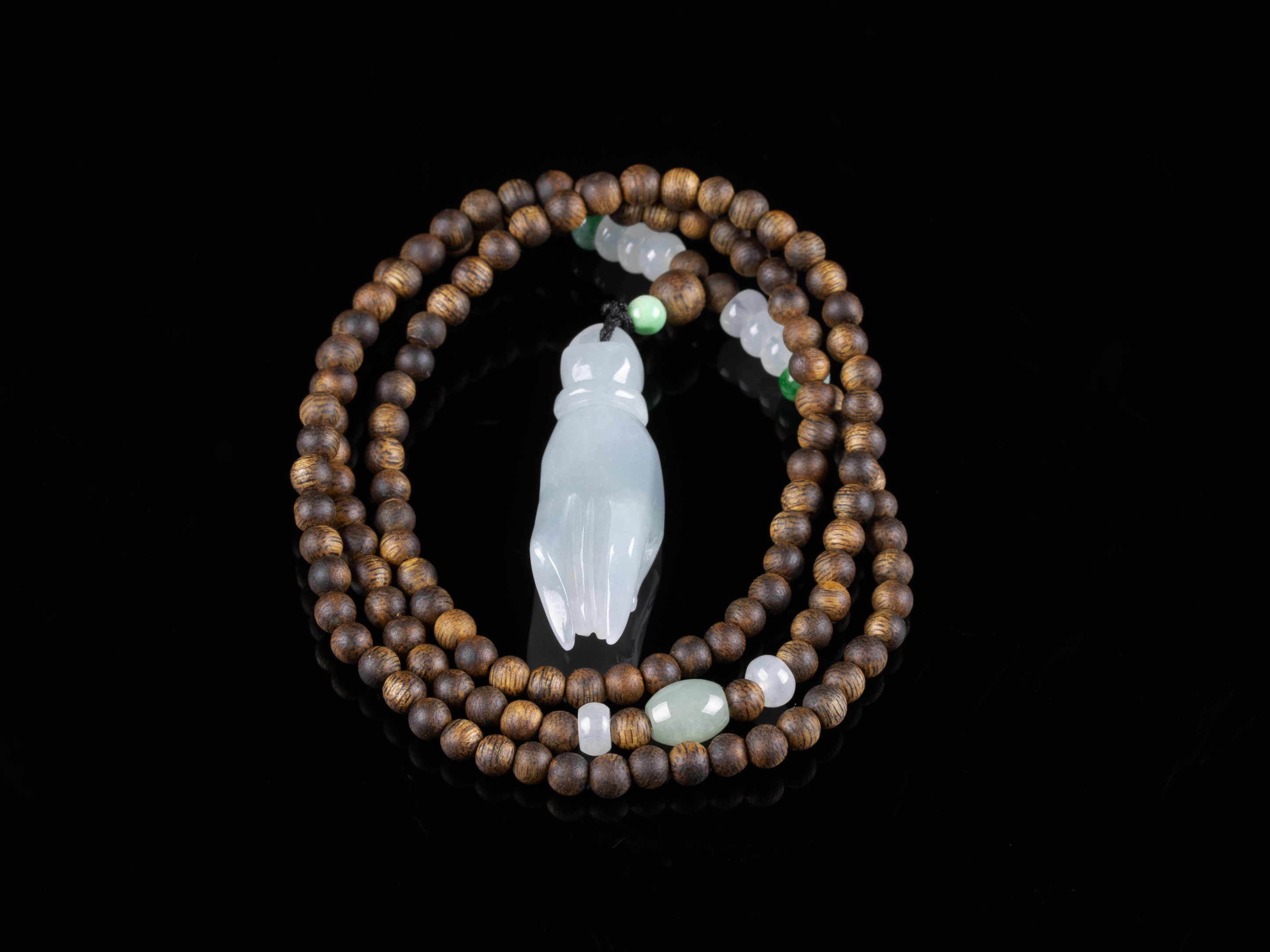 原创沉香+翡翠佛手掌上明珠挂件,天然沉香圆珠4.8mm,原色原味,香味清甜自然,配珠:翡翠。冰糯种翡翠佛手,44.5*13.3*12.6mm,掌上明珠,立体雕刻,细腻完美。
