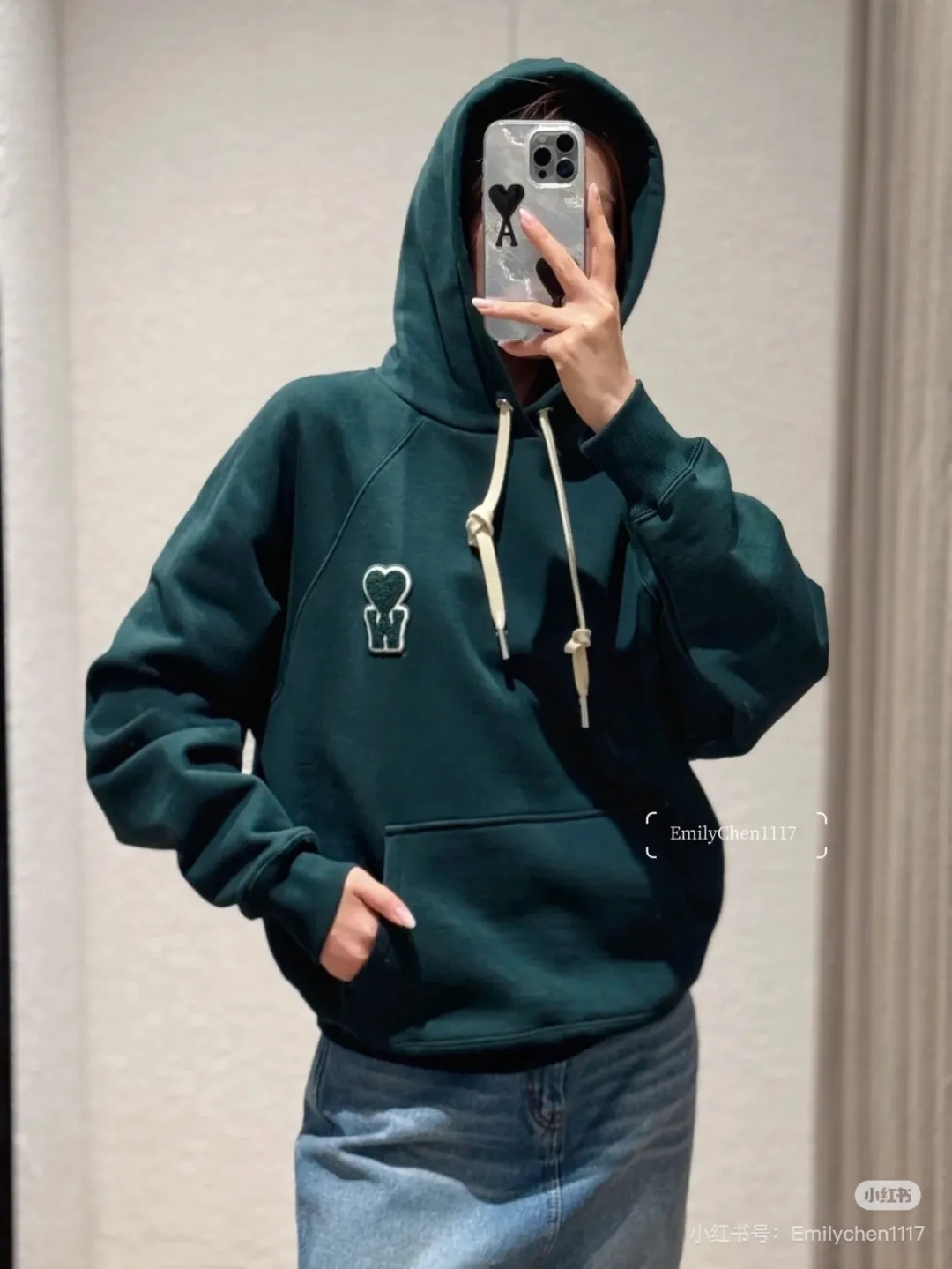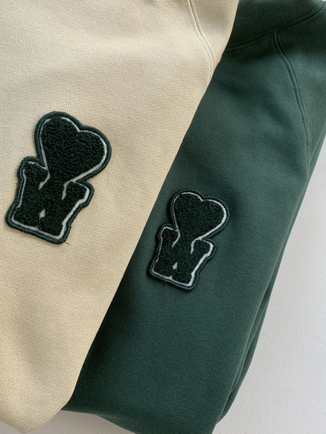 高品~A&W爱心联名早秋连帽卫衣,立体撞色刺绣字母男女款 高级成衣重工纯棉螺纹爱心连帽卫衣