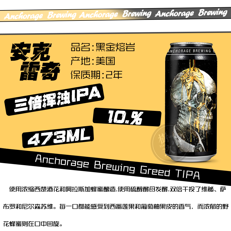 【冷库储存】美国 安克雷奇 黑金熔岩阿拉斯加蜂蜜三倍浑浊IPA啤酒 10.0%vol