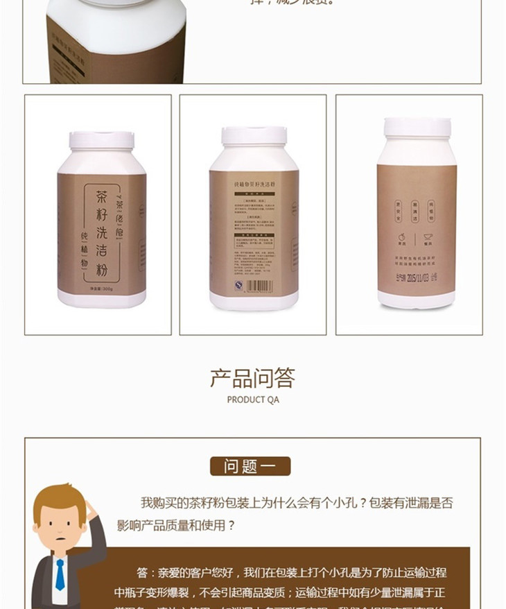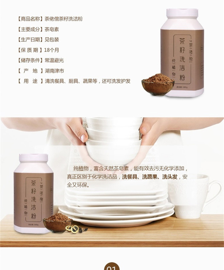 茶佬倌茶籽洗洁粉 300g*4瓶 防水瓶 完美取代洗洁精/洗手液 健康环保