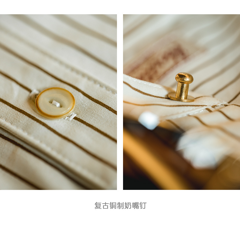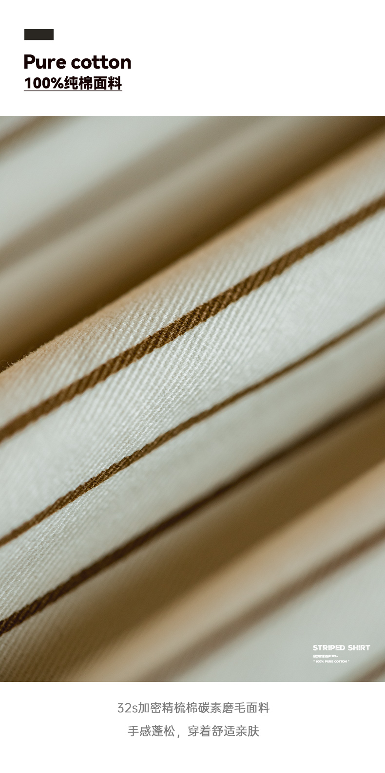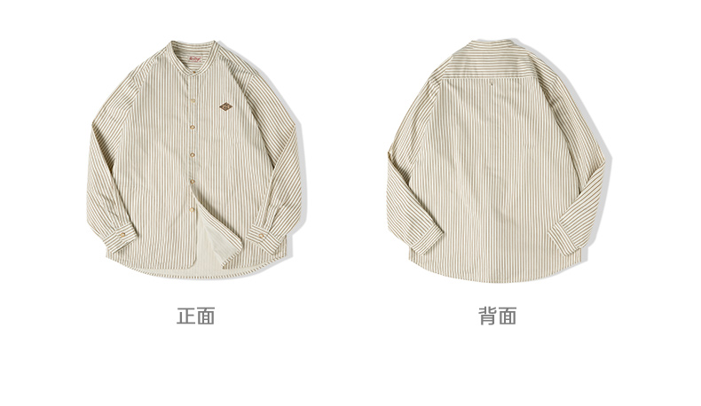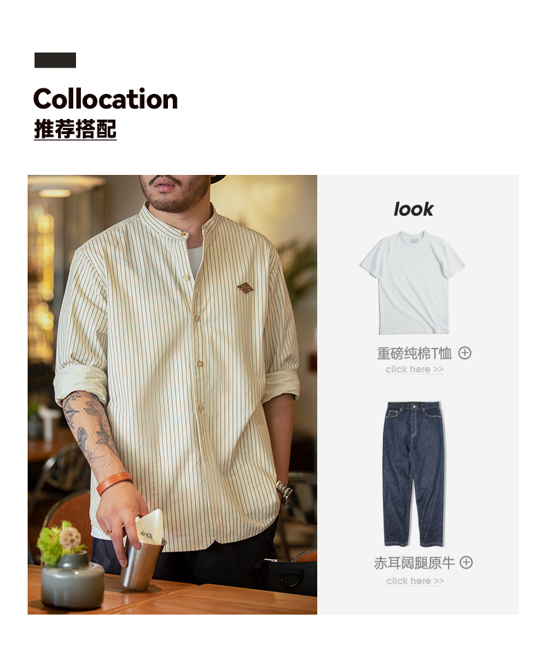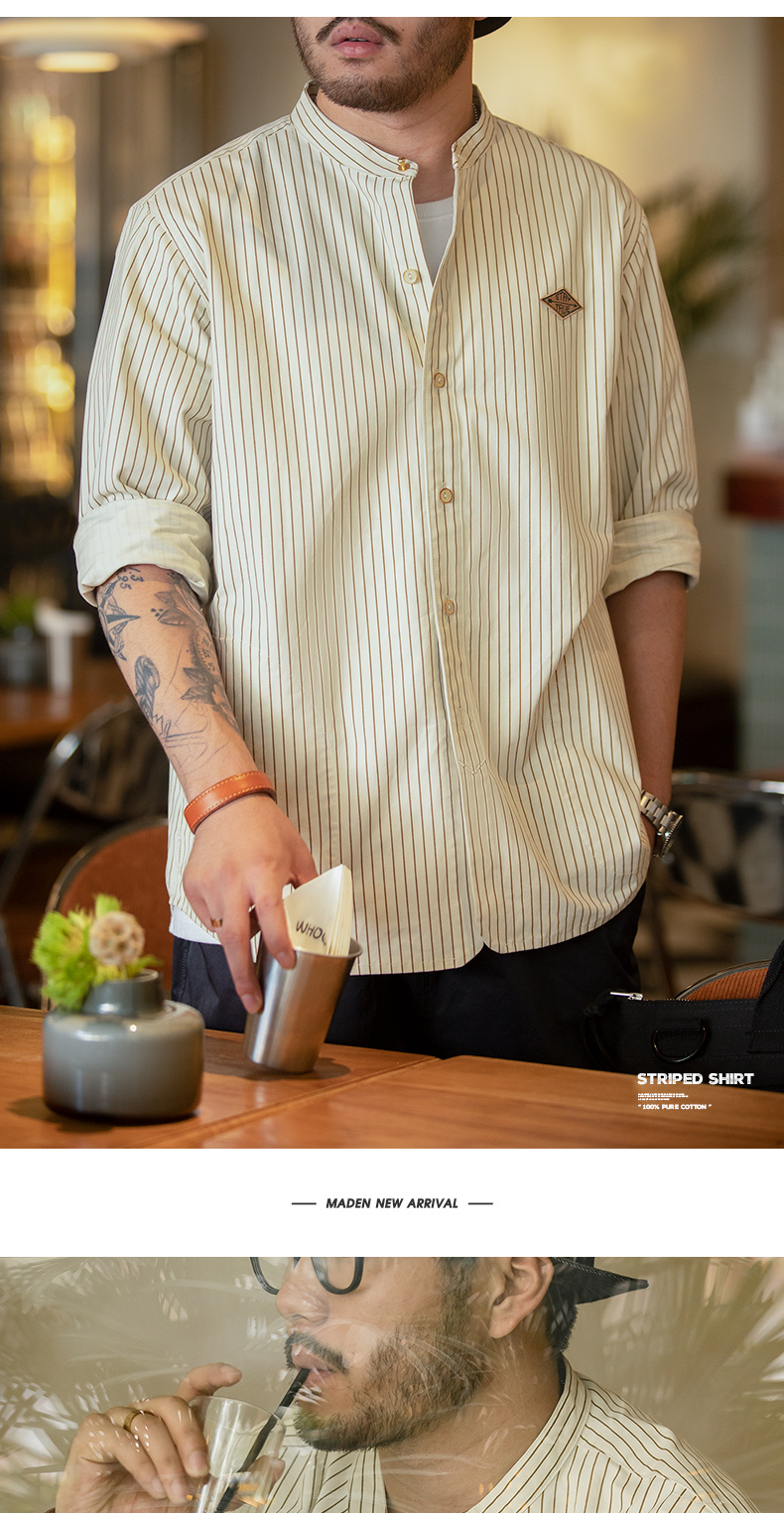 工装优选美式复古竖细条纹立领长袖衬衫日系休闲棒球衬衣外套男春