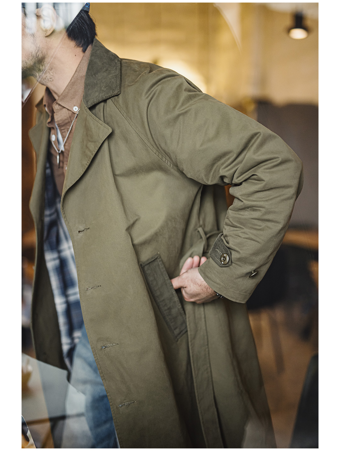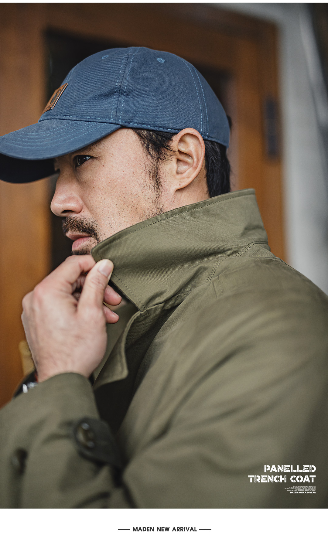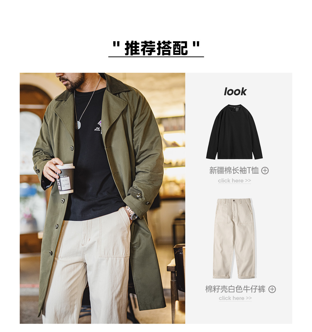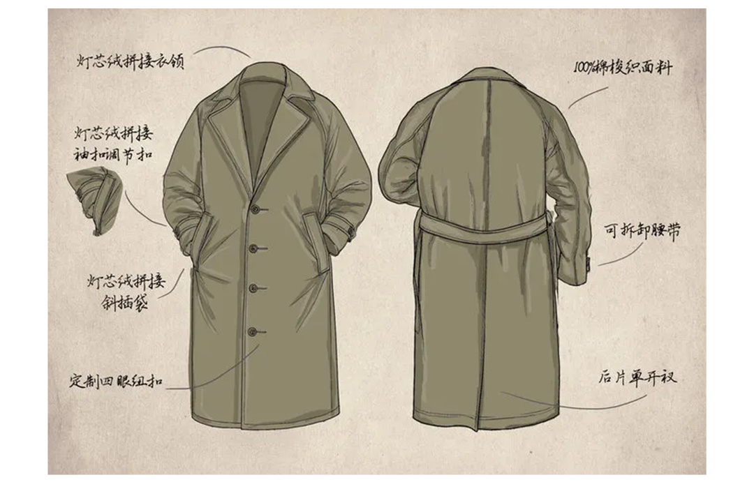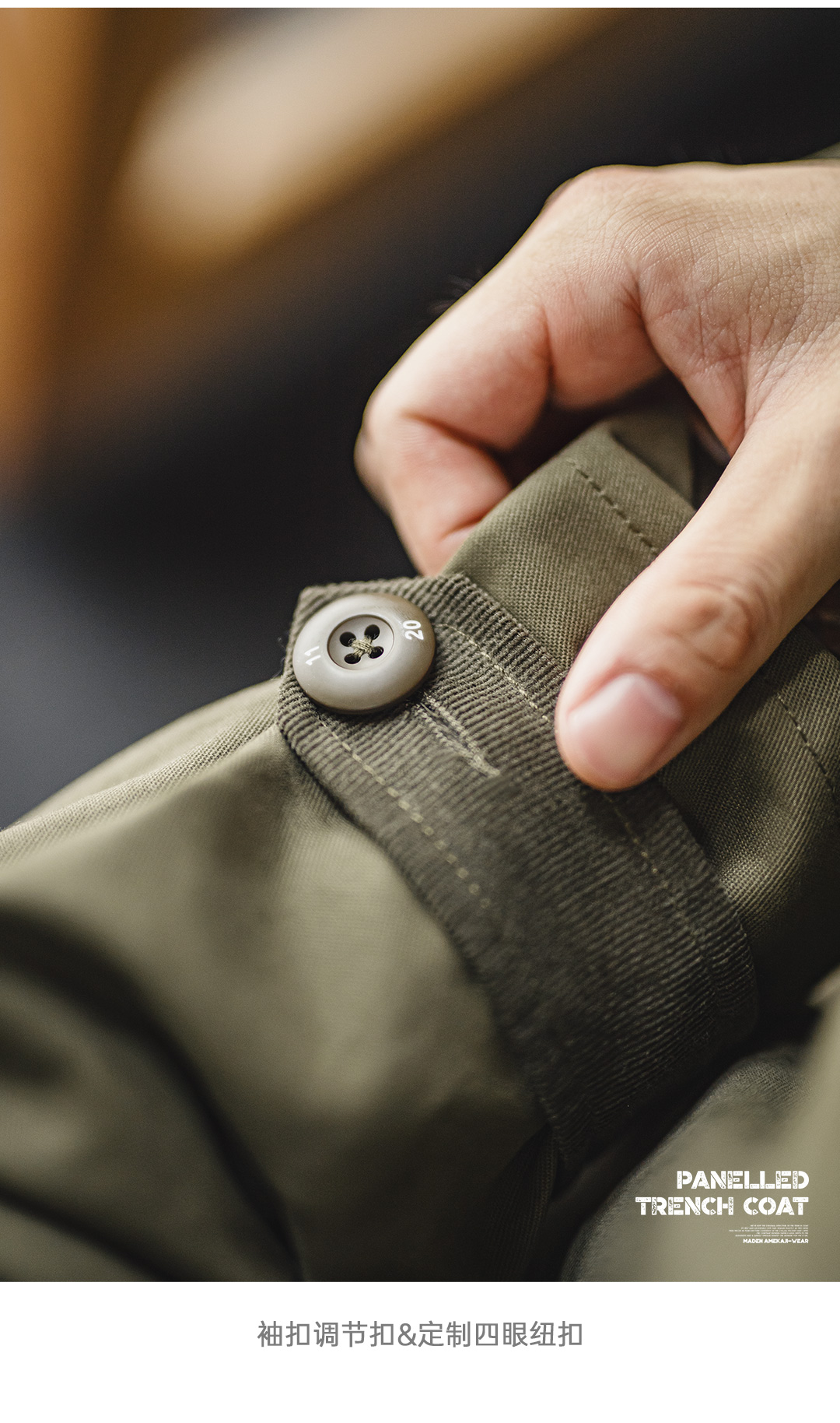 马登工装美式复古战壕风衣军绿色中长款翻领纯棉大衣外套男款春