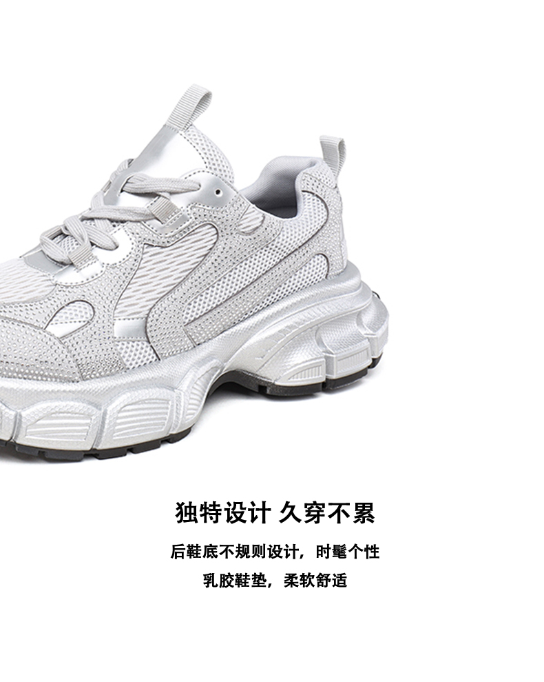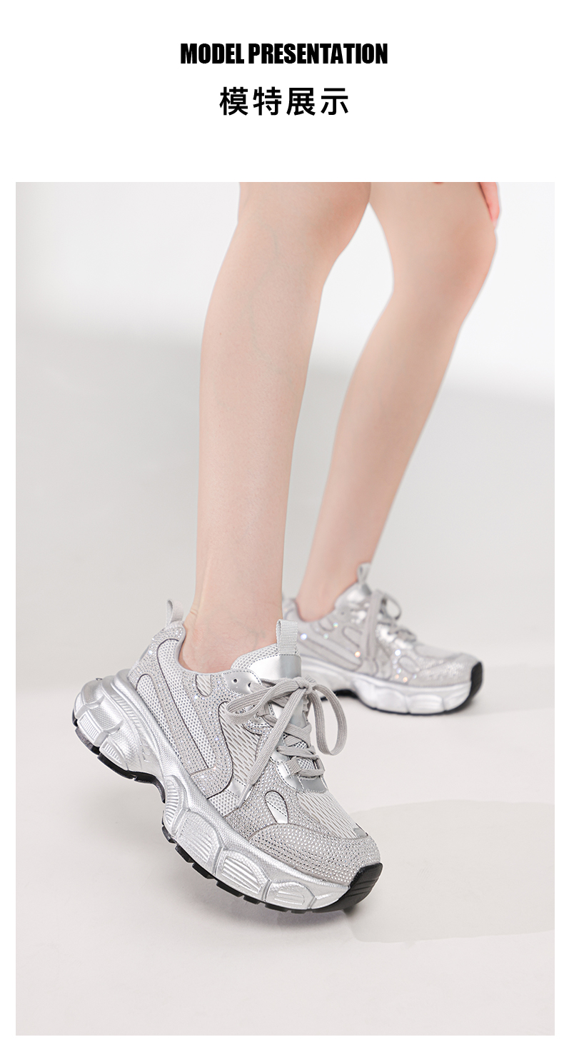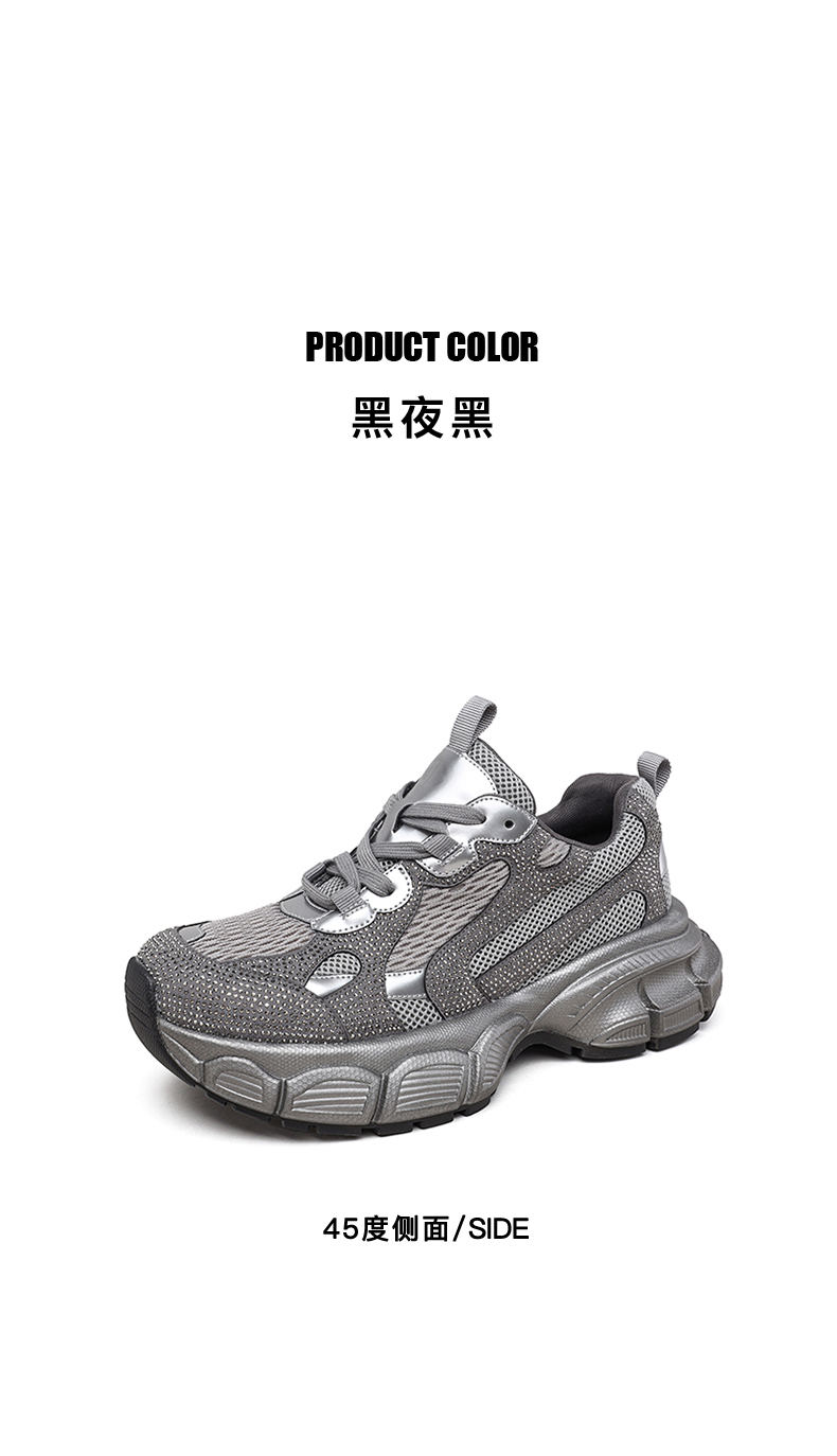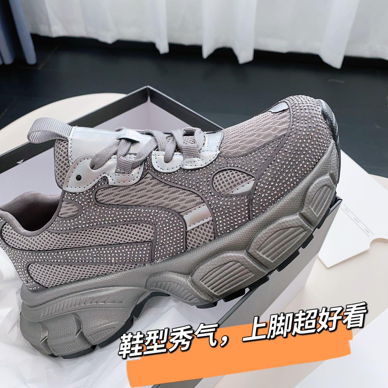 这款老爹鞋,设计很独特,鞋面上镶钻,闪亮亮的,实物比照片看着会更闪。