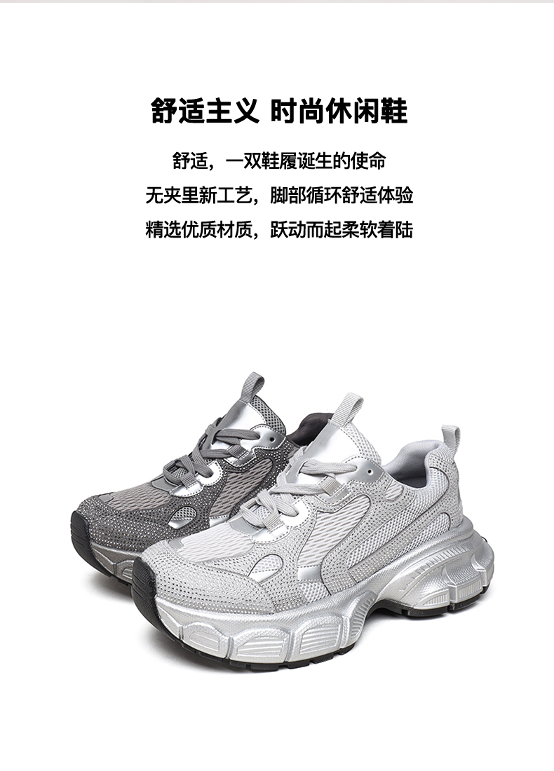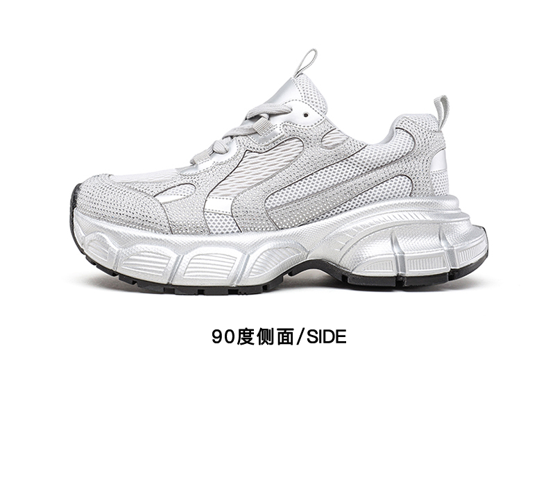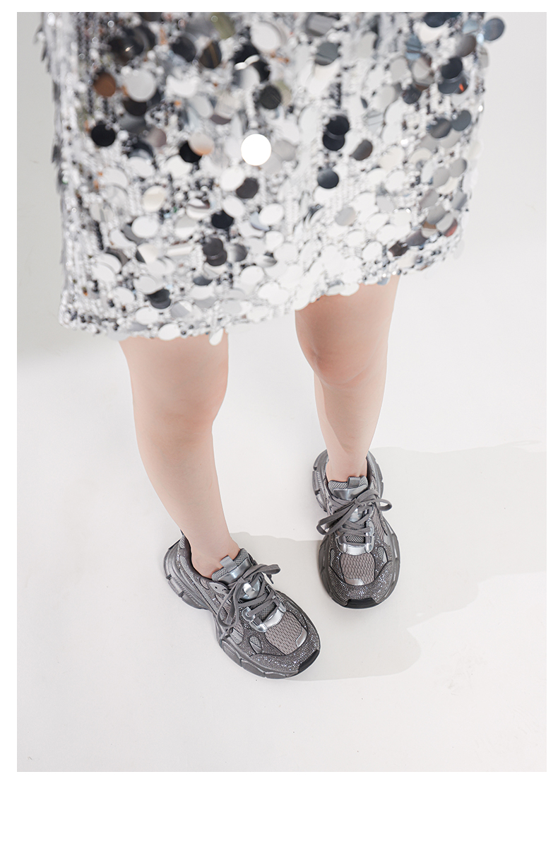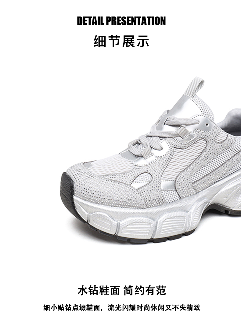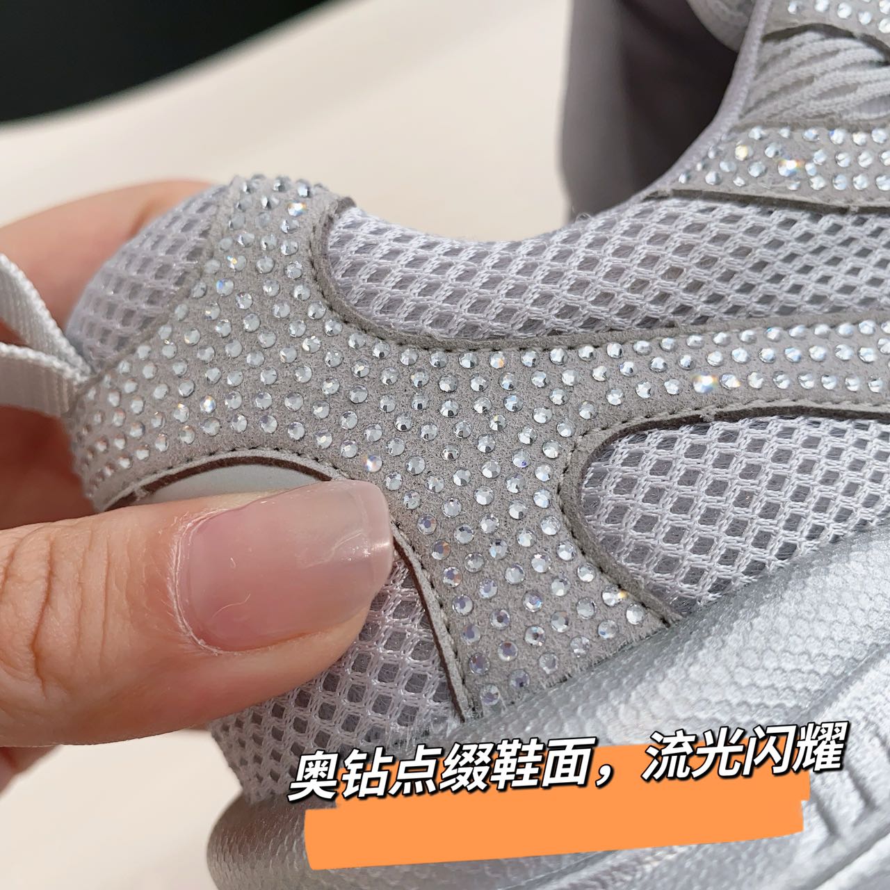 这款老爹鞋,设计很独特,鞋面上镶钻,闪亮亮的,实物比照片看着会更闪。