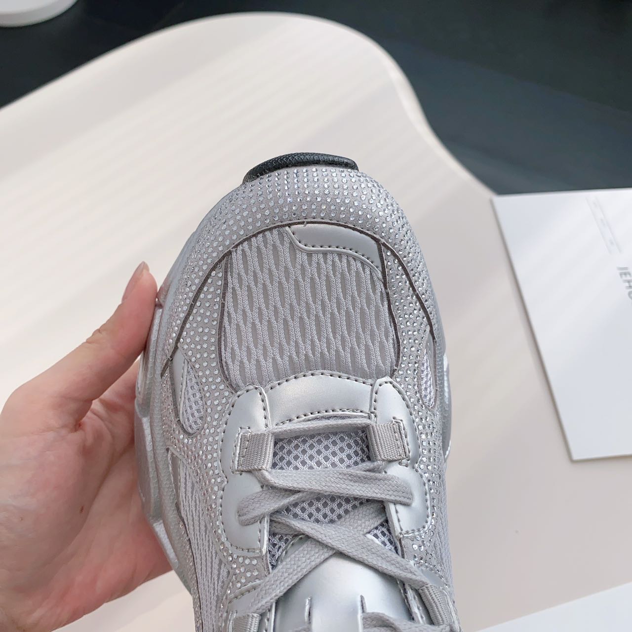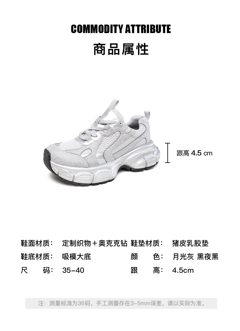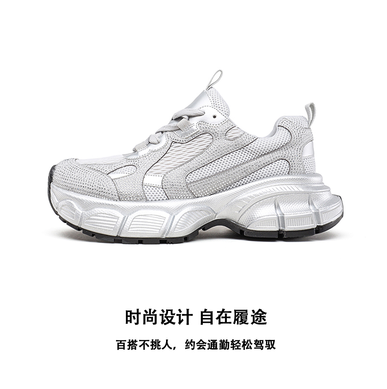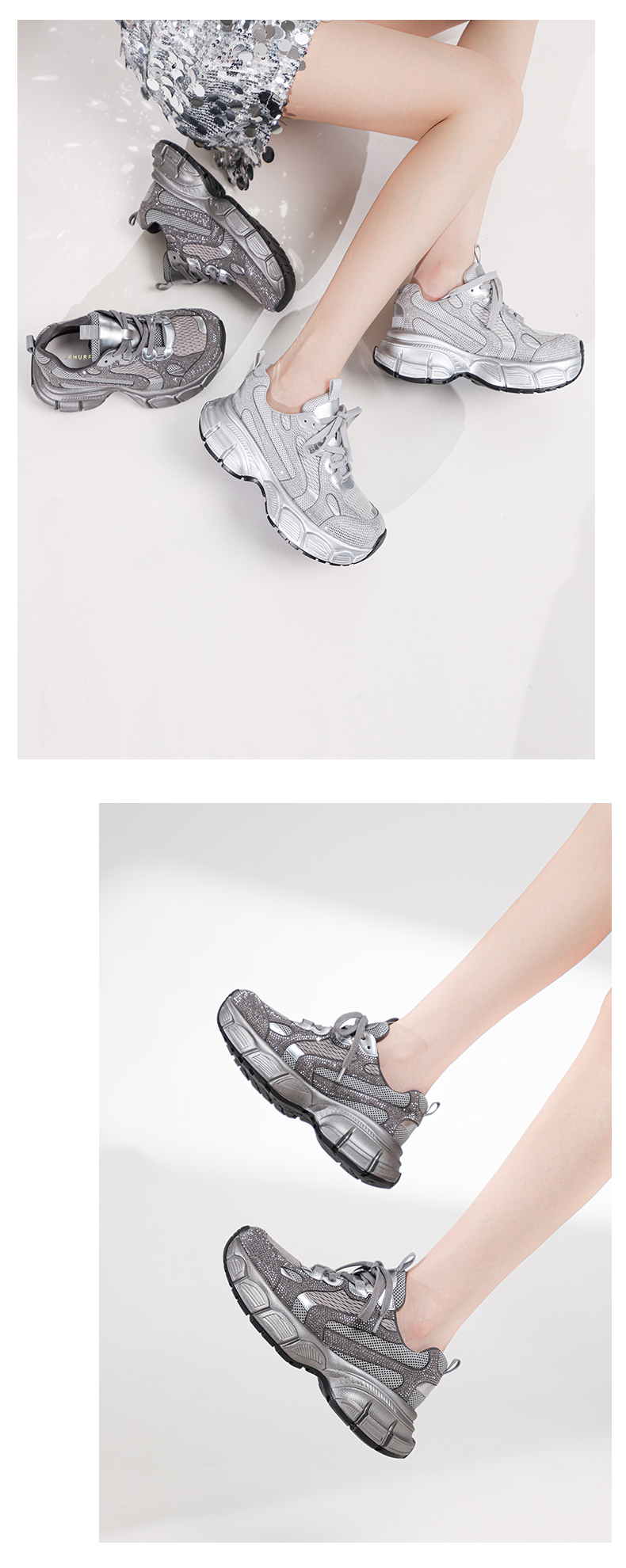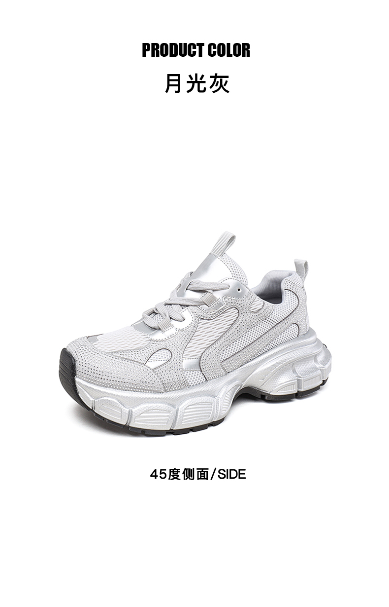 这款老爹鞋,设计很独特,鞋面上镶钻,闪亮亮的,实物比照片看着会更闪。