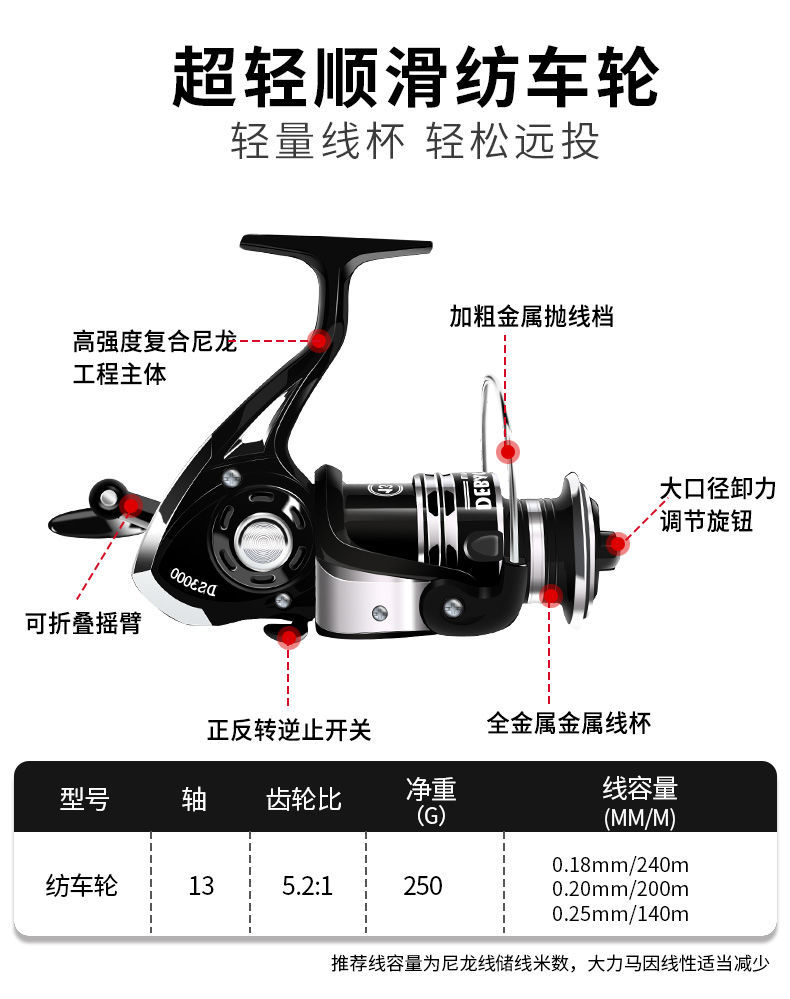 不炸线 磁力刹车 I 水滴轮路亚竿远投初学者钓鱼竿套装
