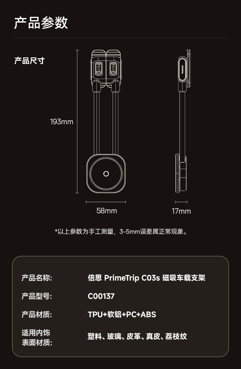 【十一专享】倍思 PrimeTrip C03s 磁吸车载支架 粘贴式