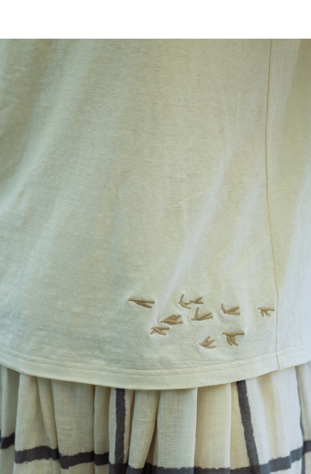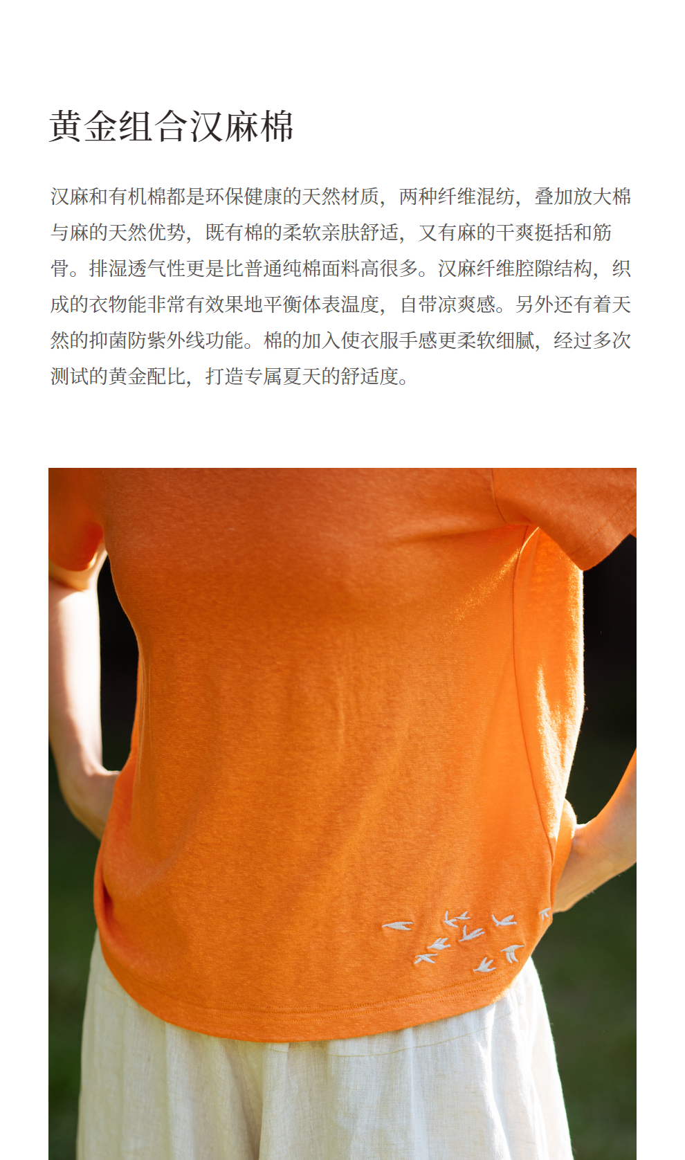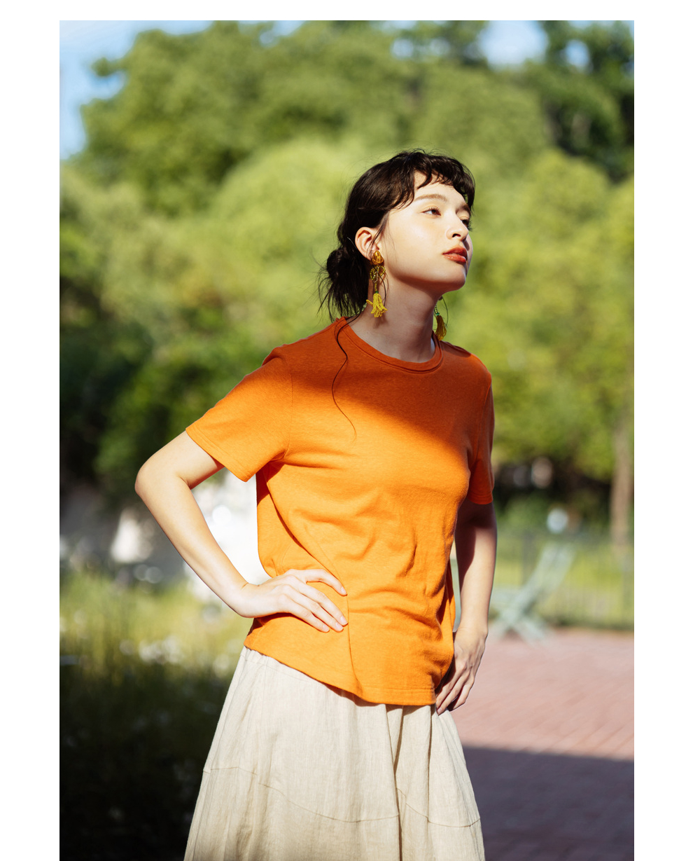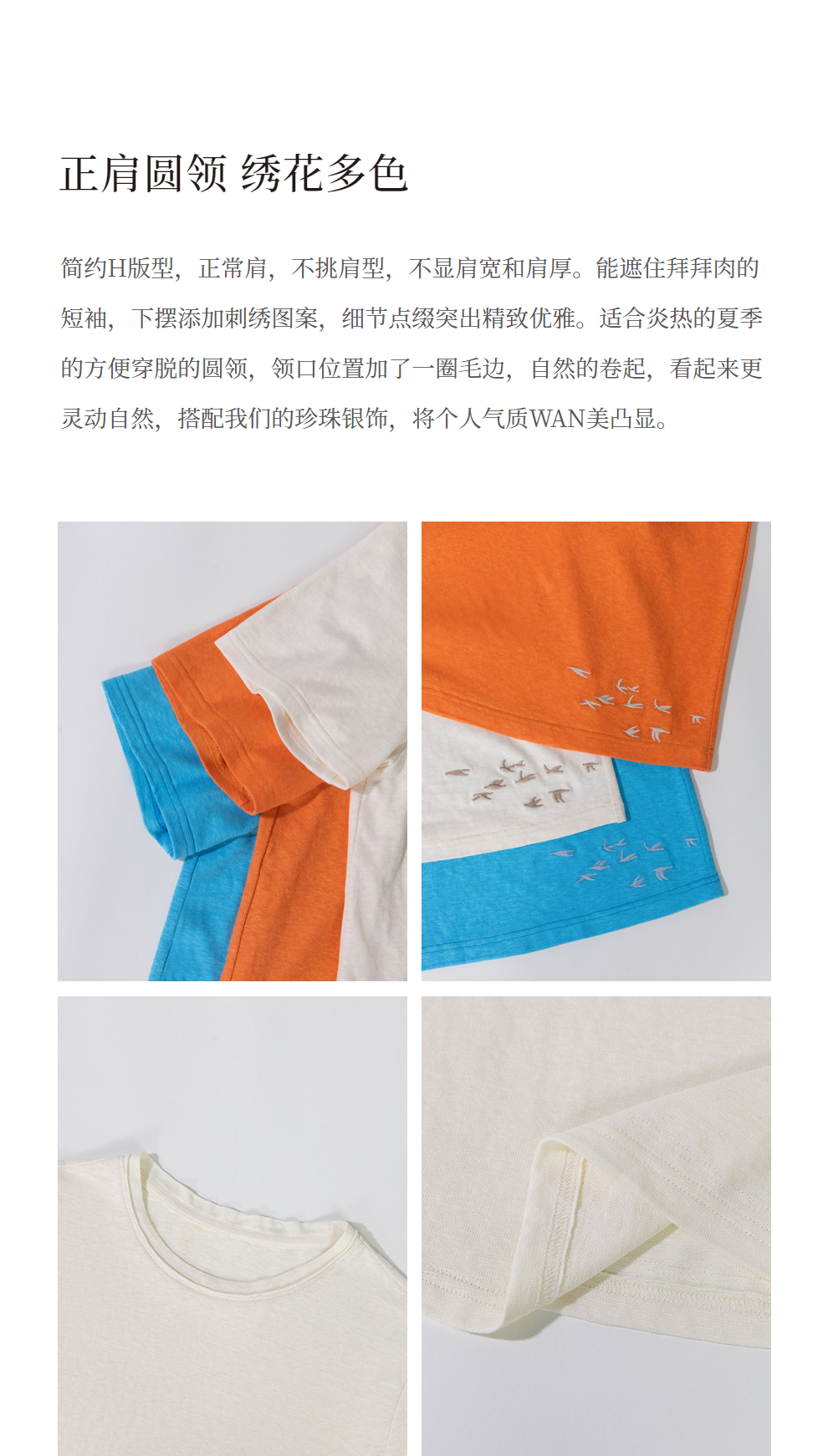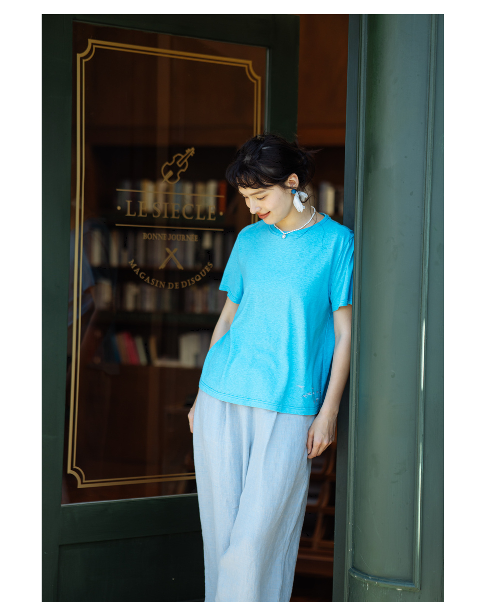 绽放旅行女装391朵/高端汉麻棉针织t恤2024新款飞鸟绣花棉麻上衣
