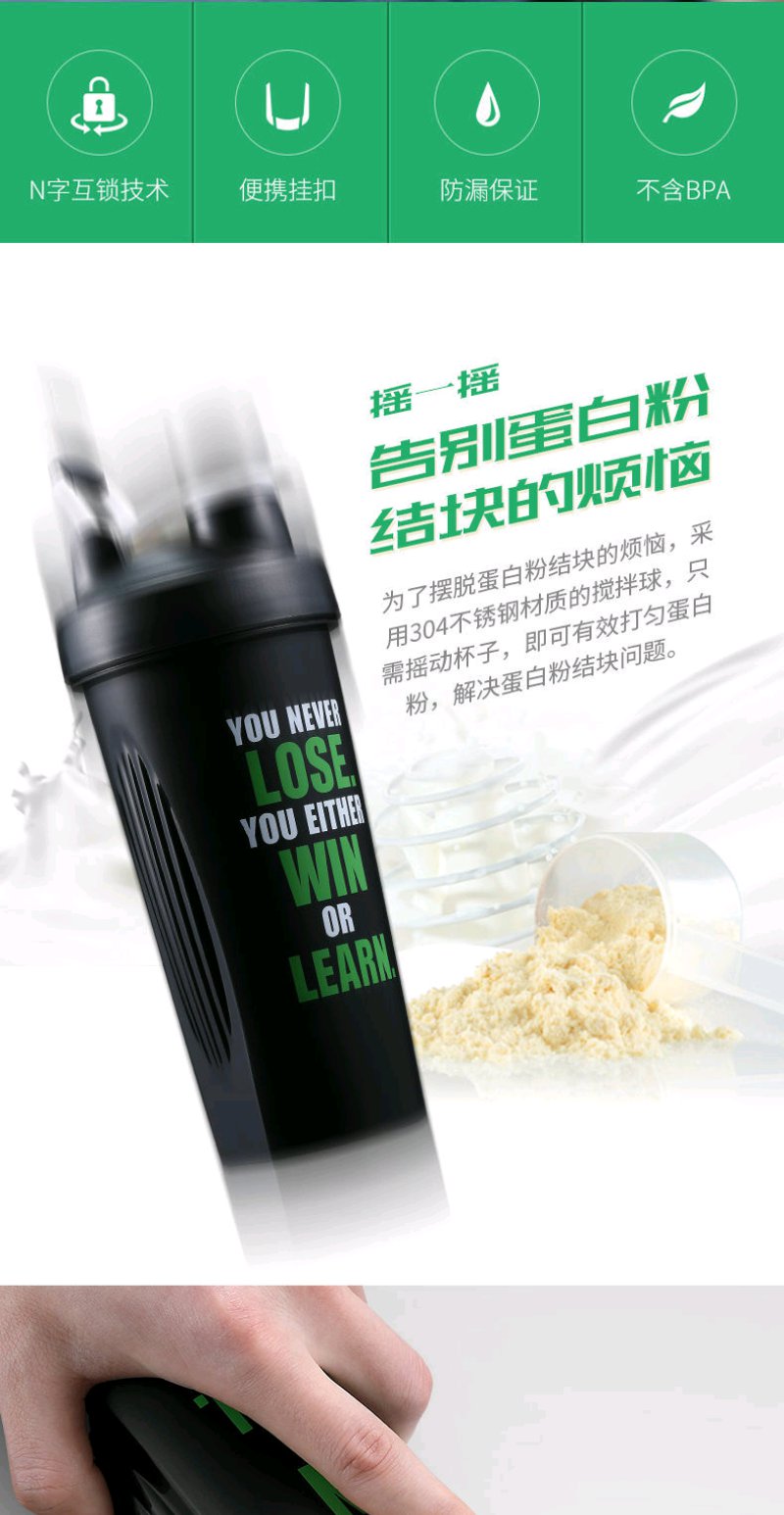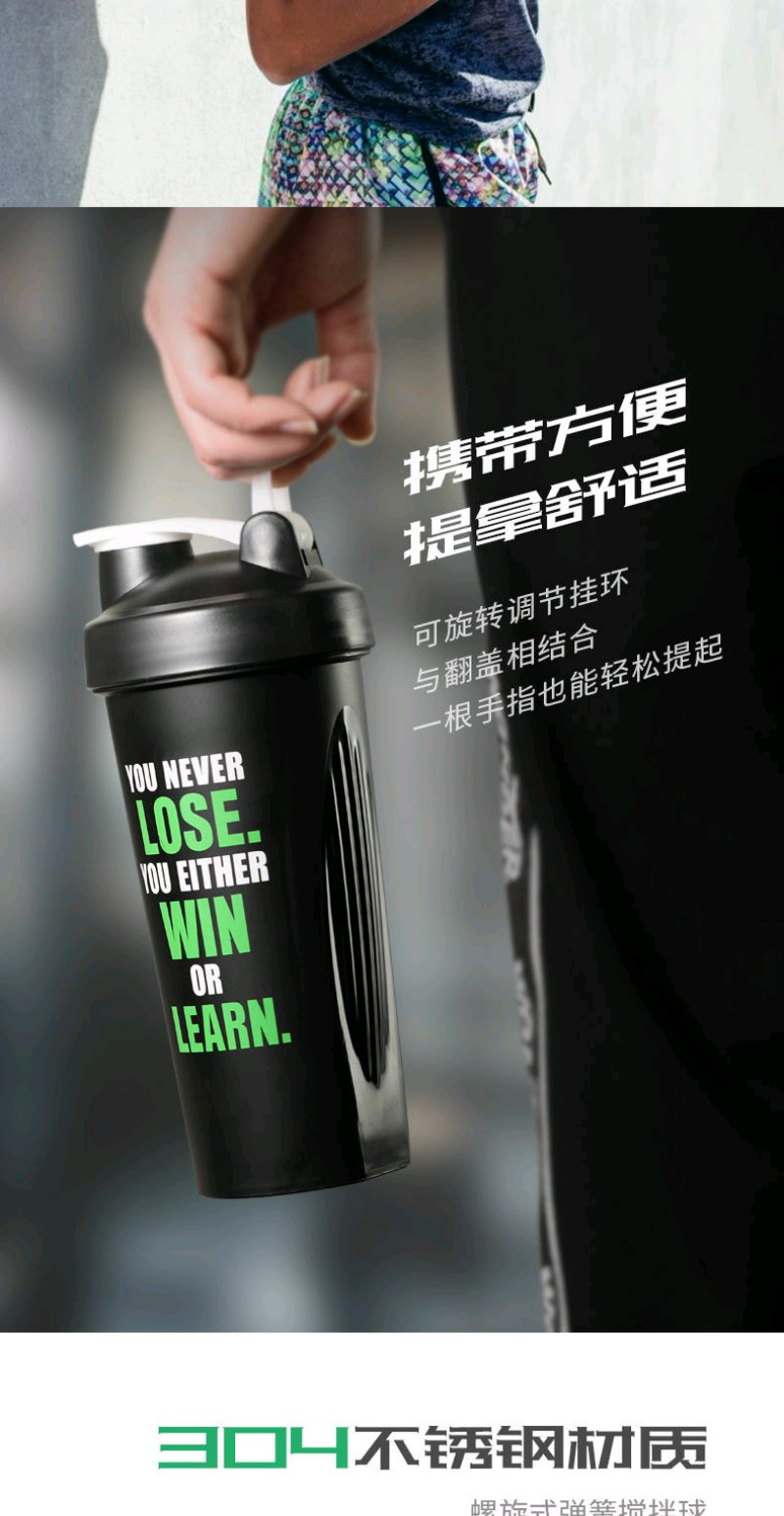摇摇杯运动水杯男女健身塑料杯子大容量蛋白粉奶昔便携户外随手杯