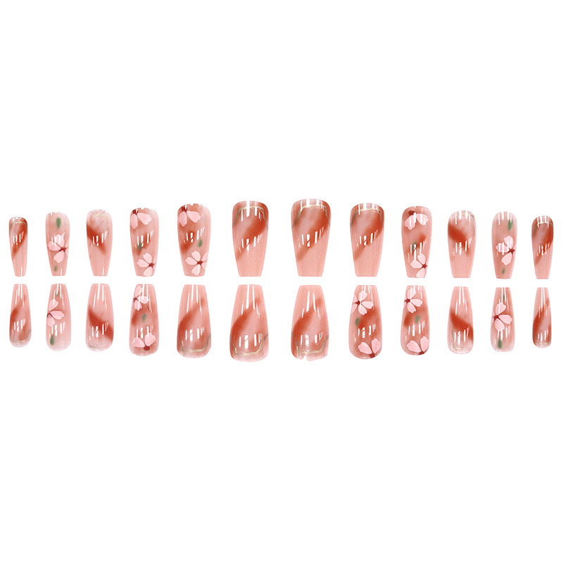 A677【赠胶水】清新温柔风穿戴美甲片长款冰透腮红少女樱花显白可拆卸假指甲片24片/盒