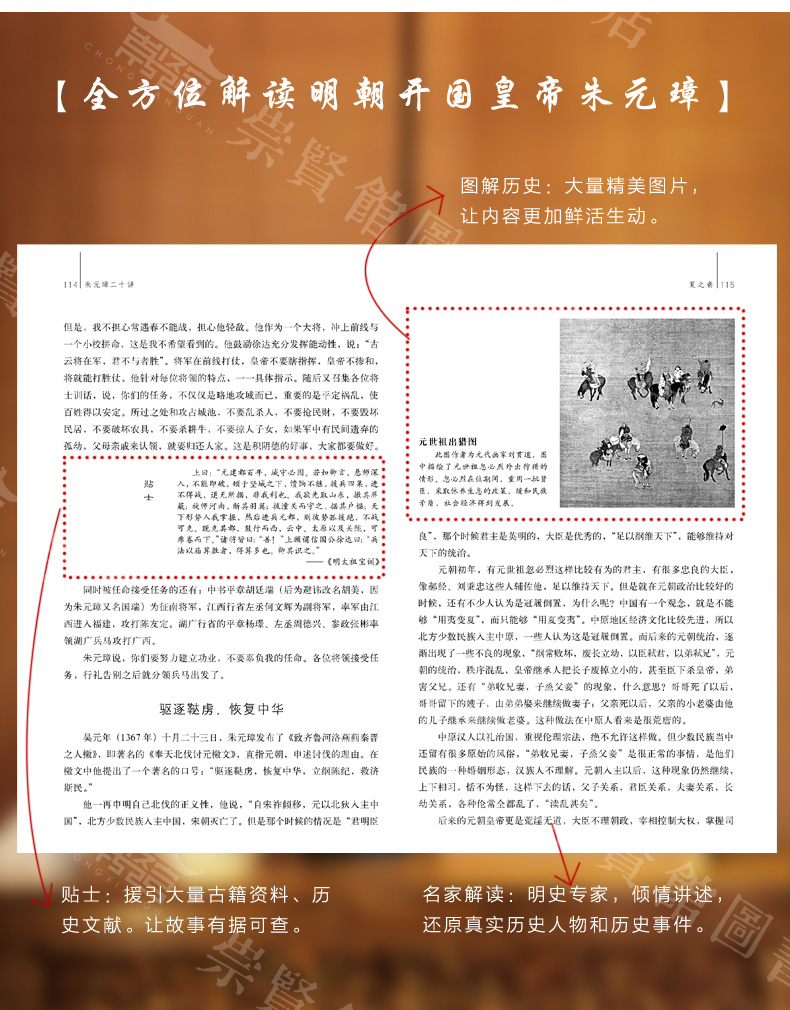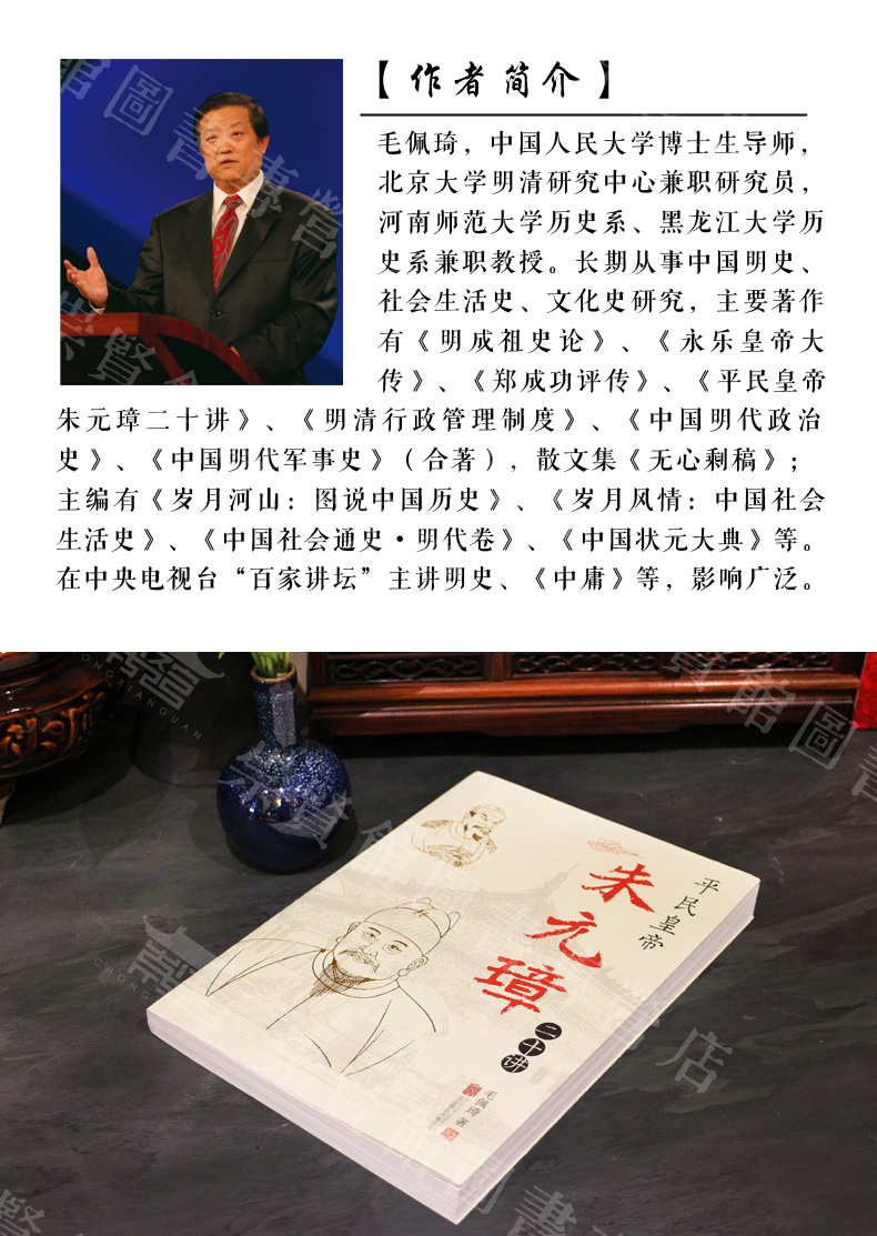 本书作者身为中国人民大学教授,著名明史研究专家,汇聚了多年的研究心得,并加入了自己深刻的见解。本书原来为作者为百家讲坛的演讲稿,随后加以整理、润色而成,料详实,丰富,作者在掌握大量的历史资料的前提下,厚积薄发,显示出高屋建瓴的开阔的眼界。作者以一个讲故事人身份,追本溯源,娓娓道来,情节曲折,很能激发读者的期待视野。作者围绕朱元璋的生平、经历,并进行一定的刻画和渲染,塑造出来一个活生生的人物形象。
