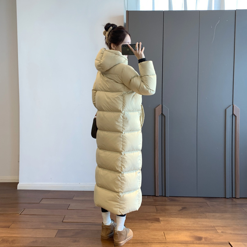 95白鸭绒!2025蓬松抗寒分隔充绒四层防钻线长款连帽羽绒服冬女款!