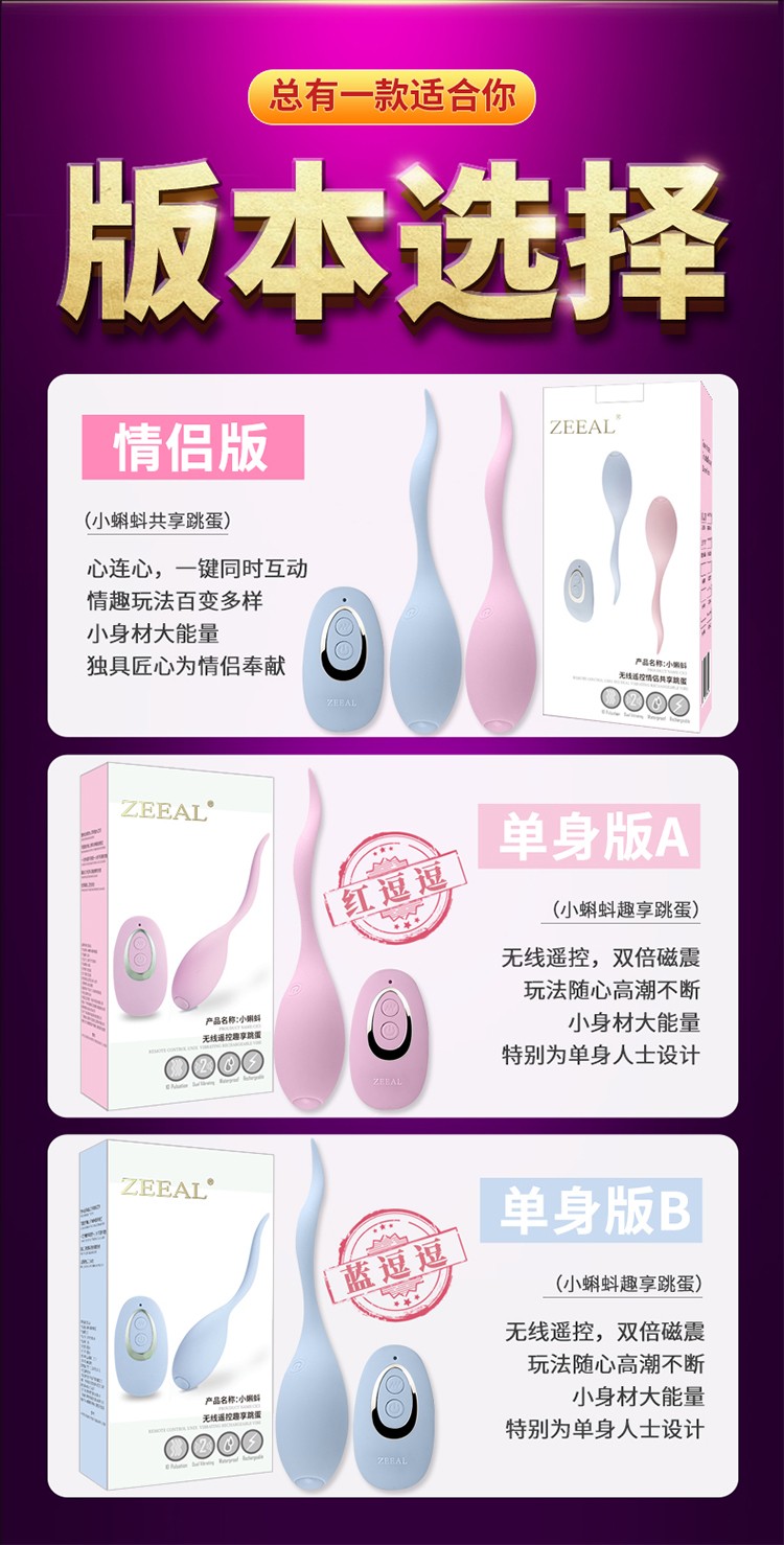 ZEEAL 小蝌蚪共享跳蛋变频遥控防水充电