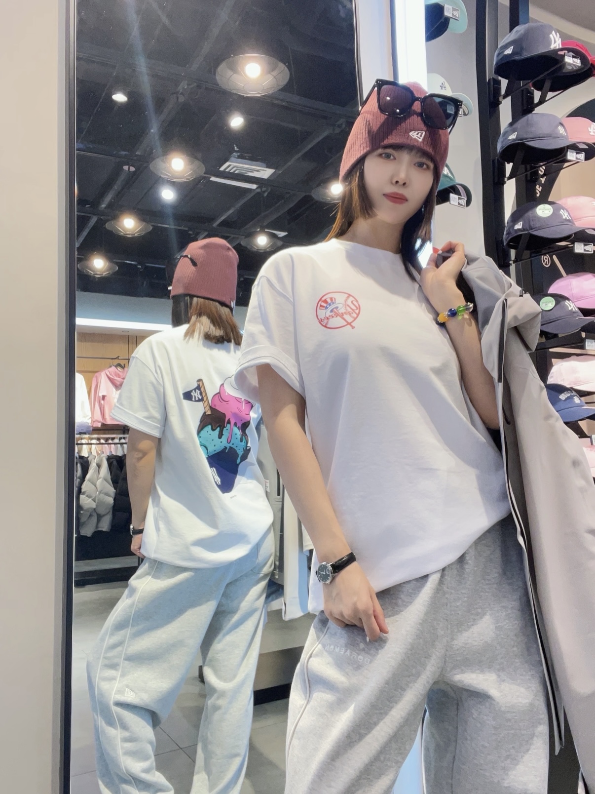 白色洋基款干净清爽,浅蓝道奇款温柔显白,两种配色都自带松弛感。