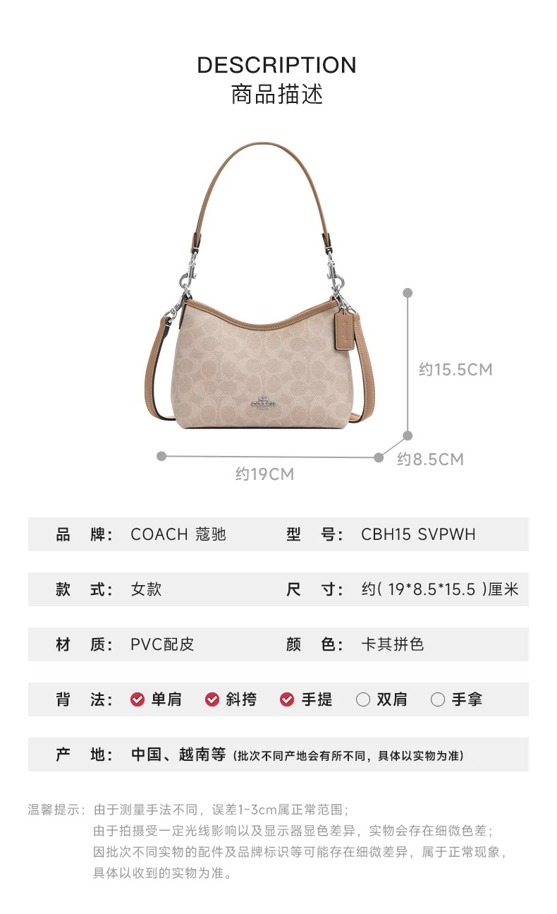 购买须知: 【品牌】:COACH/蔻驰【商品名称】:COACH/蔻驰 女士老花LAUREL小号流浪包单肩斜挎手提包CBH15 小号 【规格】:棕色-小号流浪包 【尺寸】: 尺寸:约19*15*8cm 注!!: 手工测量误差2-3cm属于正常范围内 【产地】:越南/柬埔寨等(以实际收到为准) 【材质】:PVC 【包装】:礼盒礼袋 【发货地】:广东 【发货物流】:中通快递 【发货快递】:新疆,内蒙,西藏➕15 【发货时效】:48小时出物流 【运费标准】:全国包邮 【售后政策】:支持七天无理由退换货,影响二次销售不可以退换 |