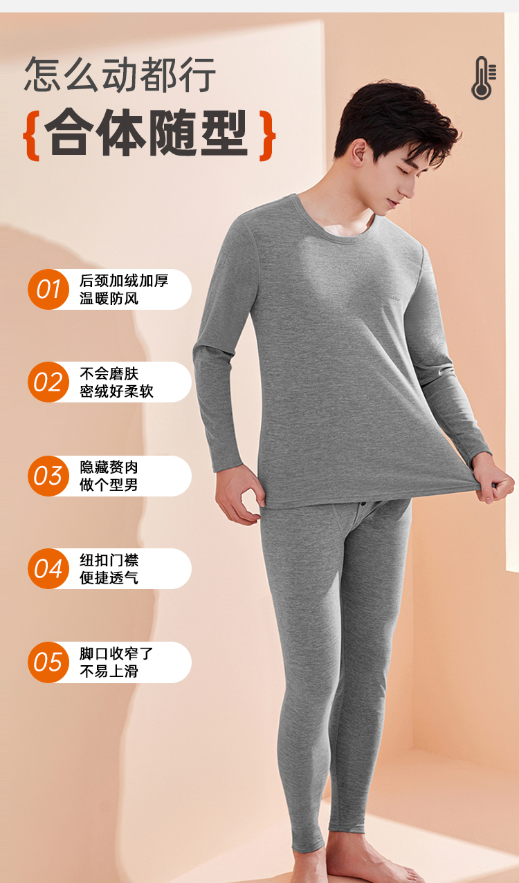 雅黛丽保暖内衣套装含羊毛蚕丝贴片秋衣秋裤250g轻暖舒适高弹打底