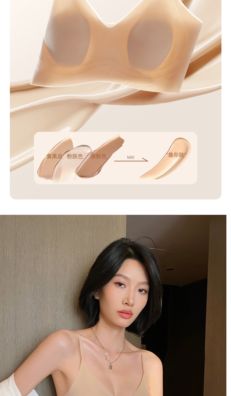 真不透 真好搭!【特妮娜 隐形无痕兔耳朵内衣】特调粉底液 融肤隐形 3D果冻条 软支撑聚拢挺拔 无痕一片式 对内无感对外隐形 侧翼果冻条 无感收副乳 弹力肩带 挺托有型