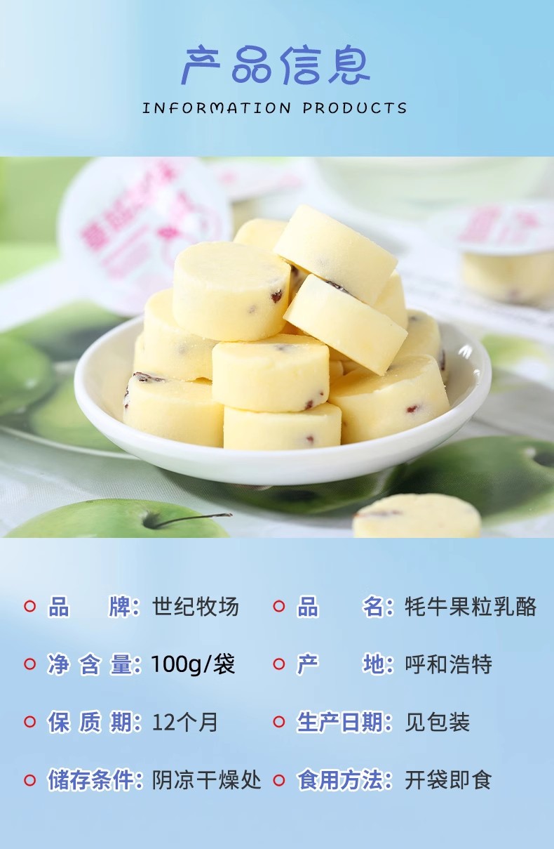 世纪牧场牦牛果粒乳酪高铁同款内蒙古奶酪块固体酸奶休闲零食100g