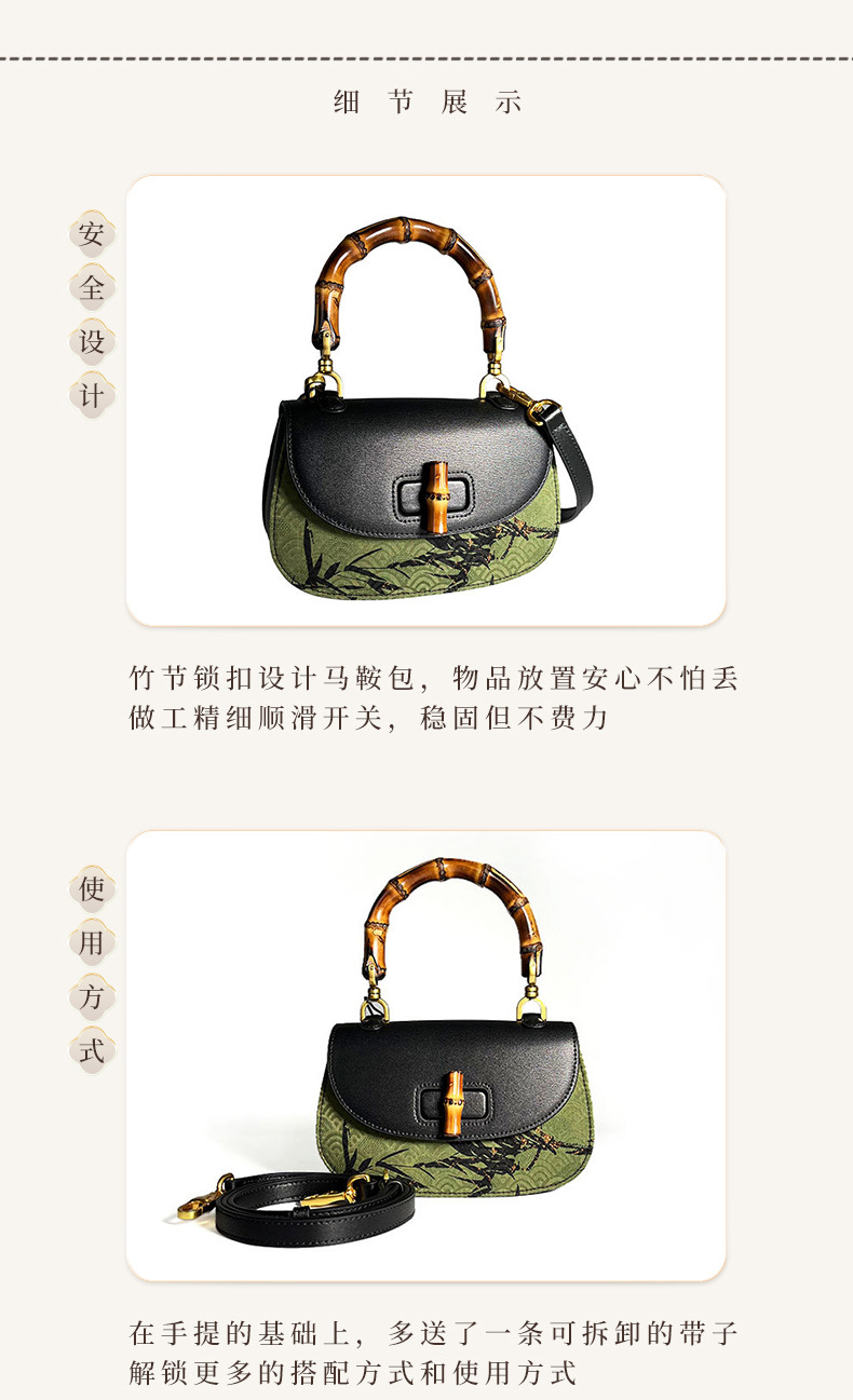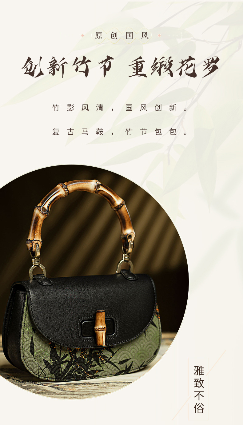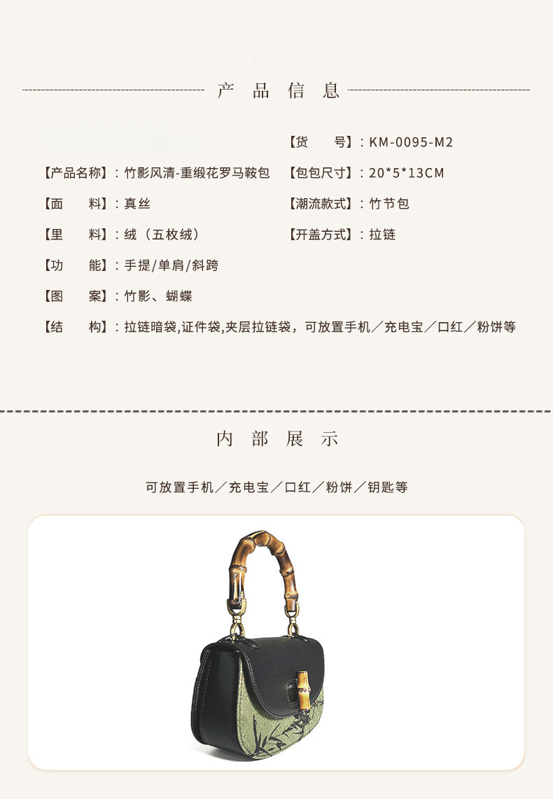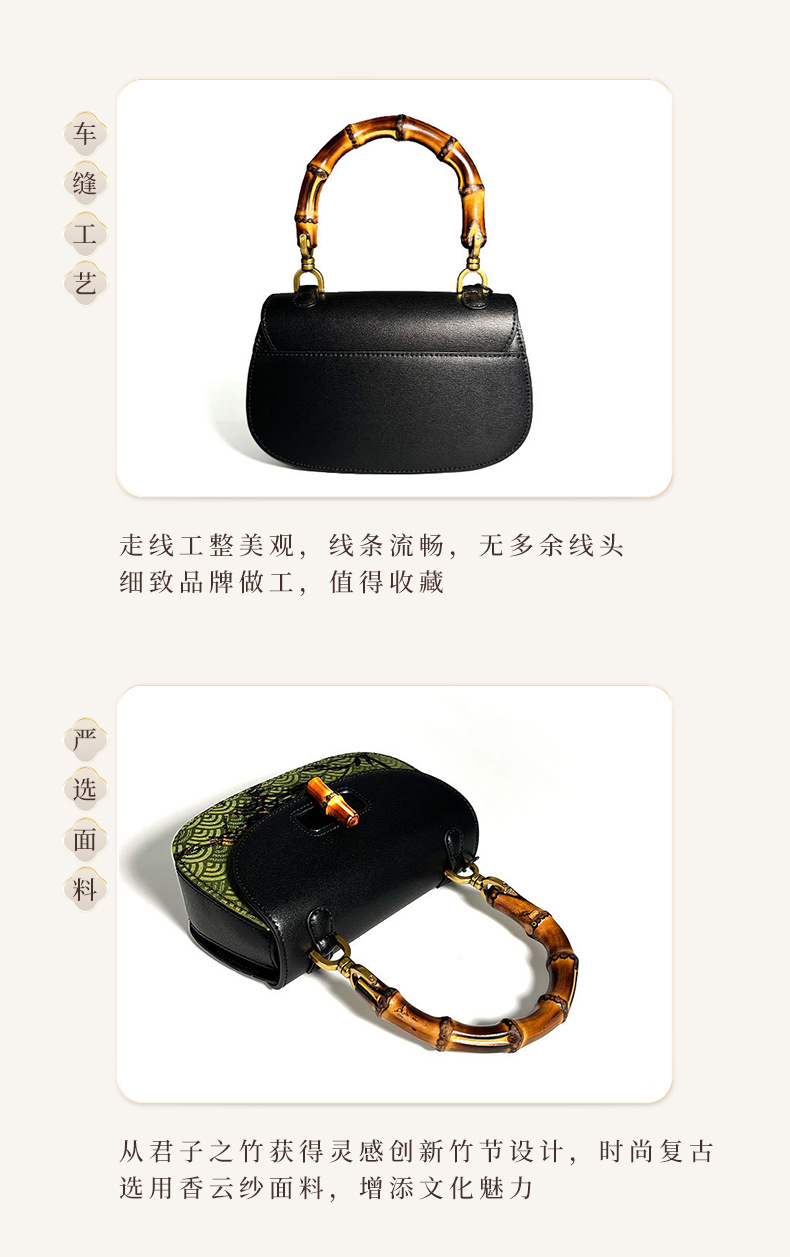 【预售3天】宋锦香云纱竹节包新中式包国风马鞍包女包手提包KM-0095-M2