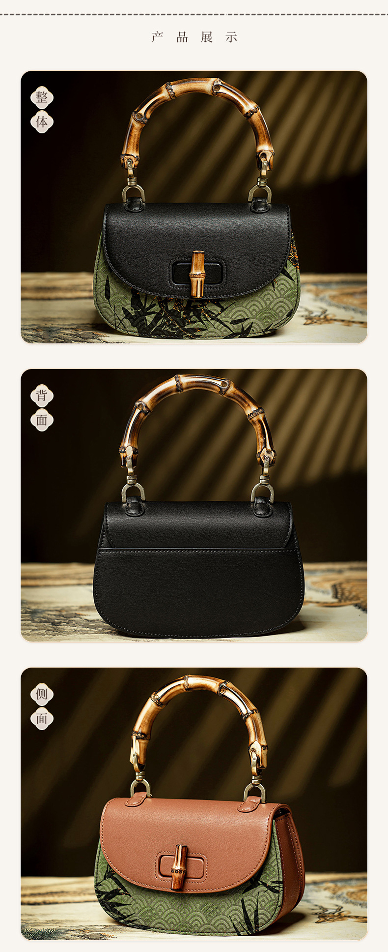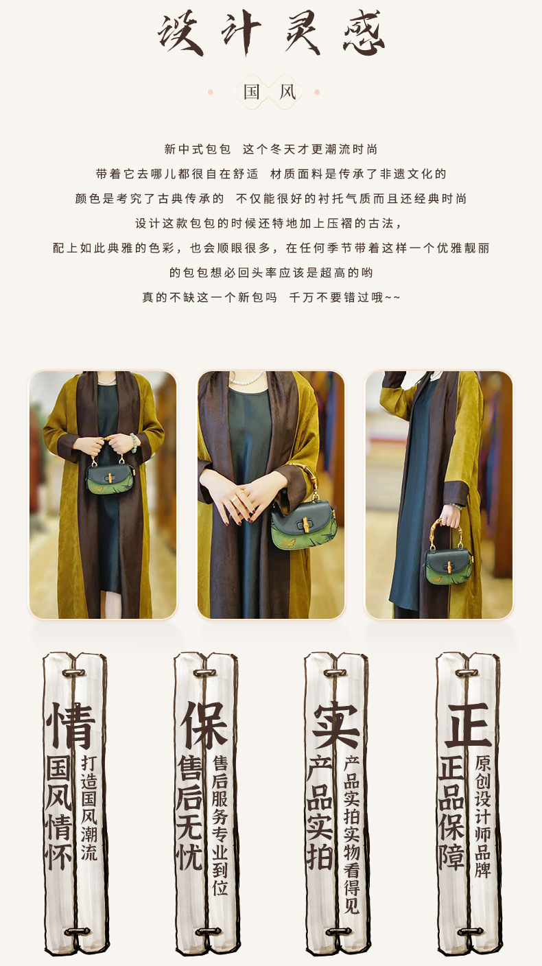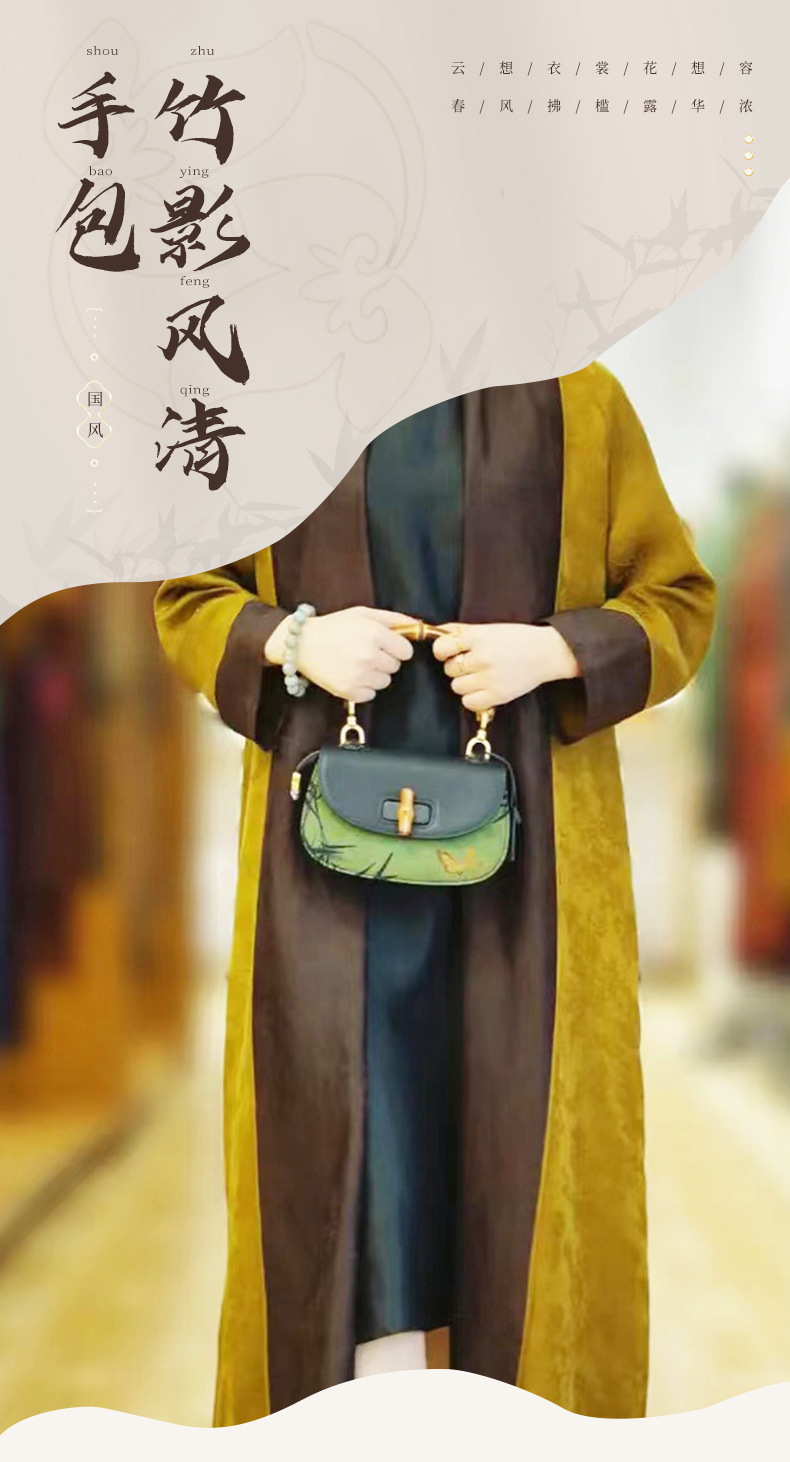 【预售3天】宋锦香云纱竹节包新中式包国风马鞍包女包手提包KM-0095-M2