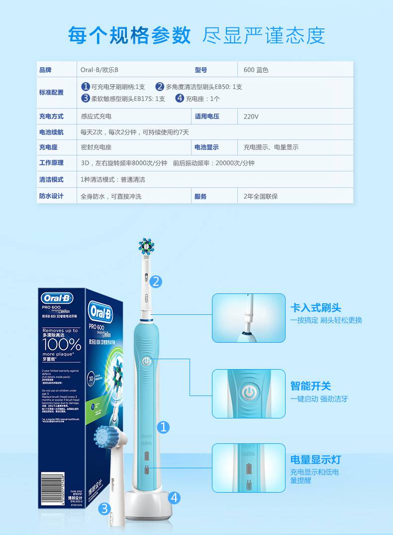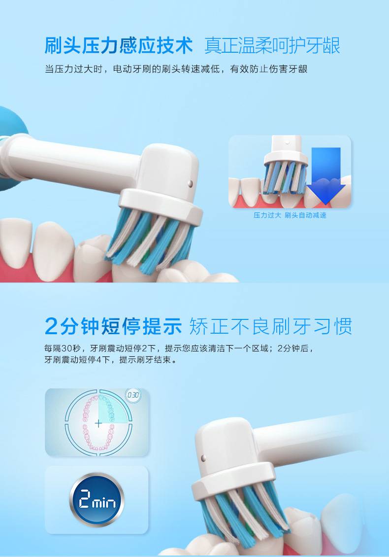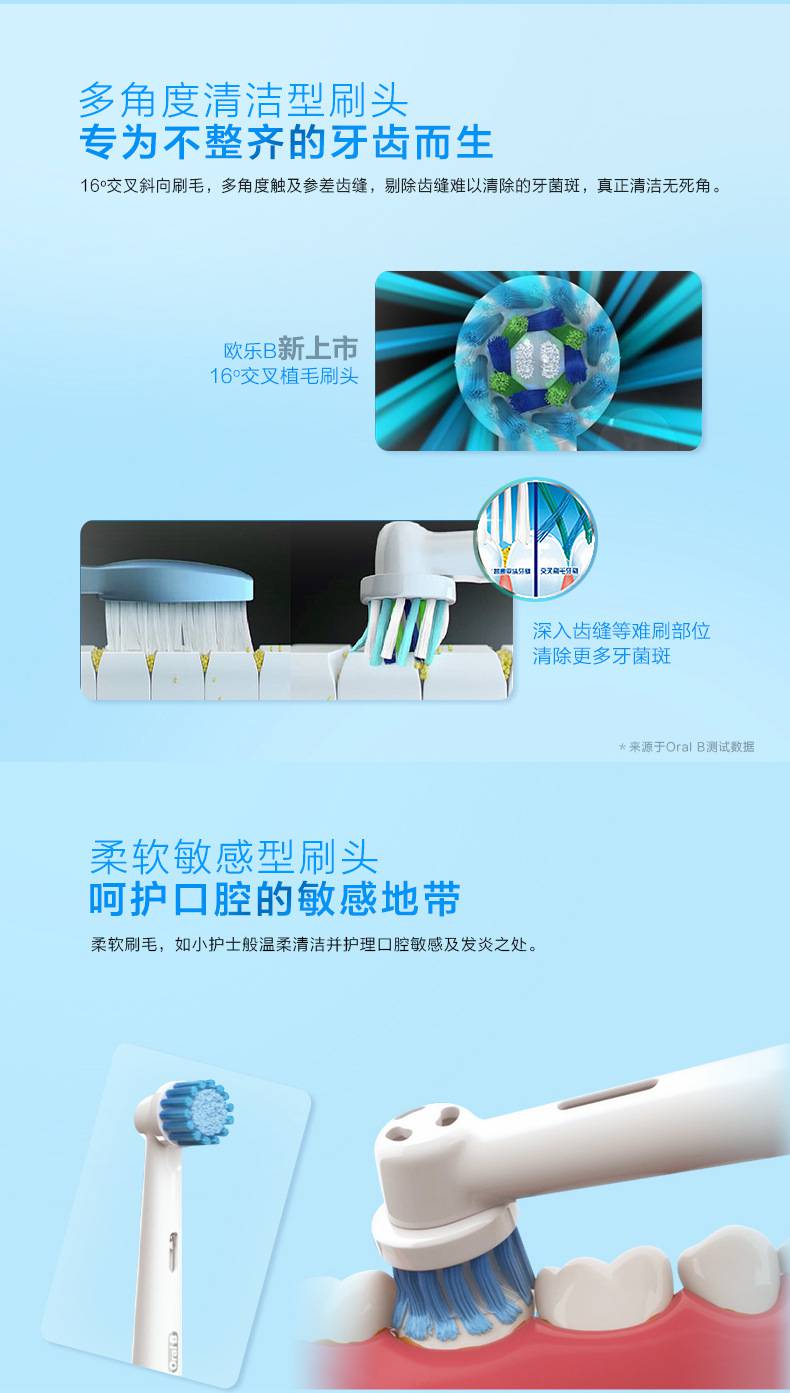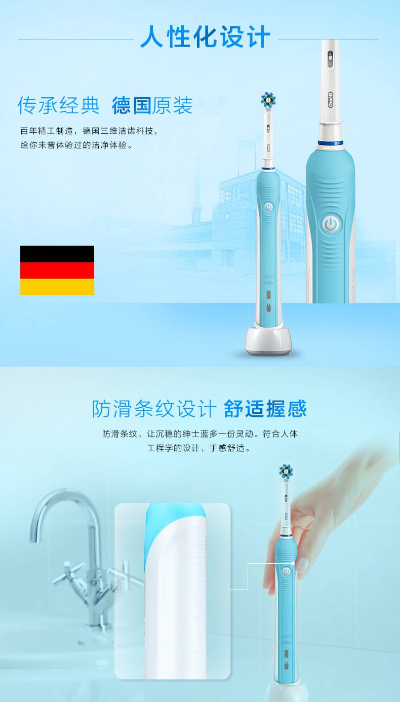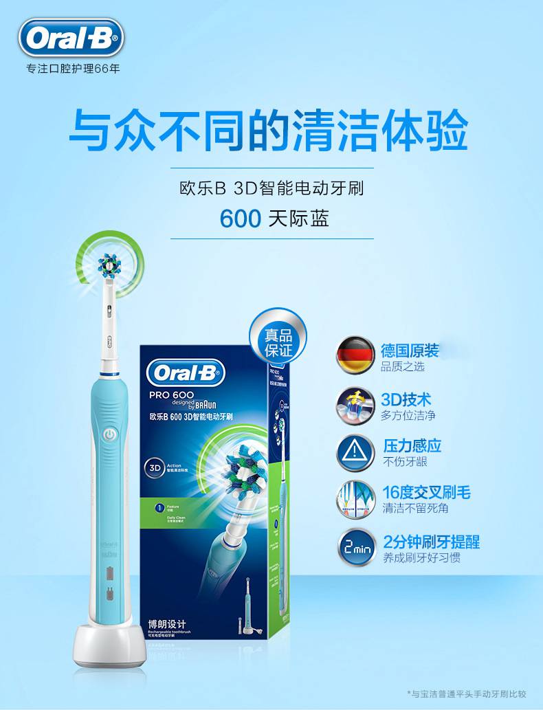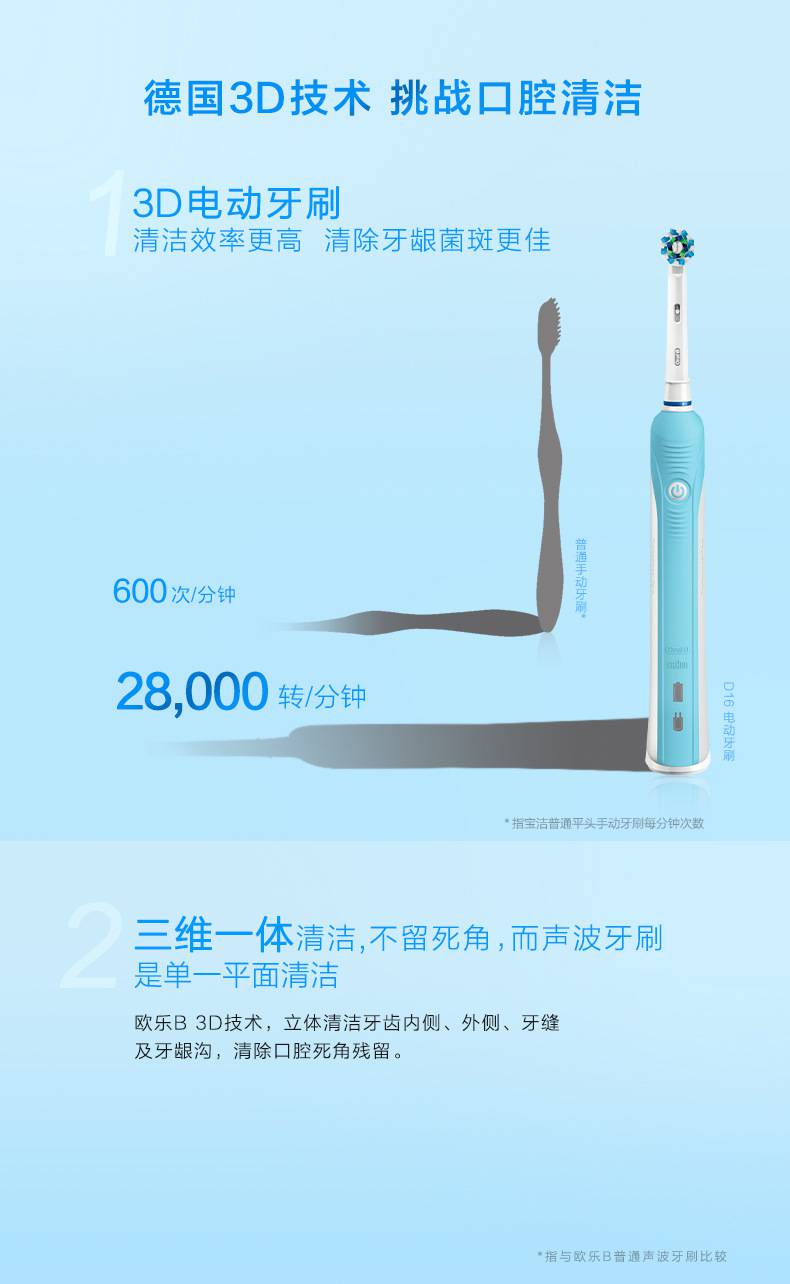 欧乐B(Oral-B)智能电动牙刷成人款家用充电声波牙刷d16 6003D蓝色