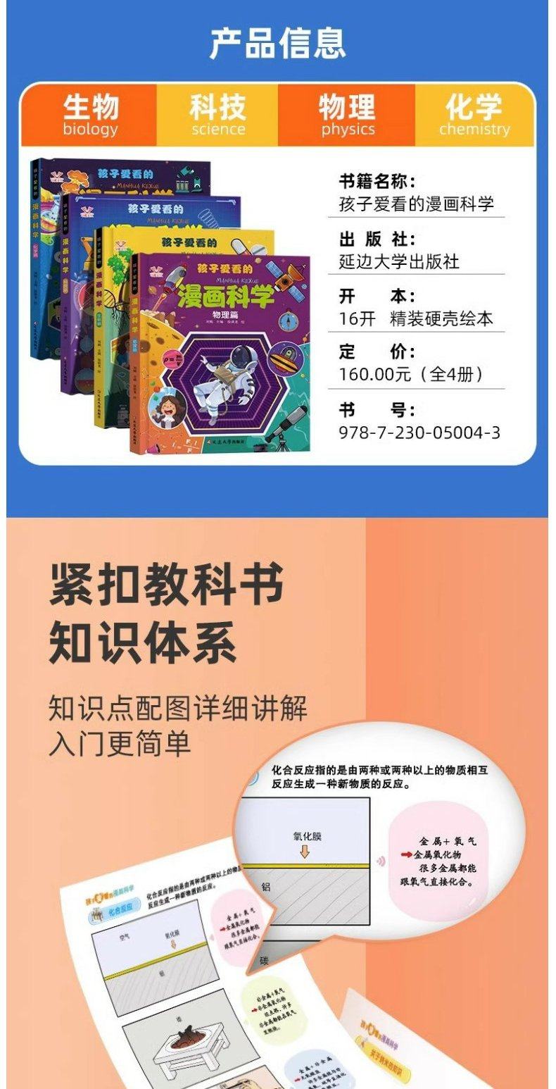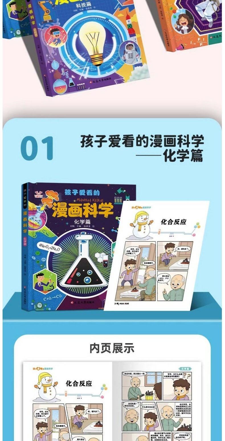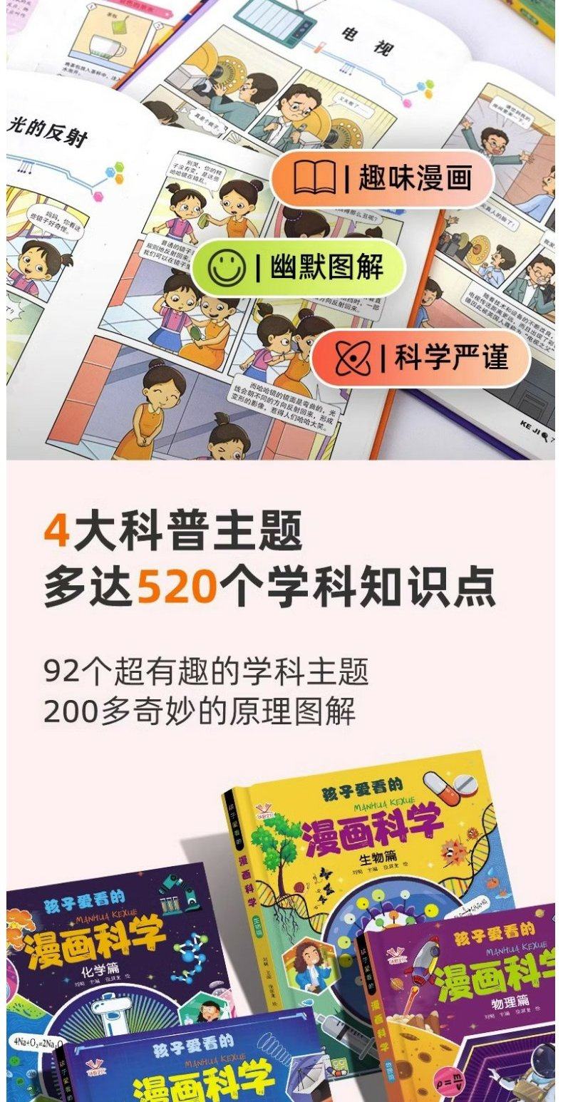 孩子爱看的漫画科学 全套4册正版JST小学生超喜爱的漫画自然科学启蒙绘本课外书 儿童趣味百科全书 少儿科学书 物理化学启蒙漫画书