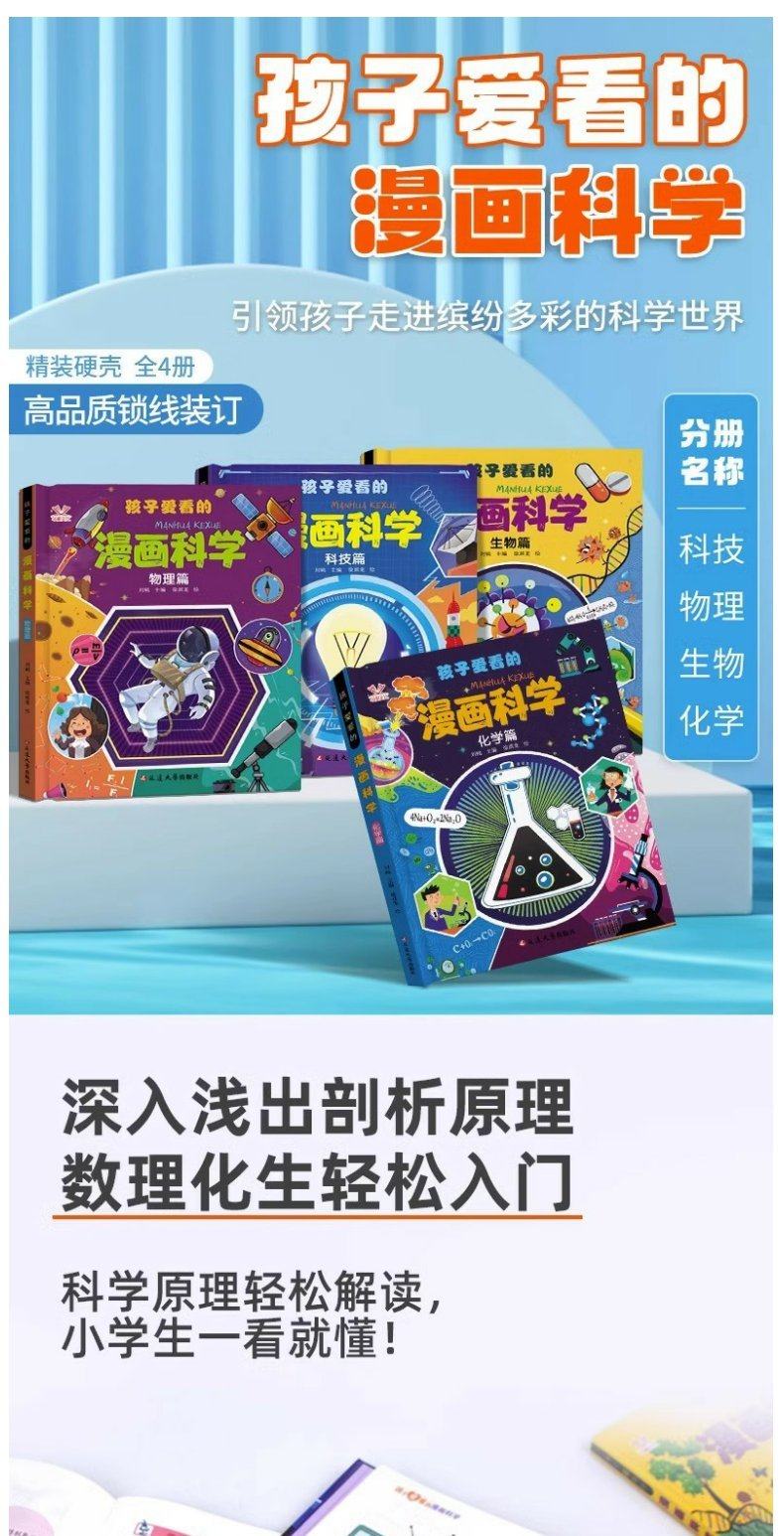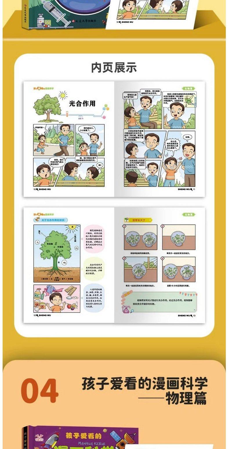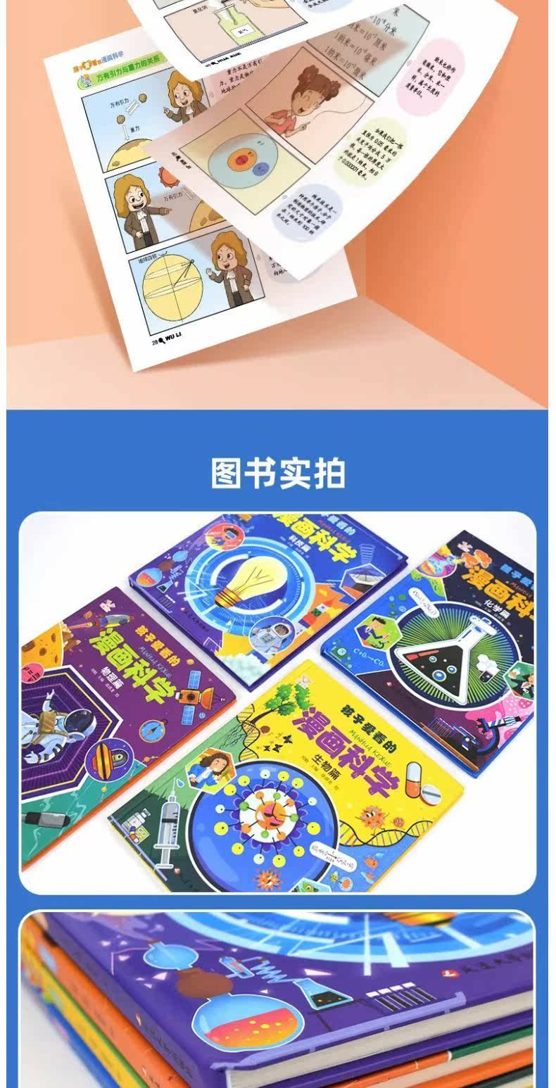 孩子爱看的漫画科学 全套4册正版JST小学生超喜爱的漫画自然科学启蒙绘本课外书 儿童趣味百科全书 少儿科学书 物理化学启蒙漫画书