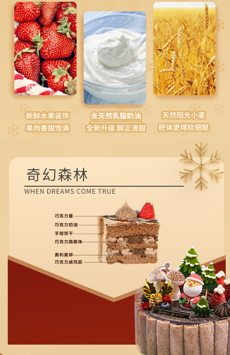 【奇幻森林 】圣诞节主题蛋糕——纯乳脂与牛奶奶油混合,口味升级,细腻香甜