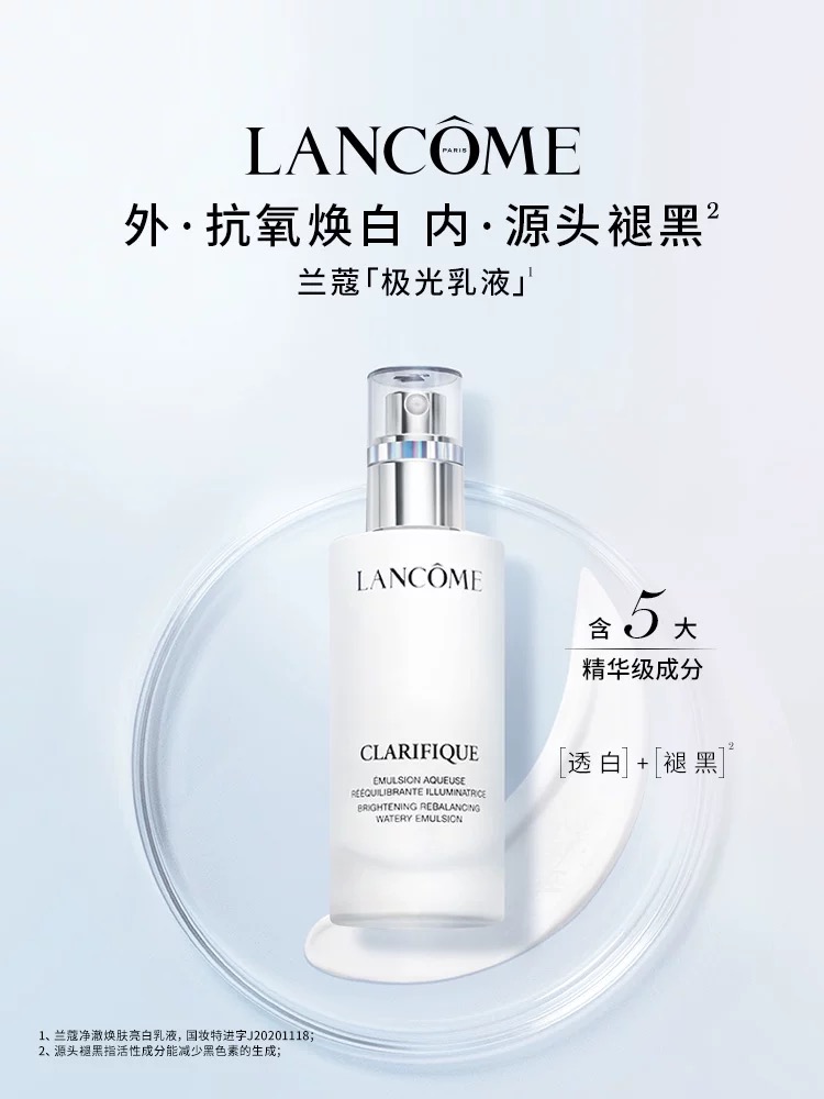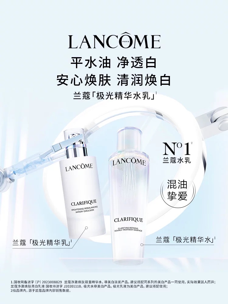 选择对的护肤产品,尤其是针对混油肤质,在保持肌肤清爽的同时,达到提亮肤色和细腻美白肌肤的效果。兰蔻极光水乳美白套装(水150ml+乳液75ml)水乳组合,推荐使用。很多明星、博主都为兰蔻极光精华水乳套装推荐过。