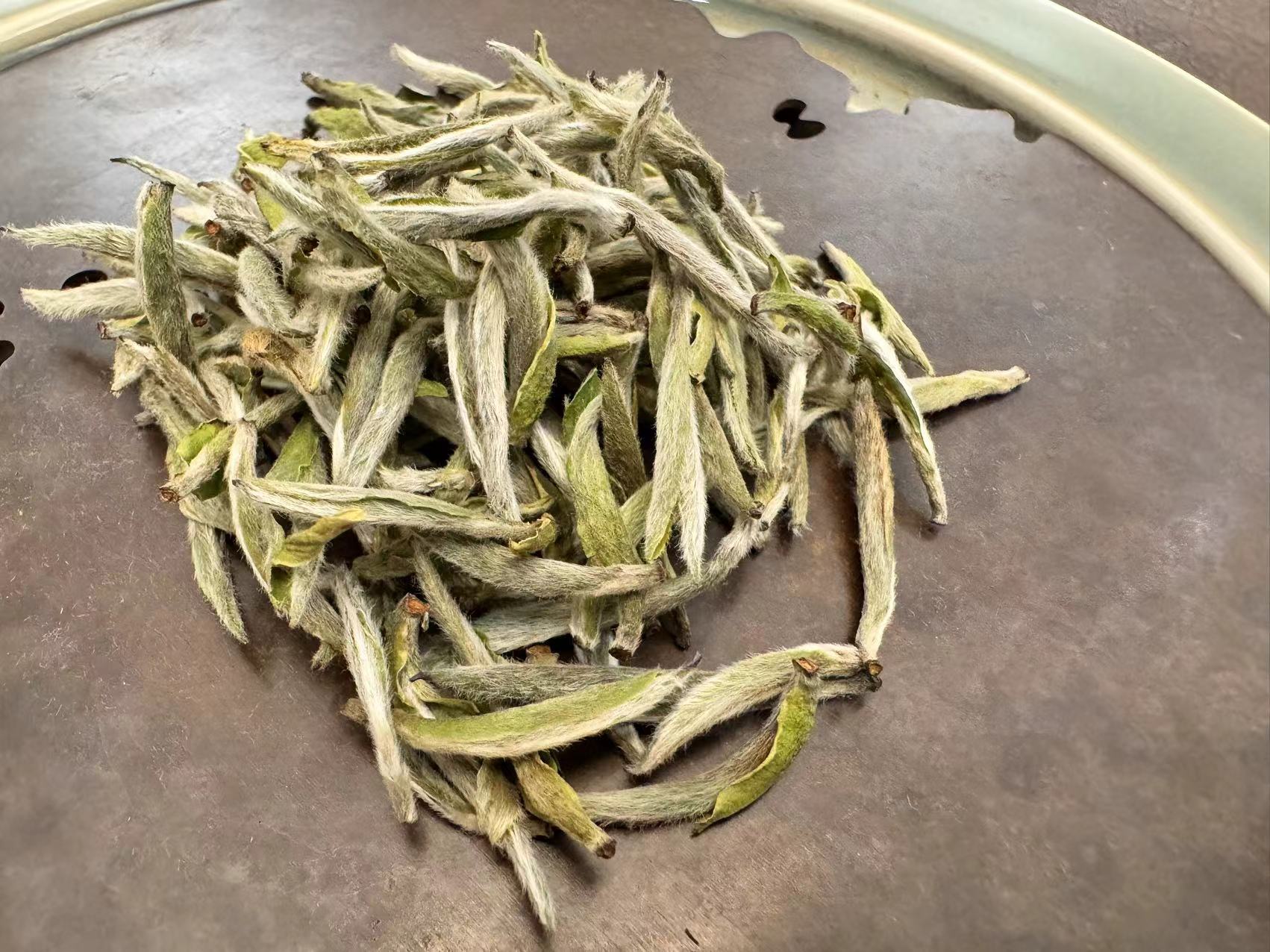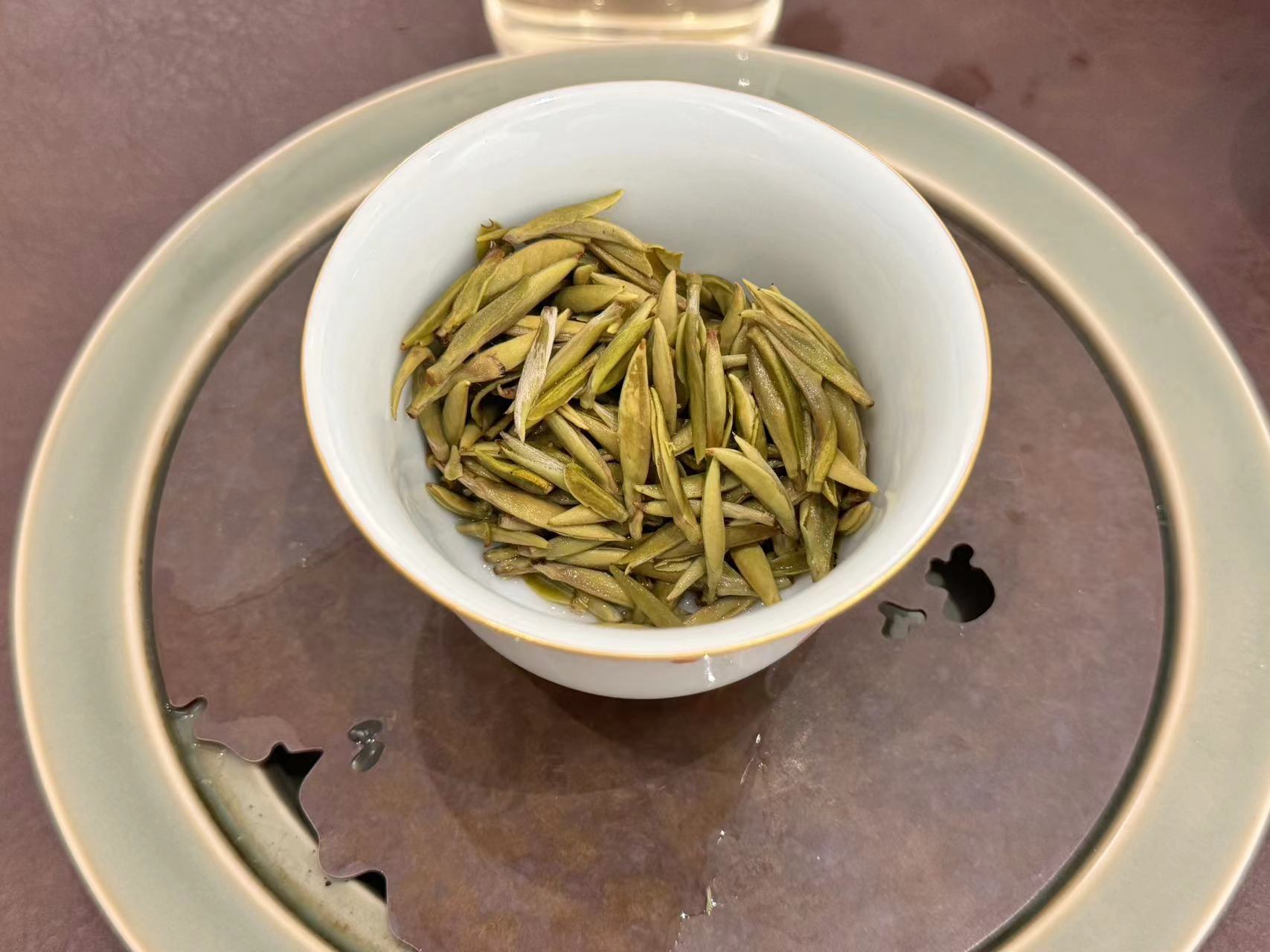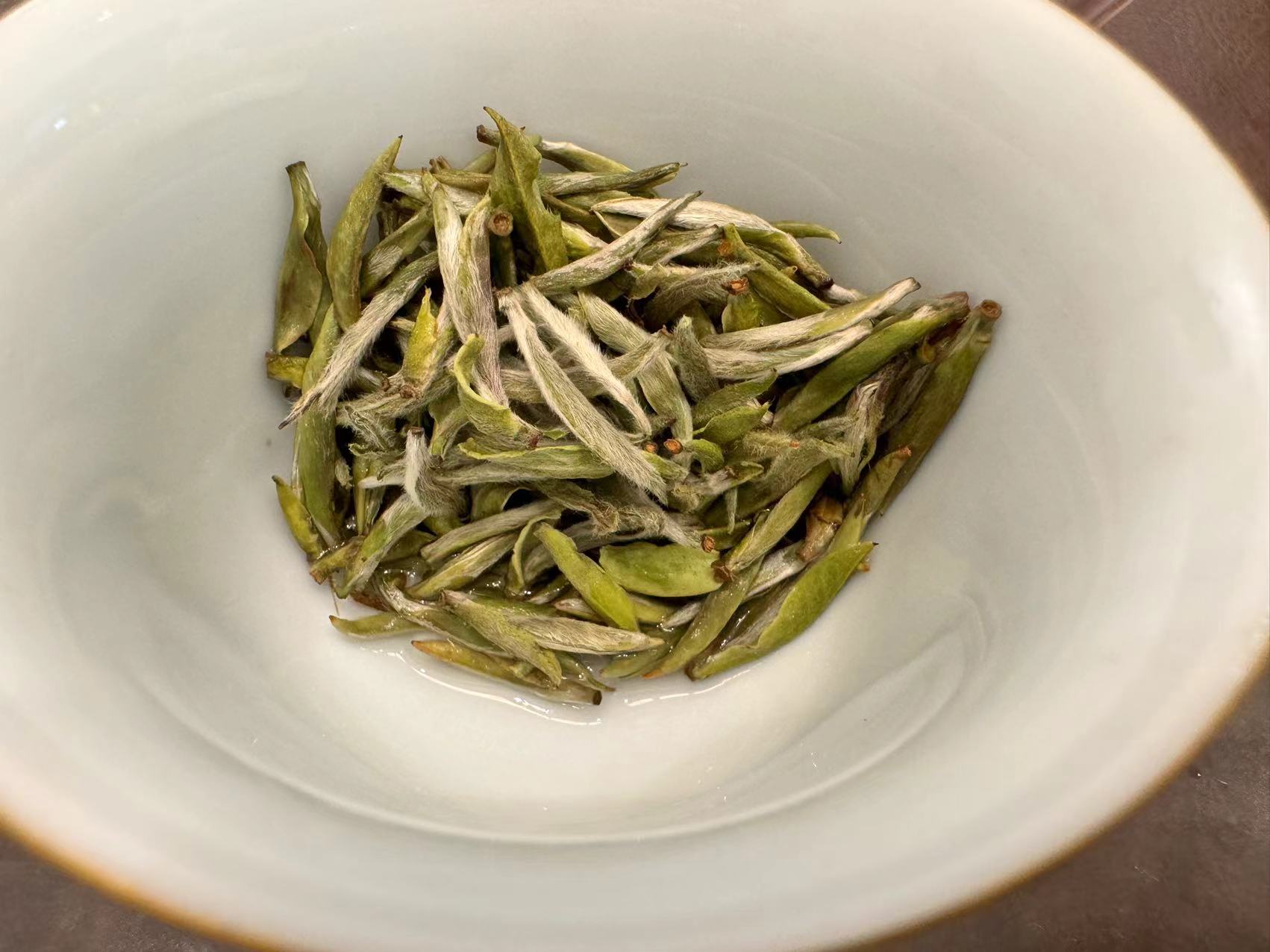 第九道,这个时候所有的芽头都已经吸收水份,所以能很好的看出来这是“米针”级别,虽然没有那些大量追肥的茶好看,但已经非常不错。
