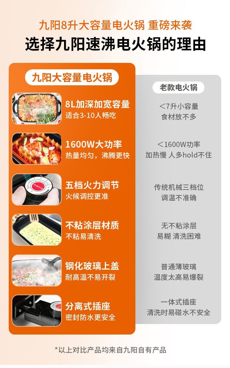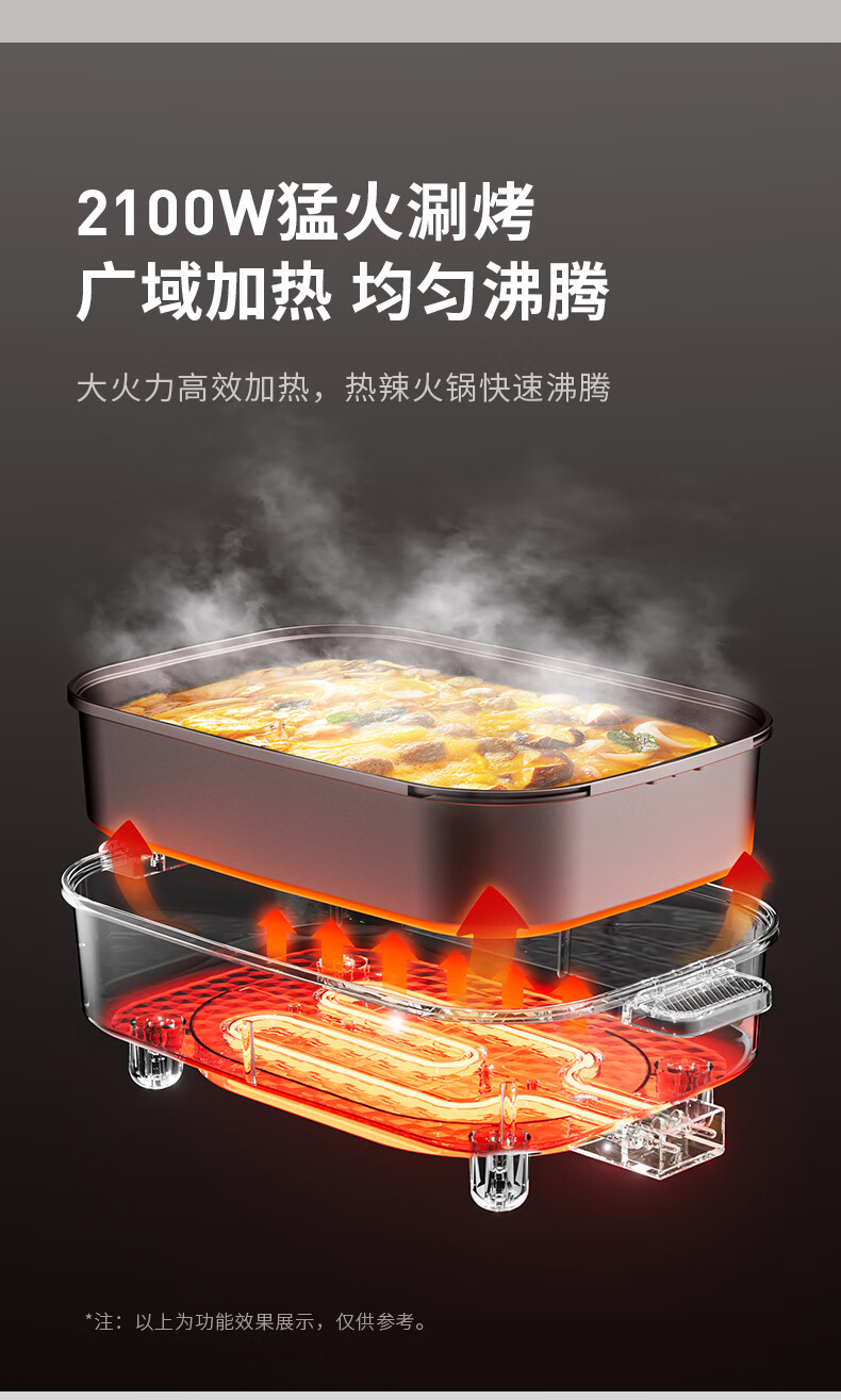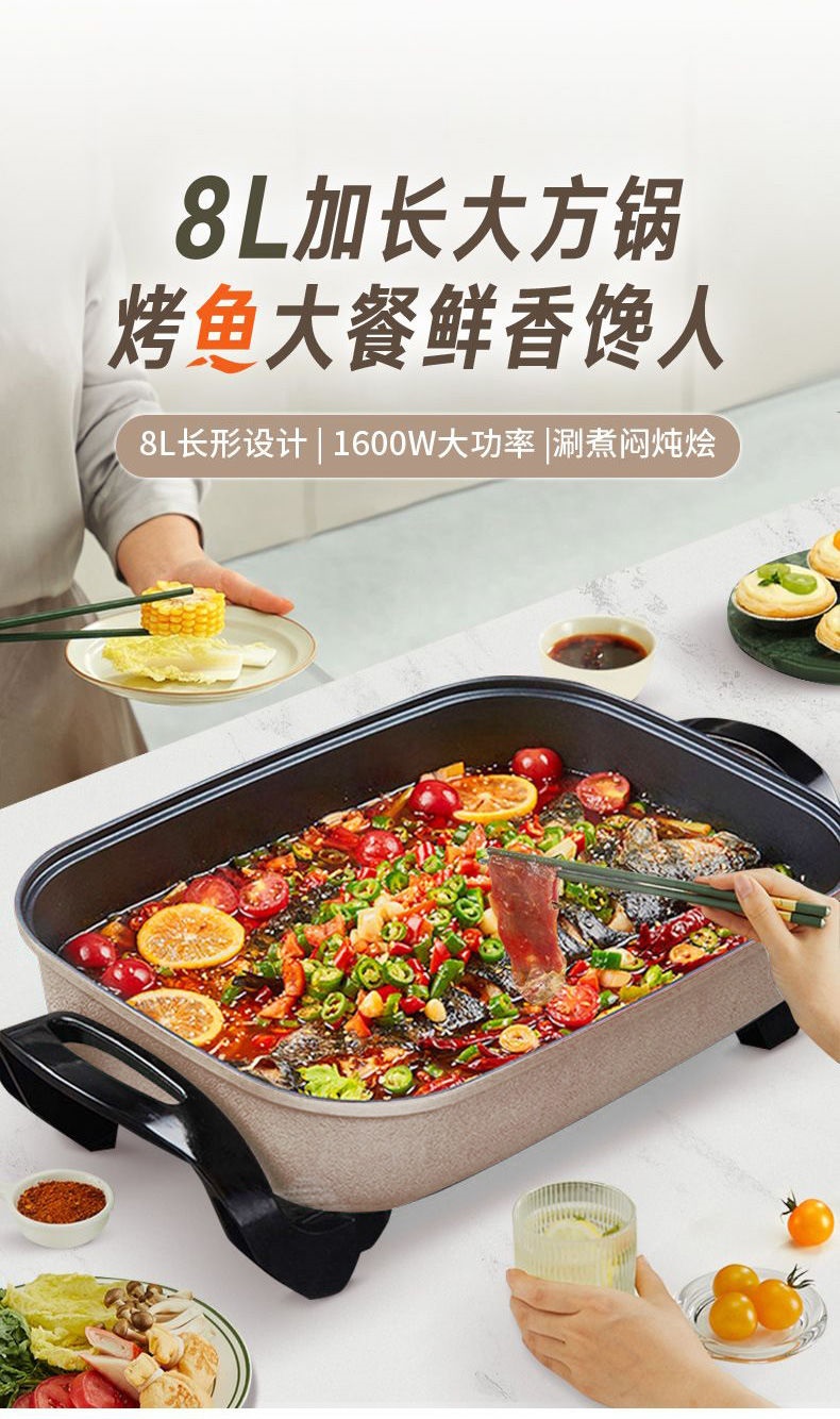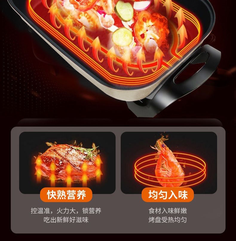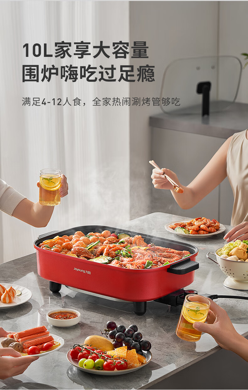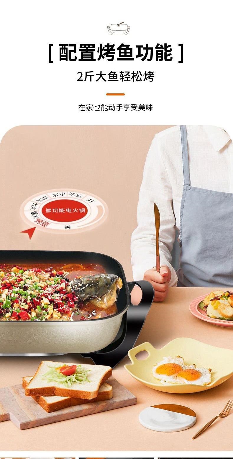 九阳8L10L烤鱼电火锅家用多功能电热锅烤肉锅火锅料理一体锅电煮锅