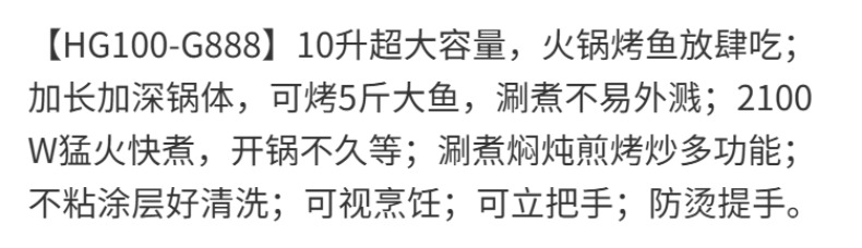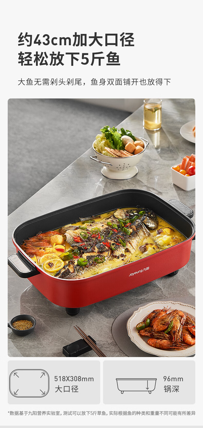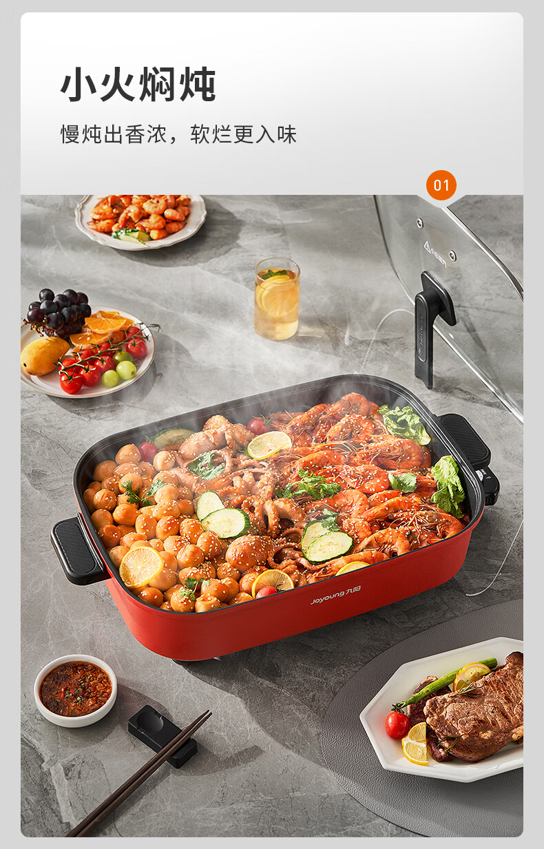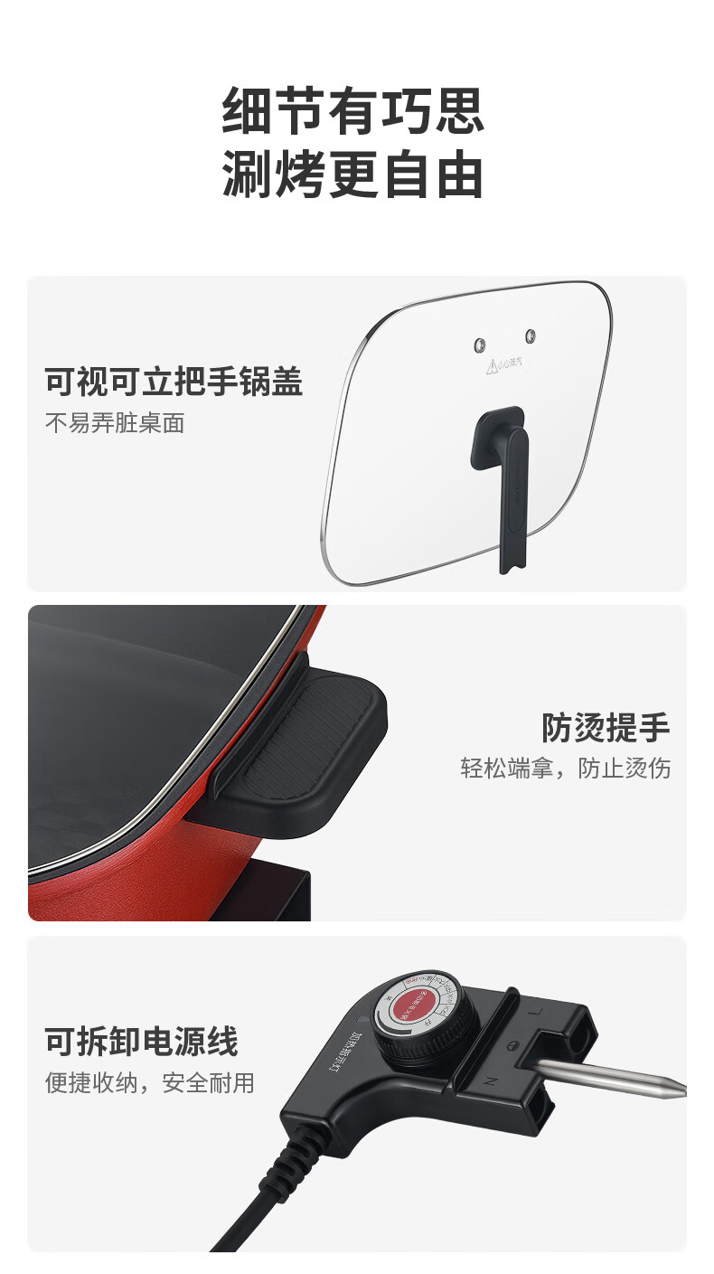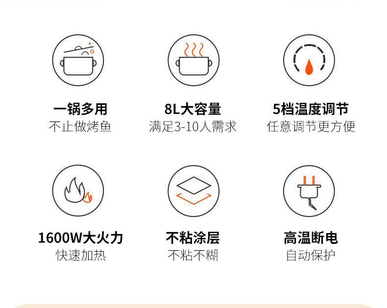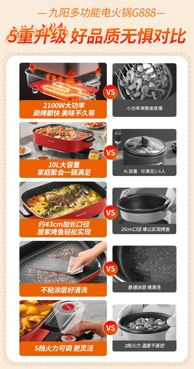 九阳8L10L烤鱼电火锅家用多功能电热锅烤肉锅火锅料理一体锅电煮锅