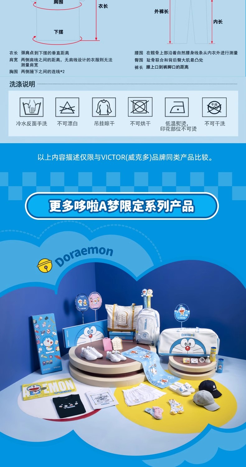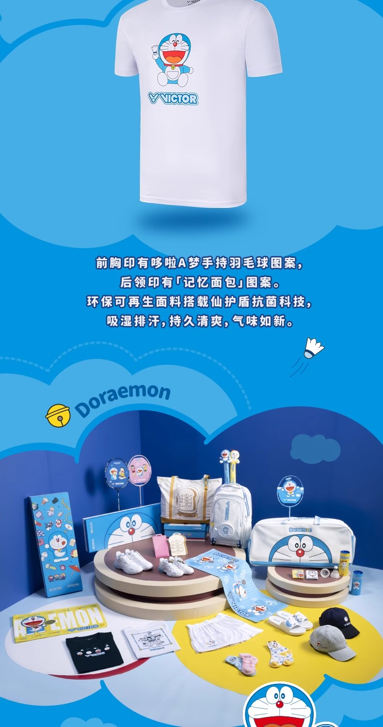 胜利威克多 哆啦A梦联名系列 男女同款 T恤 T-501DRM
