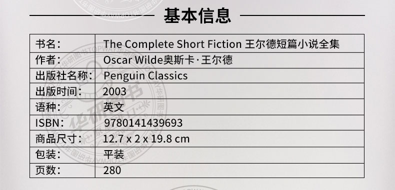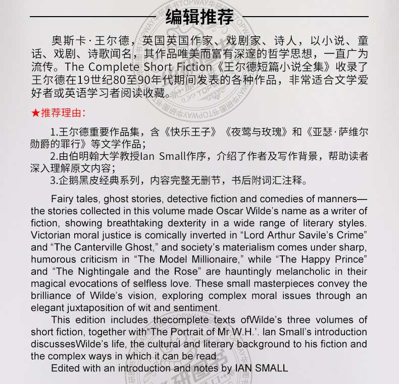 书名:The Complete Short Fiction 王尔德短篇小说全集